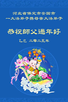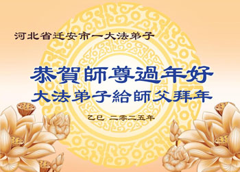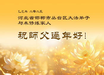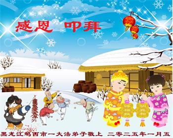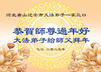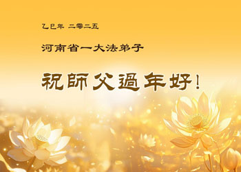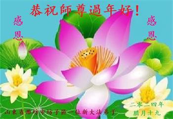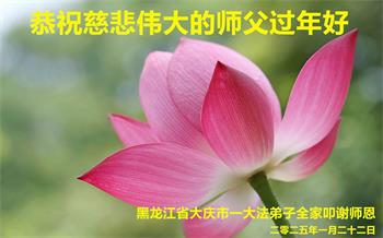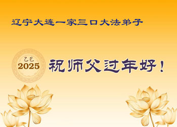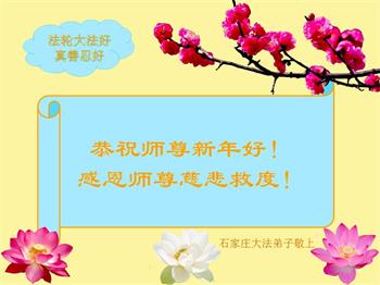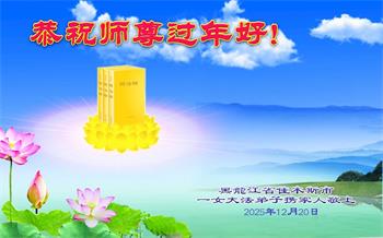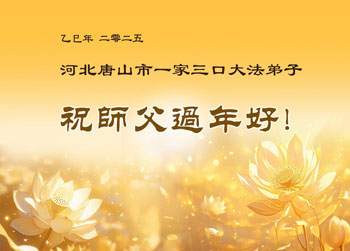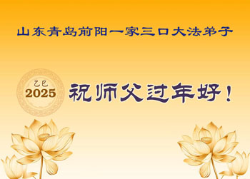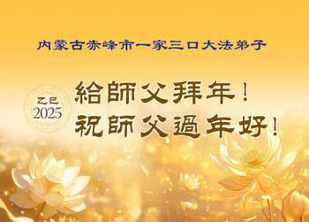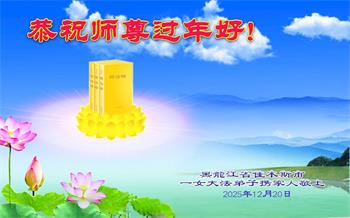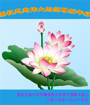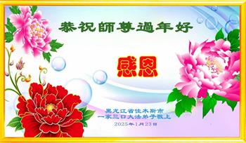 感恩師父的慈悲救度,弟子在新的一年裏要更加努力的做好三件事,不辜負師尊的殷切期望;明真相的家人也支持大法,力所能及的傳播真相。得救眾生盼師父早回中原。