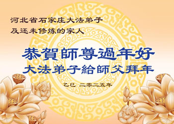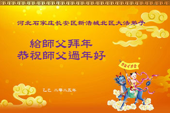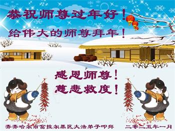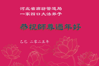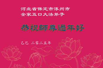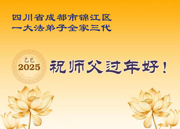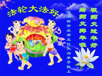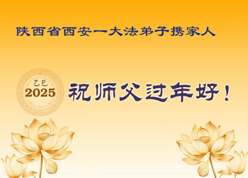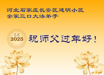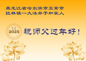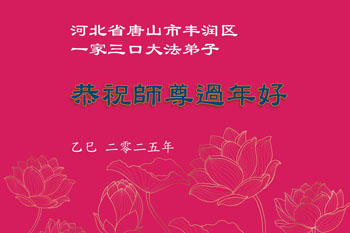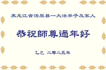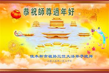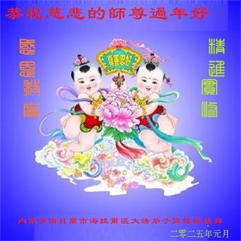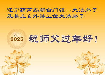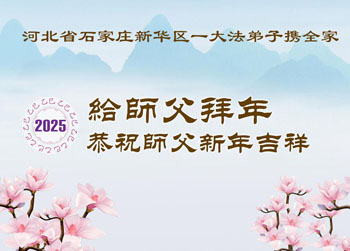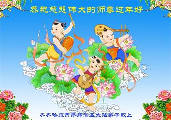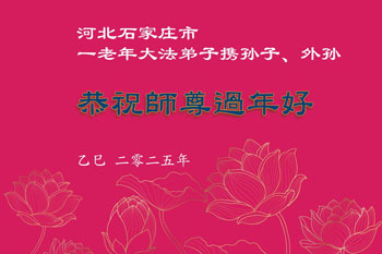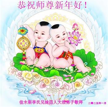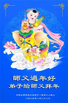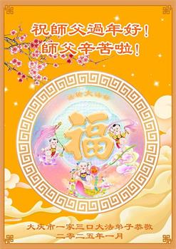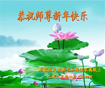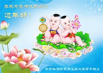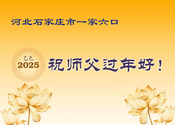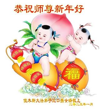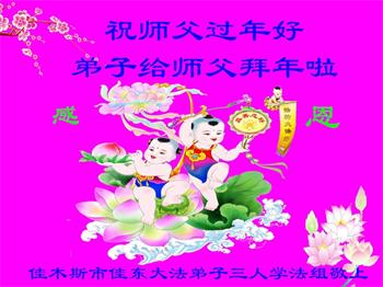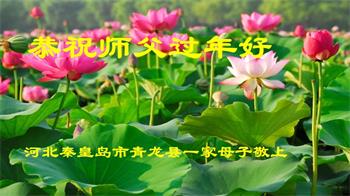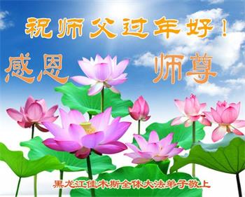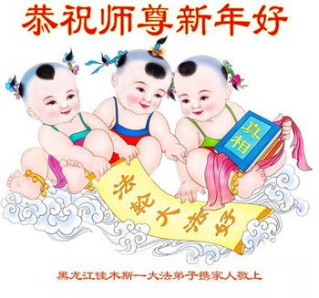 我們都是明白大法真相的大法弟子親屬,我們心裏常念誦「法輪大法好!真善忍好!」我們都是親身受益者。感恩法輪大法拯救全人類!我們抱著感恩的心給李洪志大師拜年!