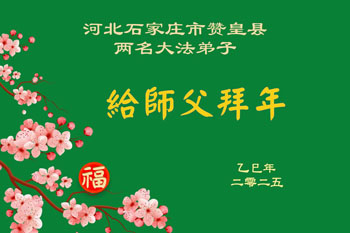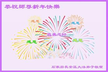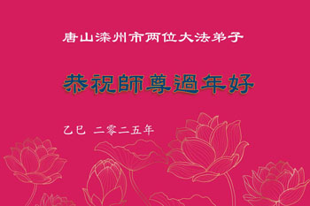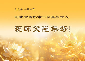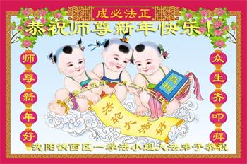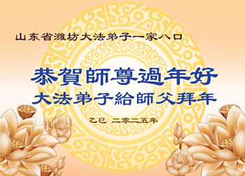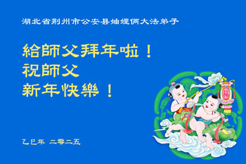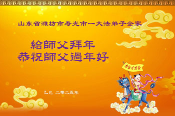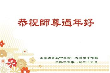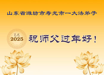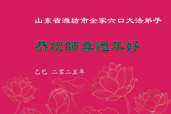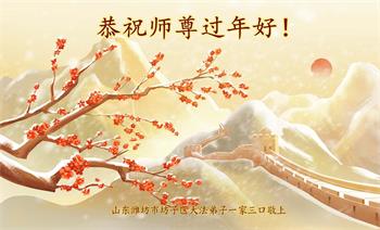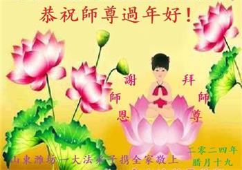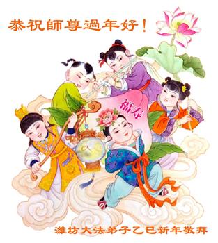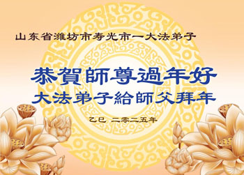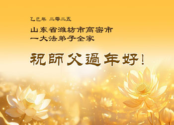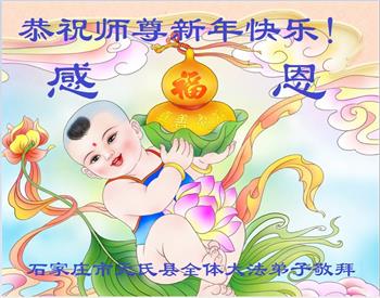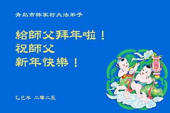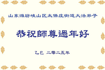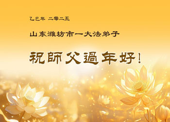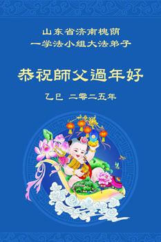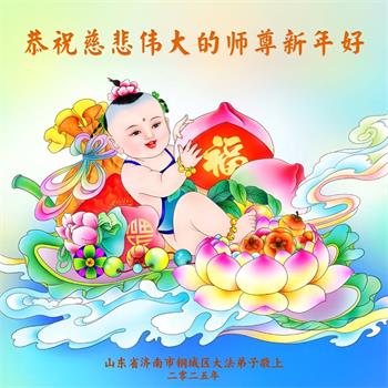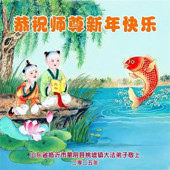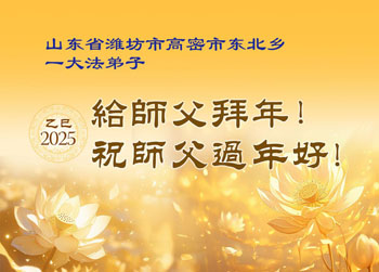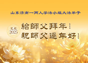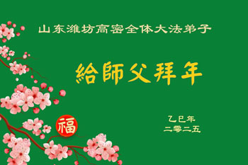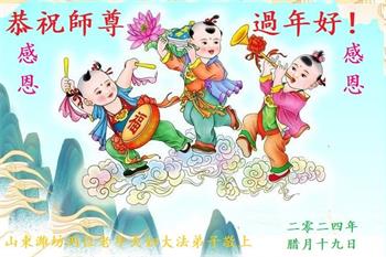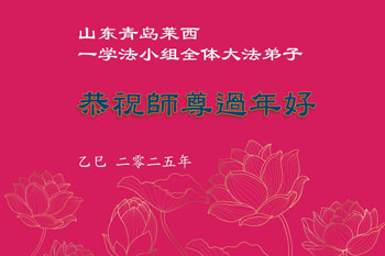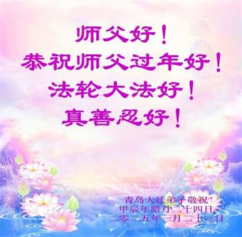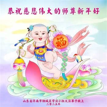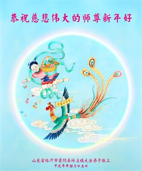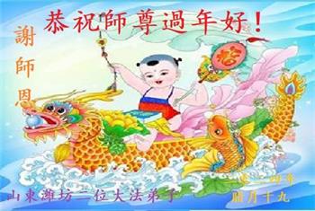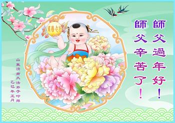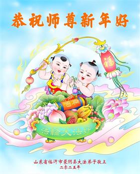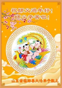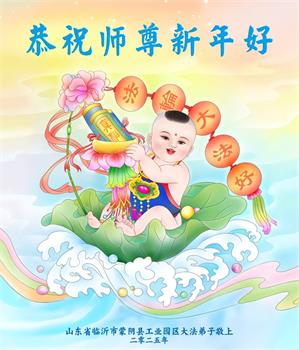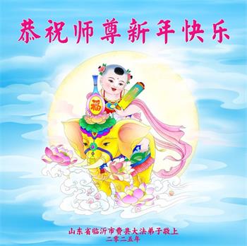 山東省臨沂市被非法關押迫害的大法弟子恭祝慈悲偉大的師尊新年好!他們表示:「我們雖然身陷囹圄,身體沒有自由,但助師救度眾生的心不變,無論環境多麼惡劣,依然會正念正行,救人不停,努力做好三件事,跟師父回家!謝謝偉大師尊的慈悲苦度!」