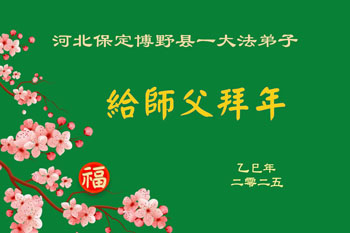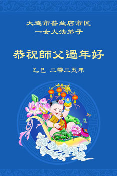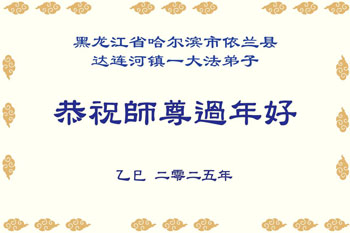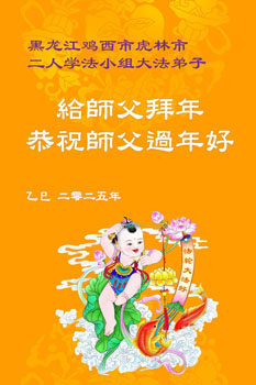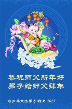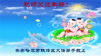 我明白大法真相,讀了李洪志師父發表的《為甚麼會有人類》和《為甚麼人類是迷的社會》的《明慧週報》和師父講法《為甚麼要救度眾生》,還要了真相護身符和法輪功在中國一直是合法的等真相資料。我相信善惡有報,好人有好報,給李大師拜年!祝李大師新年快樂!願李大師保祐我們姊妹幾家都幸福平安!