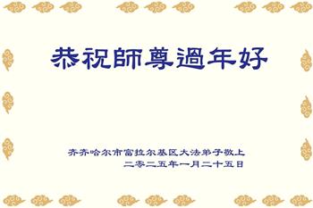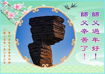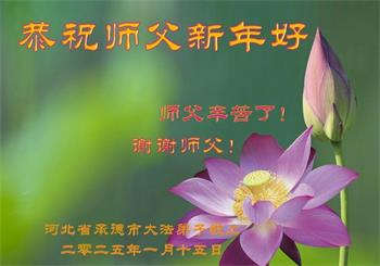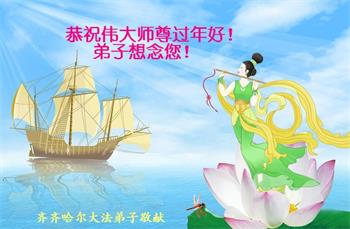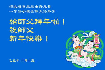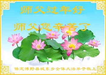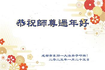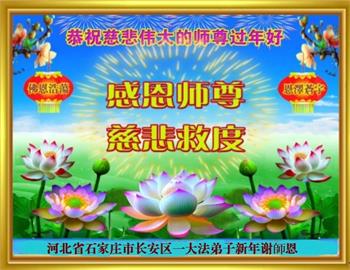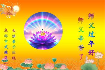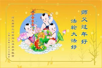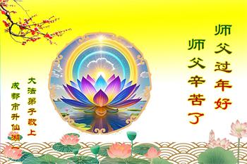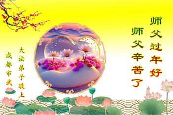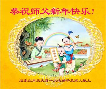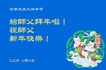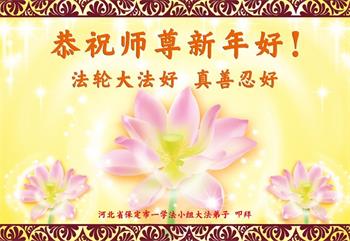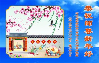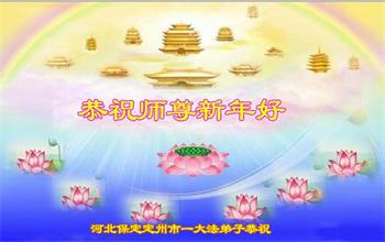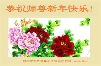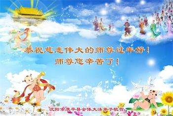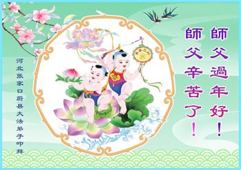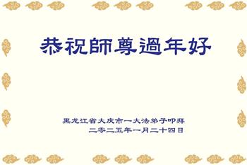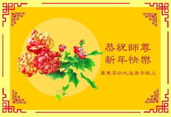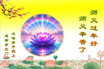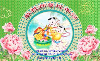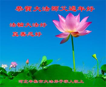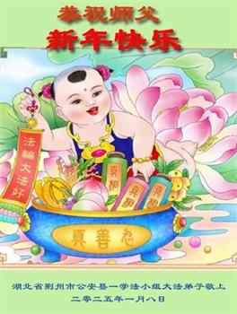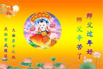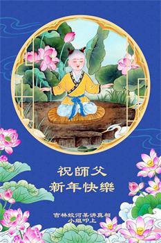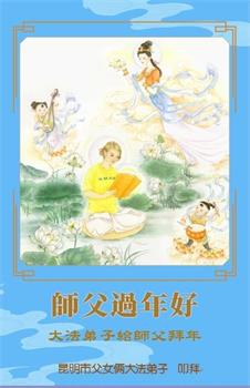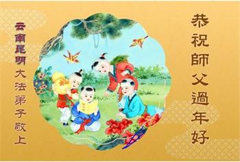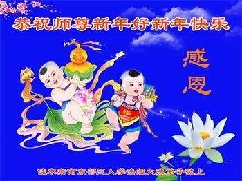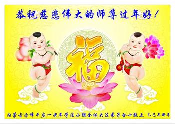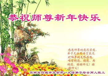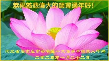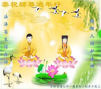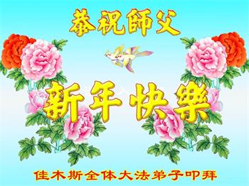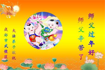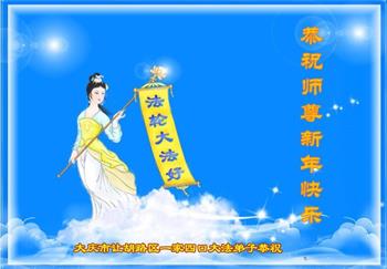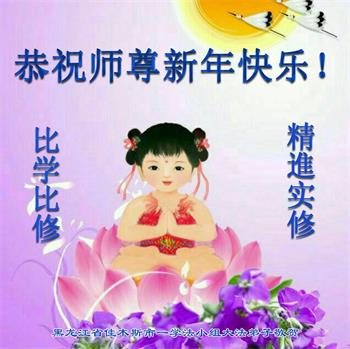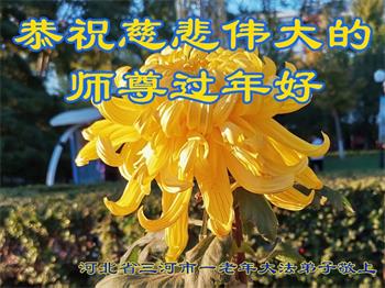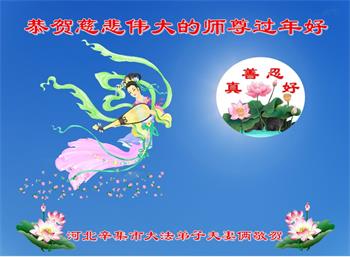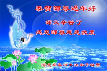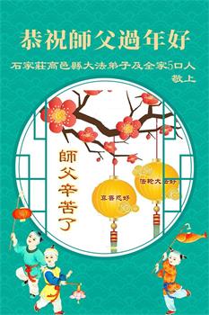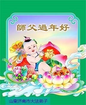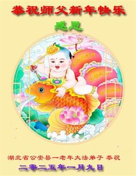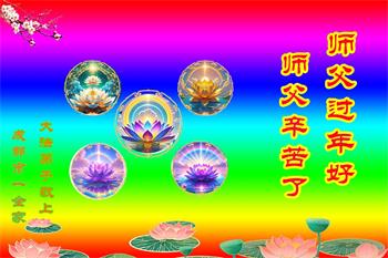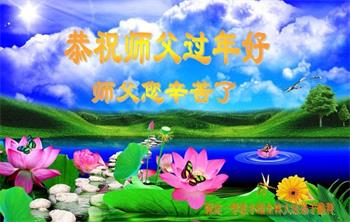 以下是部份中國老年大法弟子的賀詞賀卡:恭祝慈悲偉大的師父新年好!