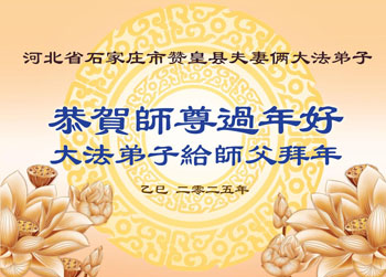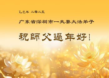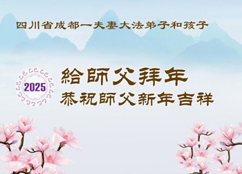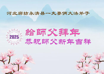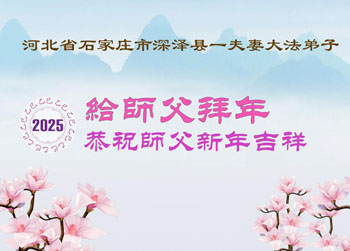 我們是明白真相的大法弟子家屬。我們夫妻倆感謝李大師傳大法,給我們帶來了無量幸福。我們天天看真相,越看越願意看。新年來臨,我們給李大師拜年,李大師過年好!我們一定沿著正的能量前行。謝謝李大師!