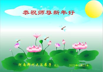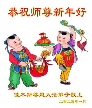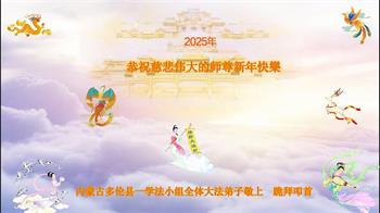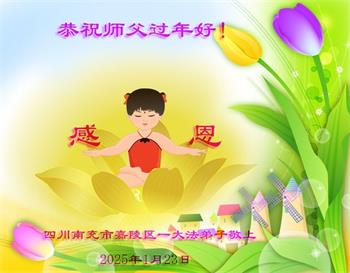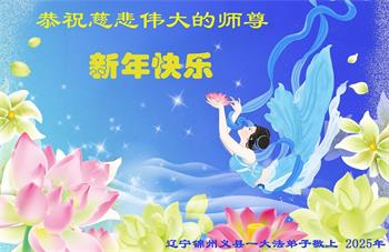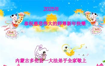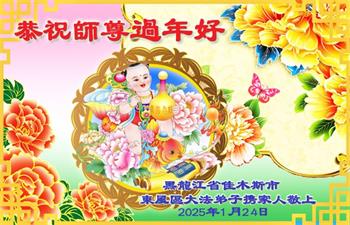 尊敬的師父好!師父辛苦了!恭祝師父二零二五年新年快樂!我是一老年大法弟子,感恩師尊傳給我們這麼好的宇宙大法,為救度我們您承受的太多太多,人間的語言有限,在新年到來之際,無法表達我們生命深處的感恩,飽含熱淚跪拜師尊,遙祝師尊新年快樂!我們會履行好大法弟子的責任、兌現使命。牢記師尊教導多救人、快救人、做好三件事,跟師尊回家。