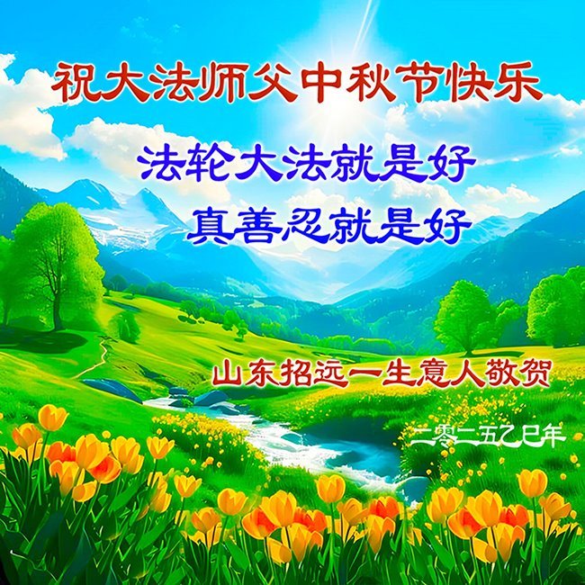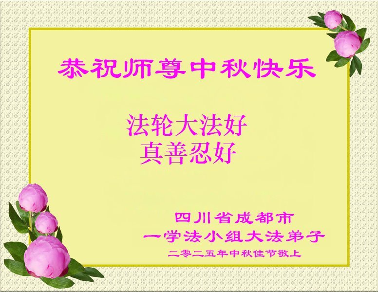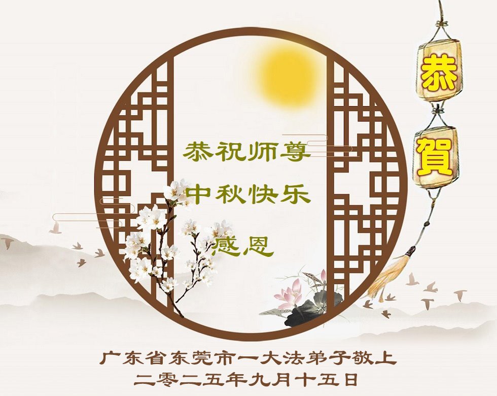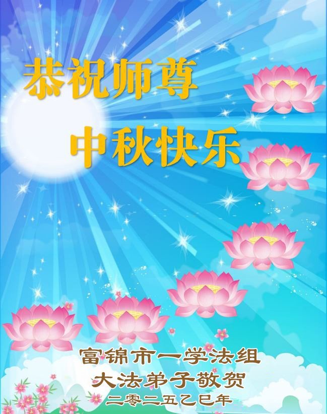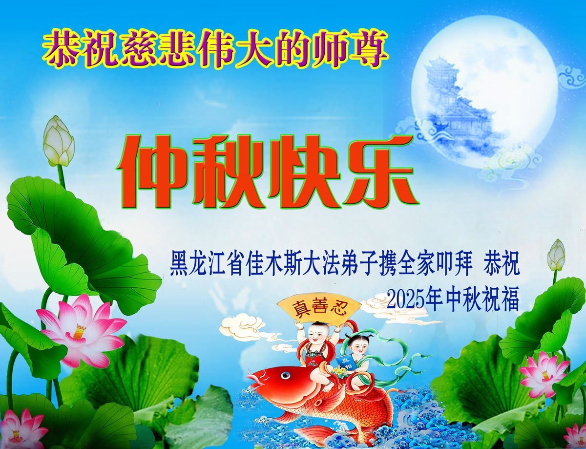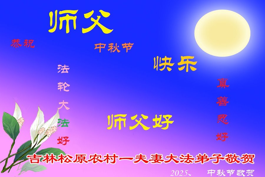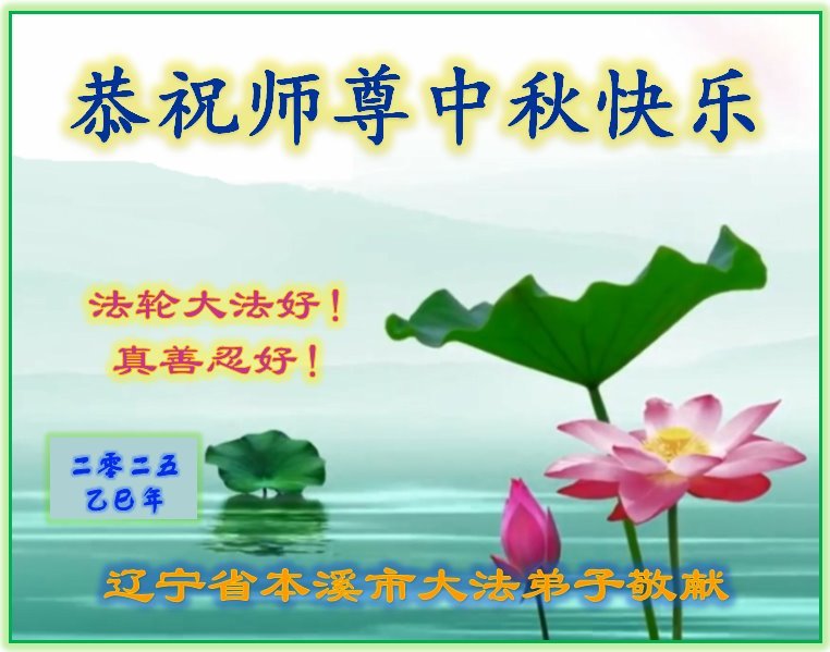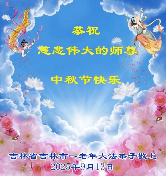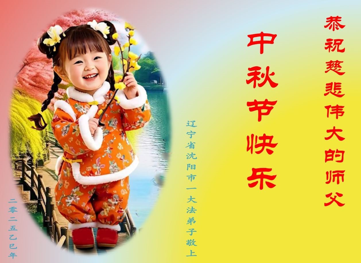 【明慧網二零二五年十月一日】(明慧網通訊員中國大陸報導)中秋佳節倍思恩,中國各省市民眾恭祝李洪志大師中秋節快樂!支持大法、得到大法佑護的中國大陸各界民眾表示:現在天災人禍,民不聊生,貪官污吏橫行霸道,老百姓都盼望中共垮台。如果人人都按真善忍做好人,社會就安定。他們在賀詞中寫道:「願中國人儘早拋棄邪黨」,「堂堂正正做一個正直的中國人」。