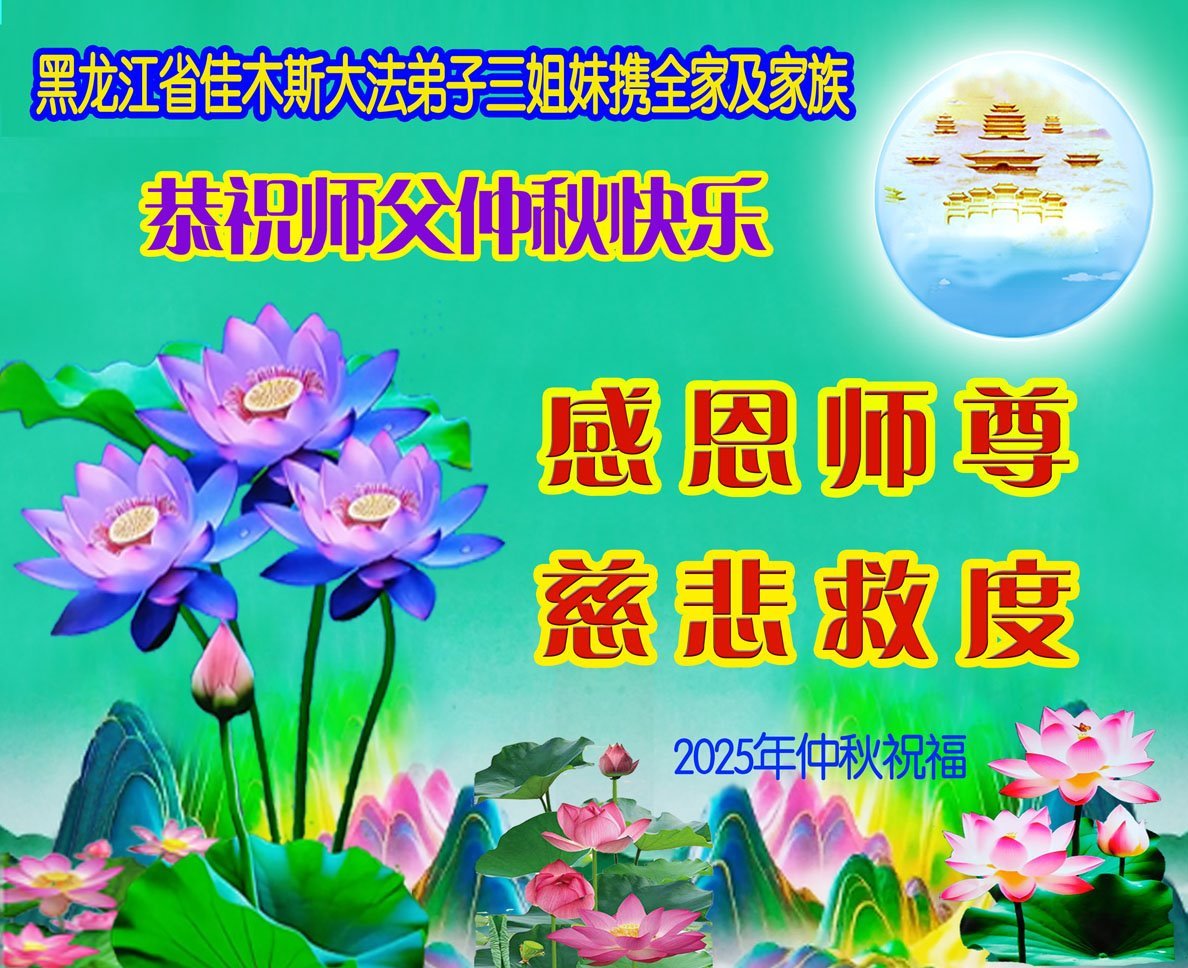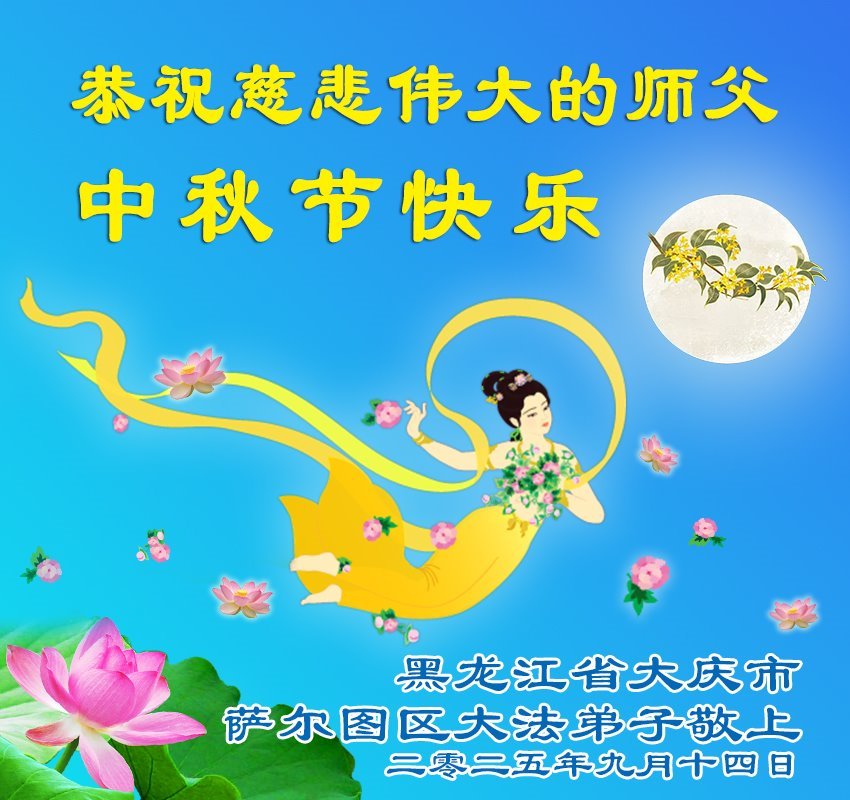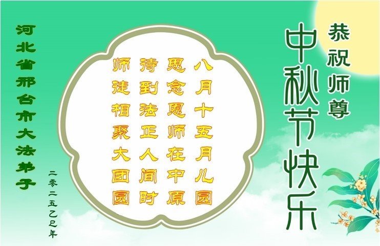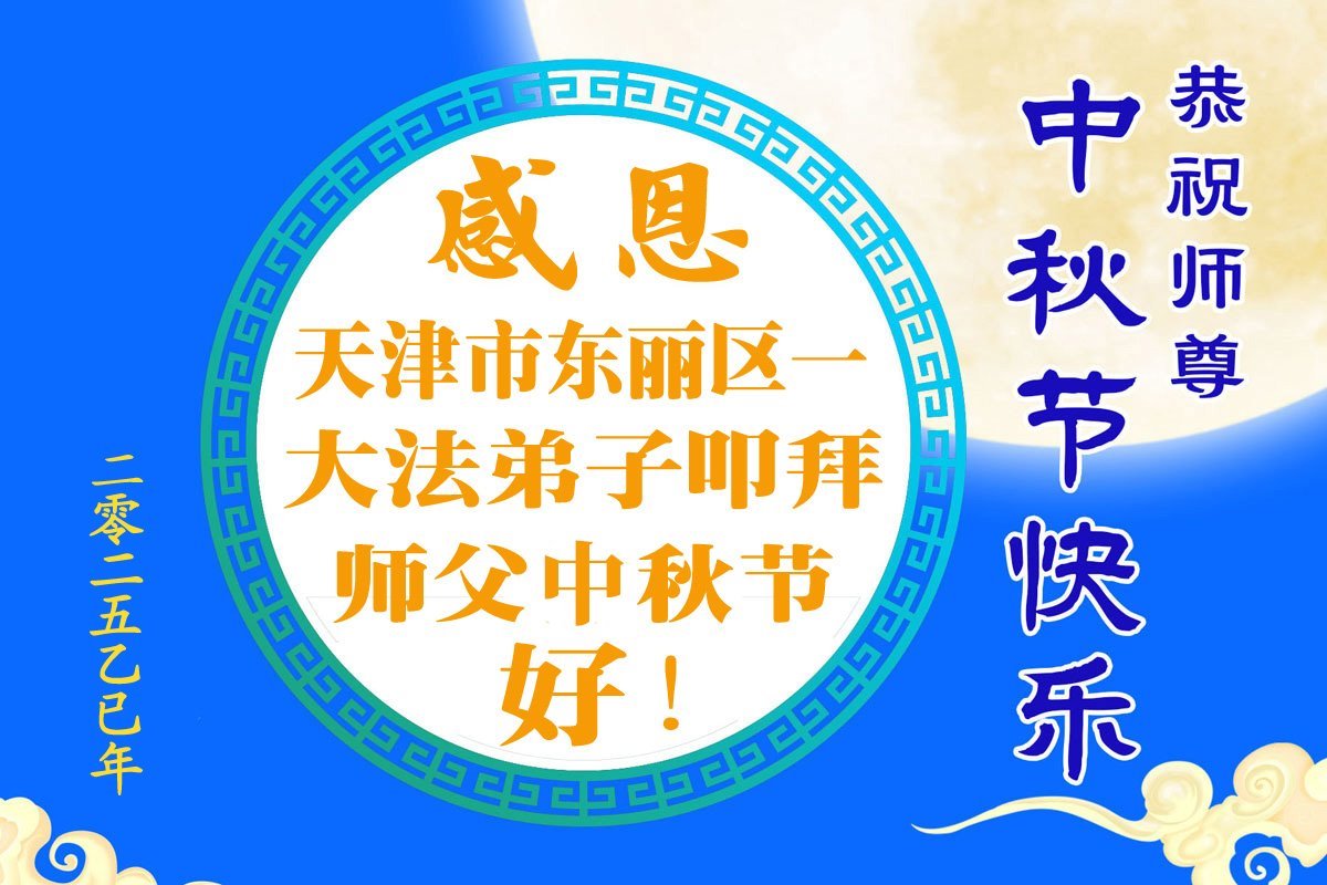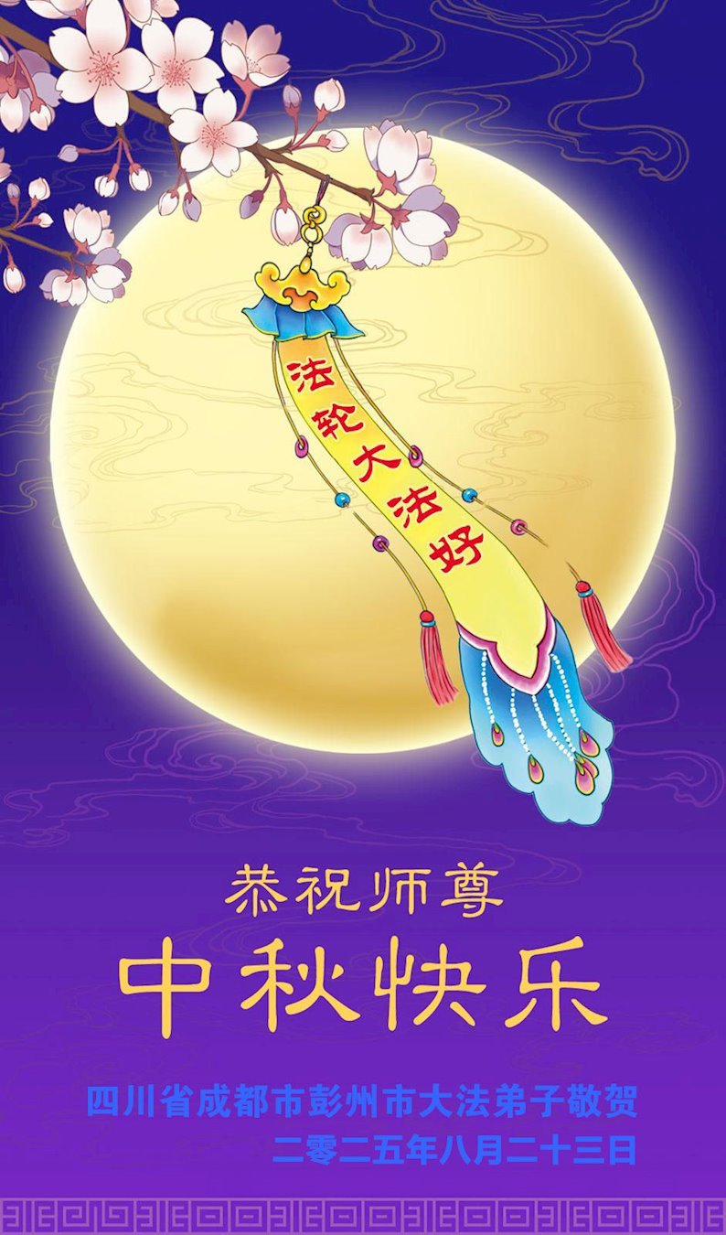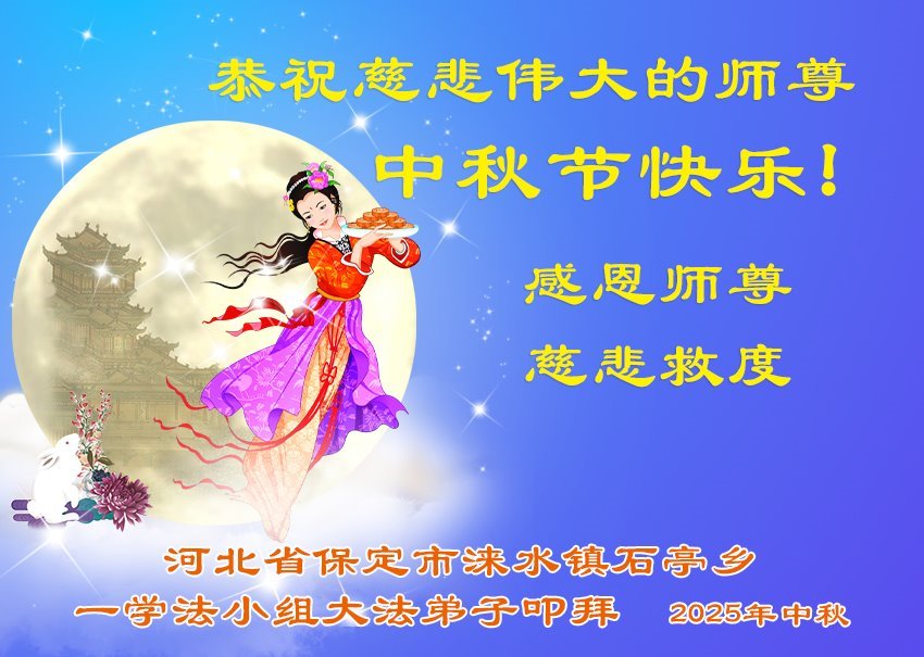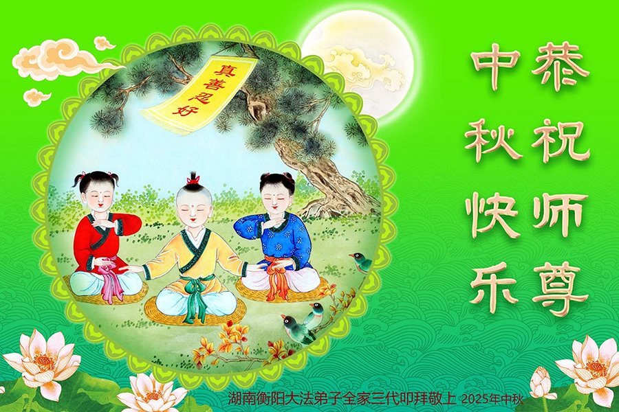 【明慧網二零二五年十月一日】(明慧網通訊員中國大陸報導)中秋佳節倍思恩,中國各省市民眾恭祝李洪志大師中秋節快樂!支持大法、得到大法佑護的中國大陸各界民眾表示:現在天災人禍,民不聊生,貪官污吏橫行霸道,老百姓都盼望中共垮台。如果人人都按真善忍做好人,社會就安定。他們在賀詞中寫道:「願中國人儘早拋棄邪黨」,「堂堂正正做一個正直的中國人」。