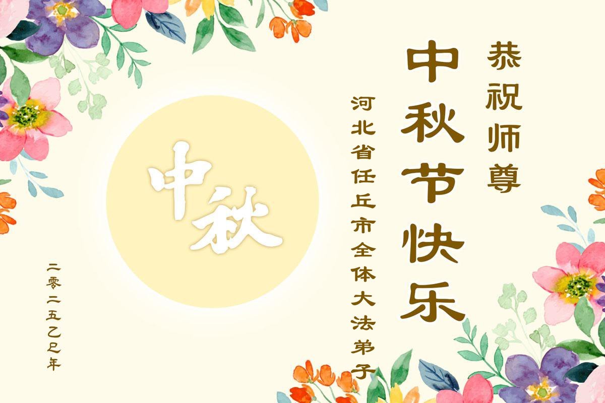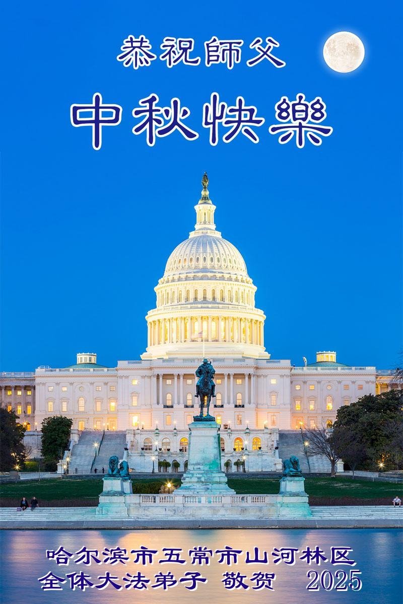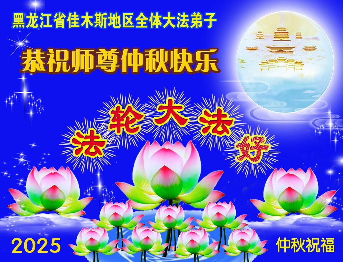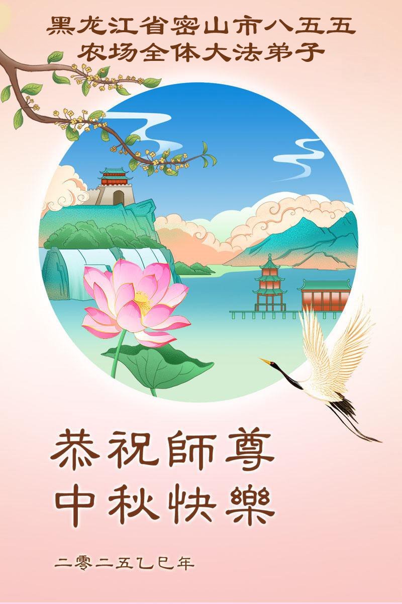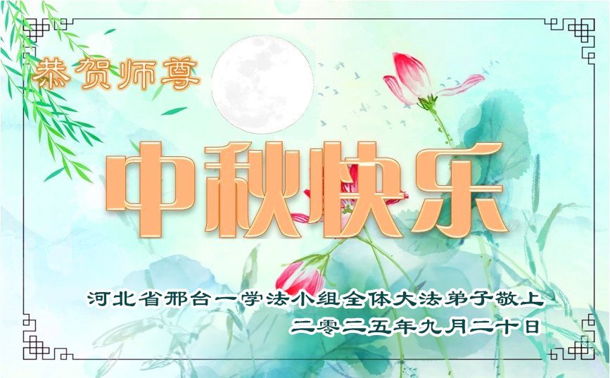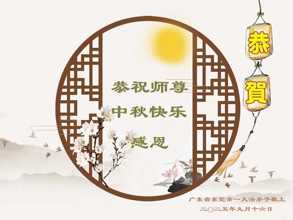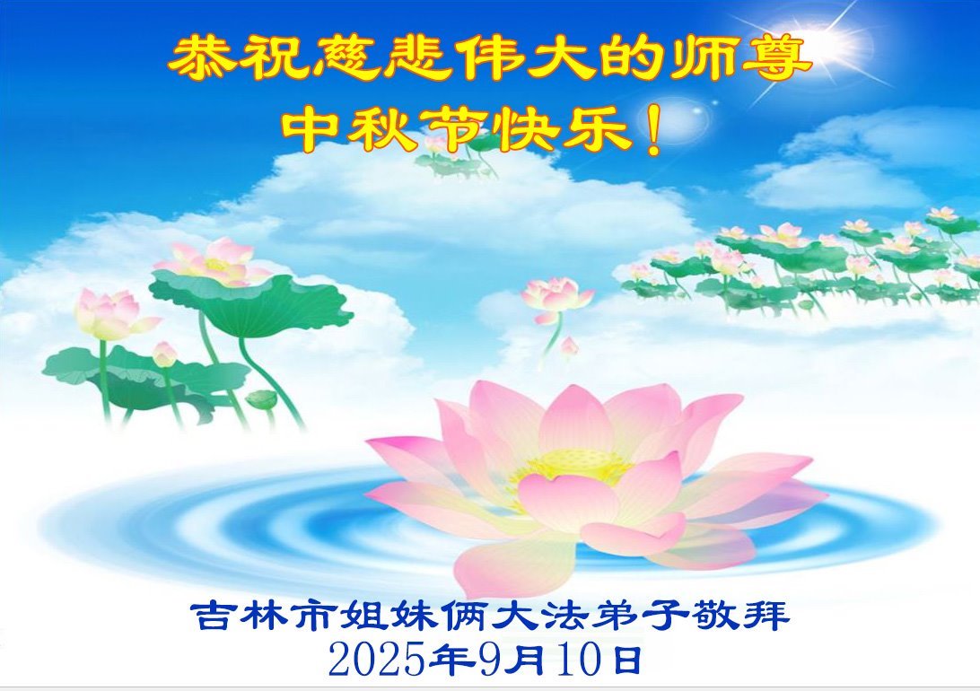 【明慧網二零二五年十月一日】(明慧網通訊員中國大陸報導)中秋佳節倍思恩,中國各省市民眾恭祝李洪志大師中秋節快樂!支持大法、得到大法佑護的中國大陸各界民眾表示:現在天災人禍,民不聊生,貪官污吏橫行霸道,老百姓都盼望中共垮台。如果人人都按真善忍做好人,社會就安定。他們在賀詞中寫道:「願中國人儘早拋棄邪黨」,「堂堂正正做一個正直的中國人」。