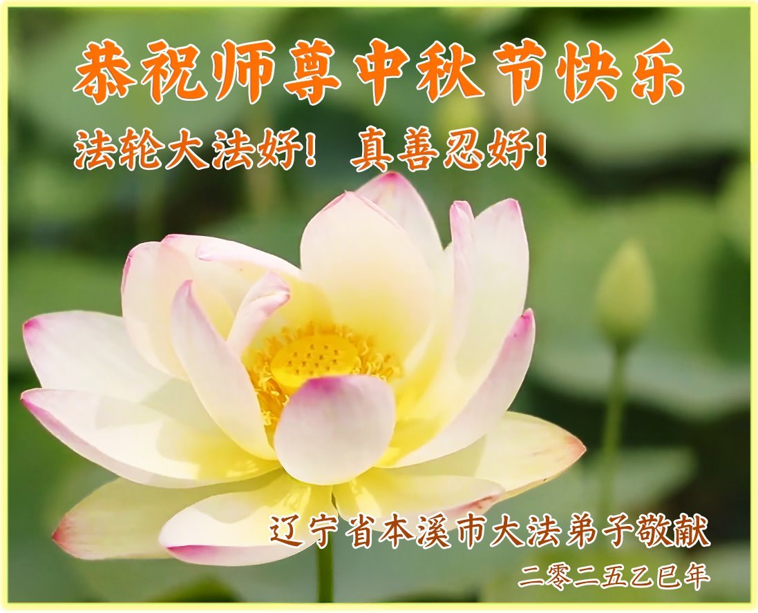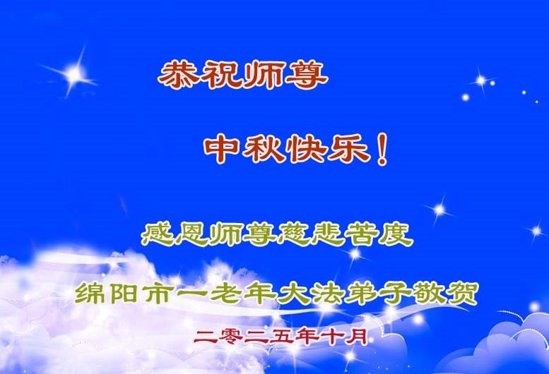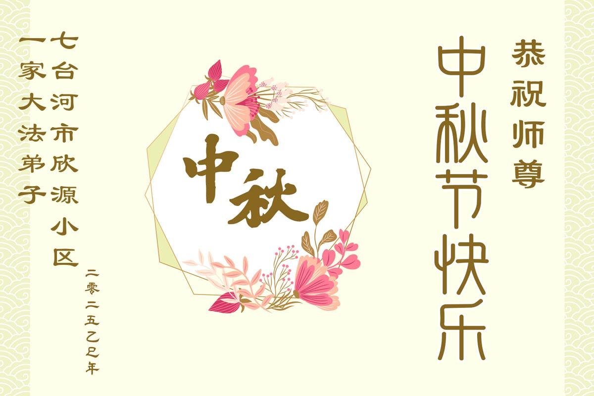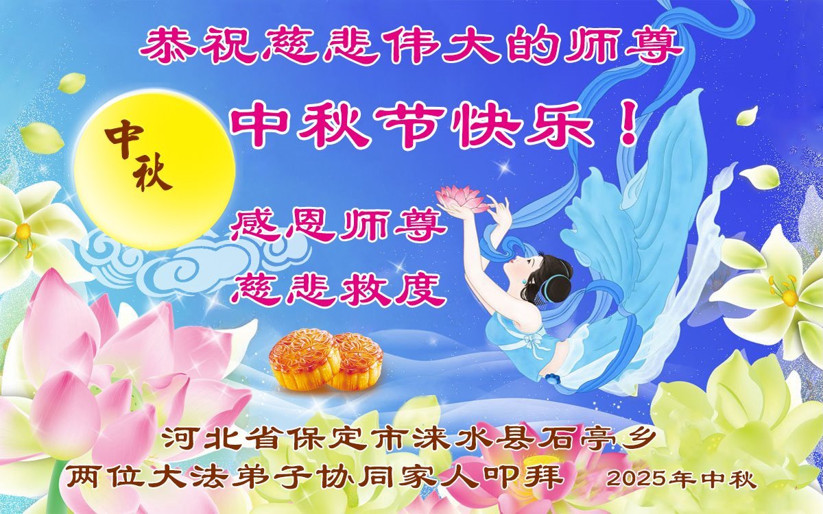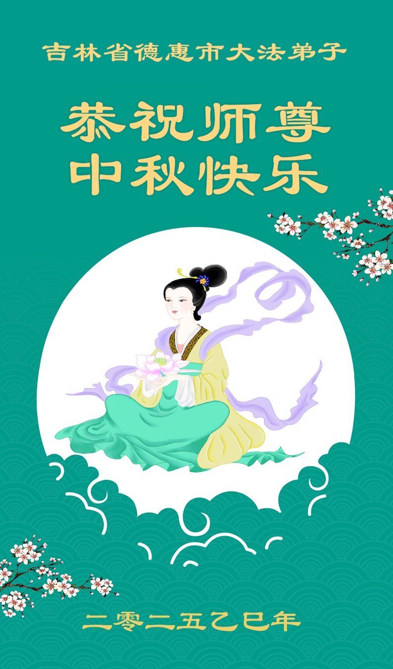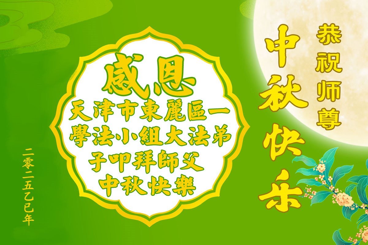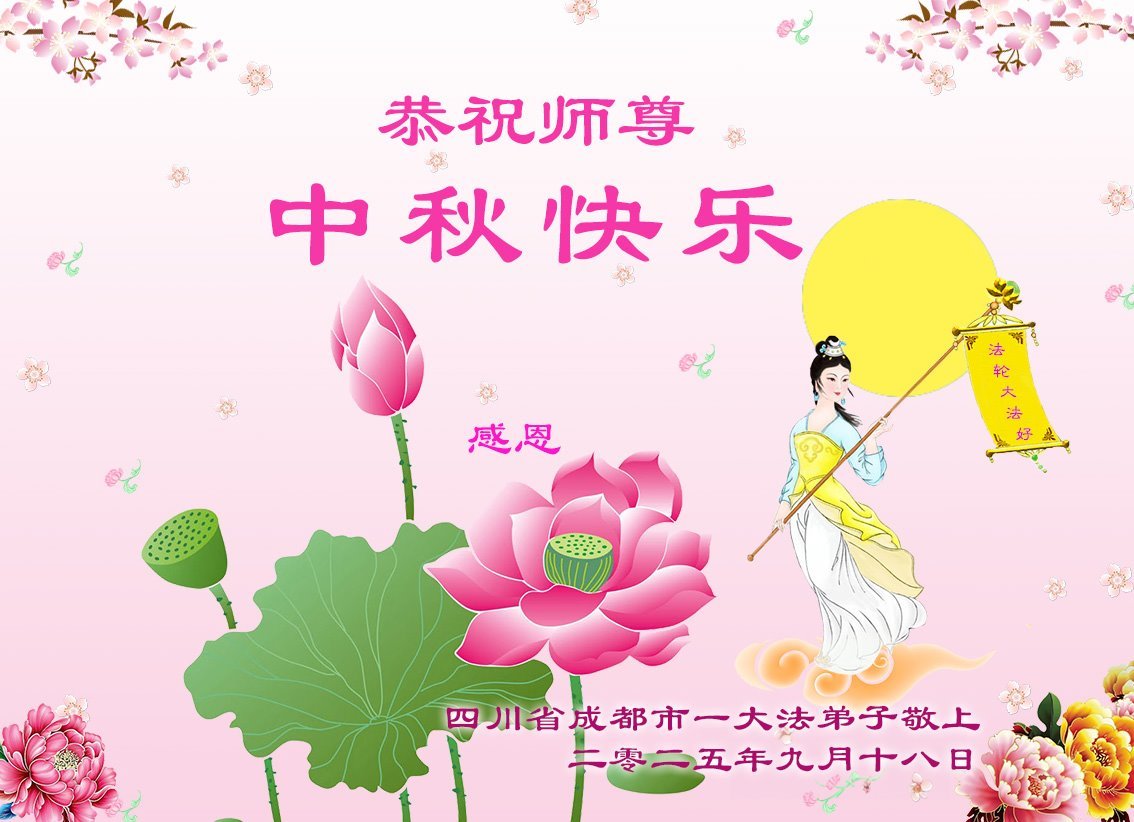 【明慧網二零二五年十月一日】(明慧網通訊員中國大陸報導)中秋佳節倍思恩,中國各省市民眾恭祝李洪志大師中秋節快樂!支持大法、得到大法佑護的中國大陸各界民眾表示:現在天災人禍,民不聊生,貪官污吏橫行霸道,老百姓都盼望中共垮台。如果人人都按真善忍做好人,社會就安定。他們在賀詞中寫道:「願中國人儘早拋棄邪黨」,「堂堂正正做一個正直的中國人」。