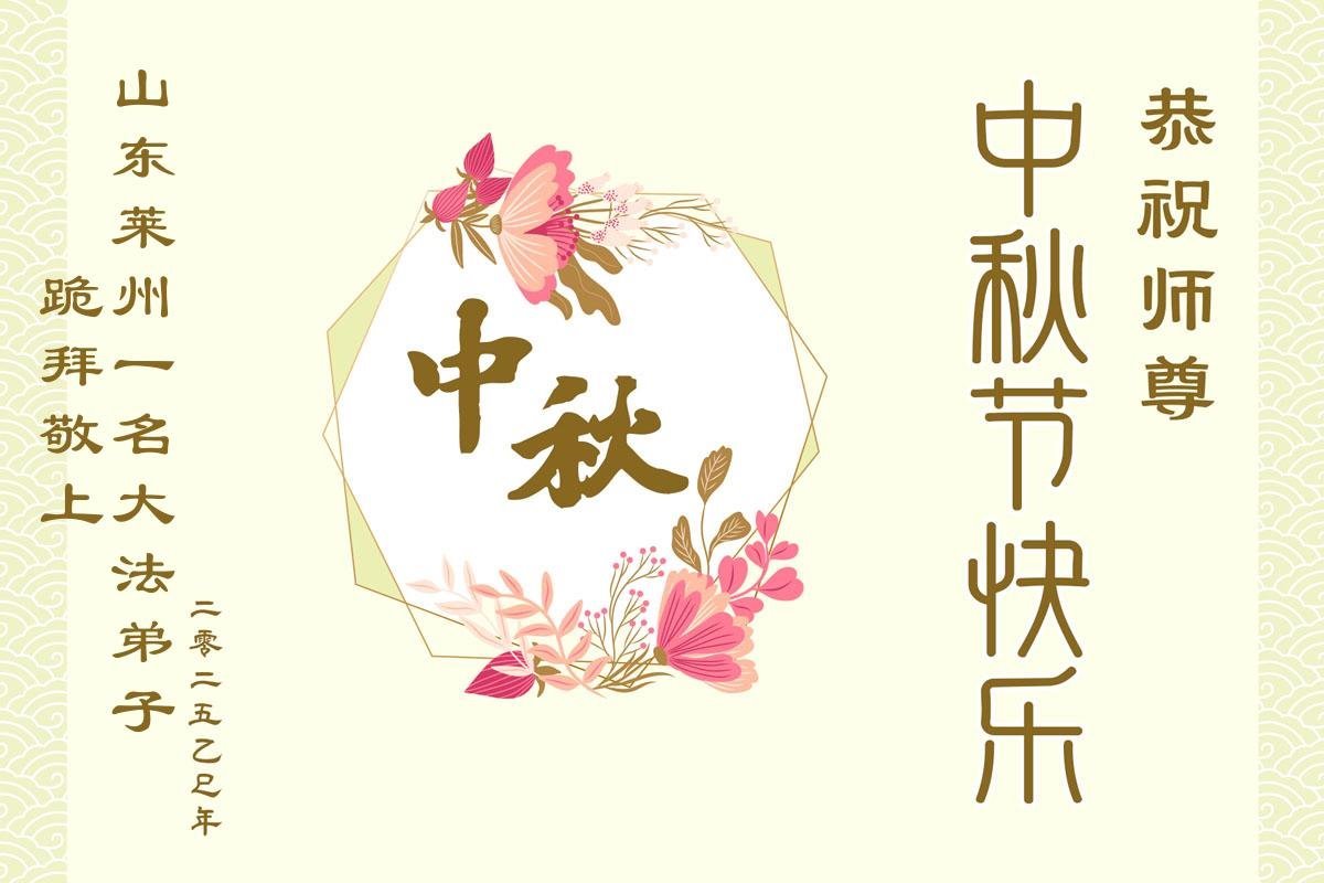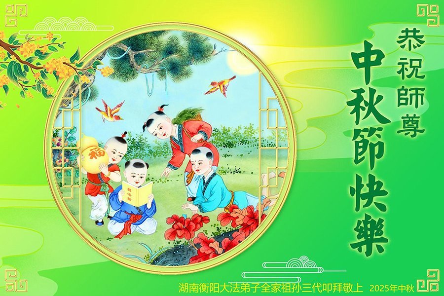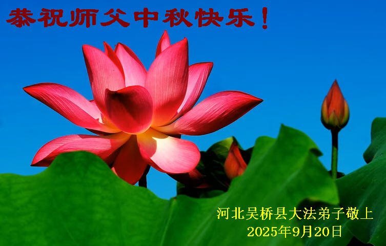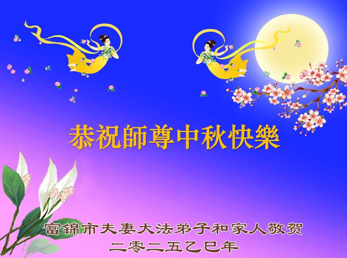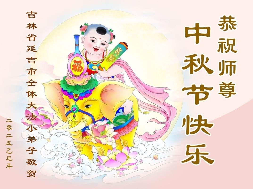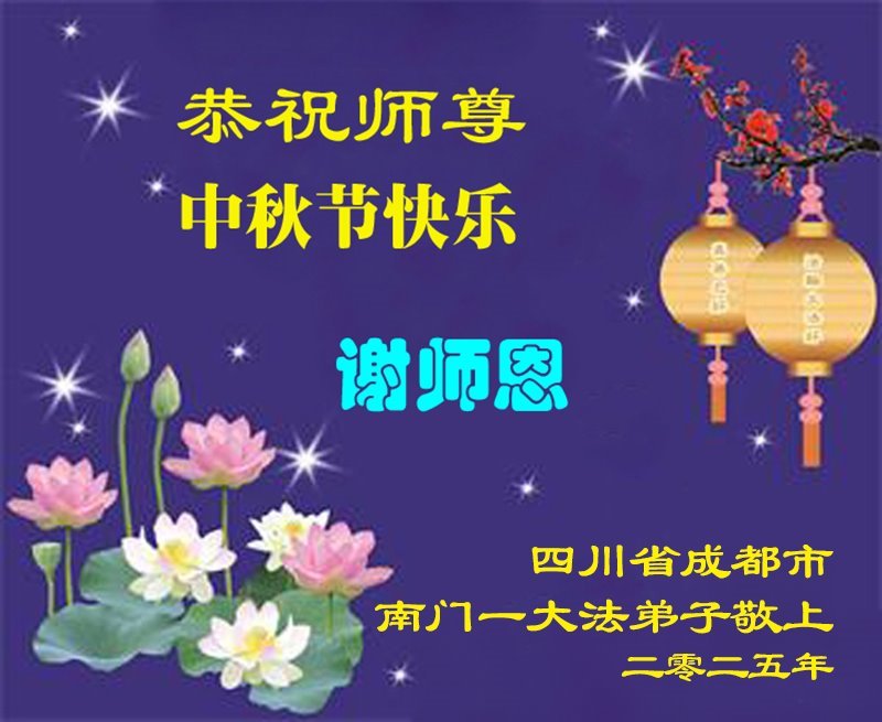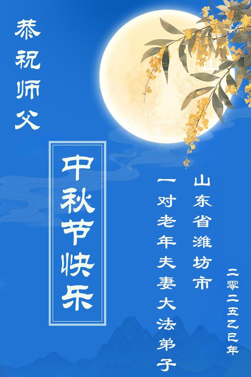 【明慧網二零二五年十月一日】(明慧網通訊員中國大陸報導)中秋佳節倍思恩,中國各省市民眾恭祝李洪志大師中秋節快樂!支持大法、得到大法佑護的中國大陸各界民眾表示:現在天災人禍,民不聊生,貪官污吏橫行霸道,老百姓都盼望中共垮台。如果人人都按真善忍做好人,社會就安定。他們在賀詞中寫道:「願中國人儘早拋棄邪黨」,「堂堂正正做一個正直的中國人」。