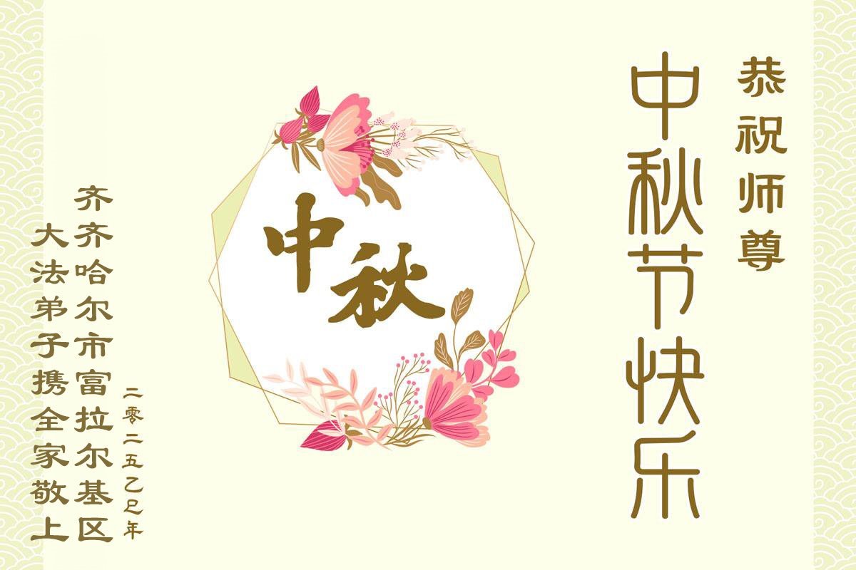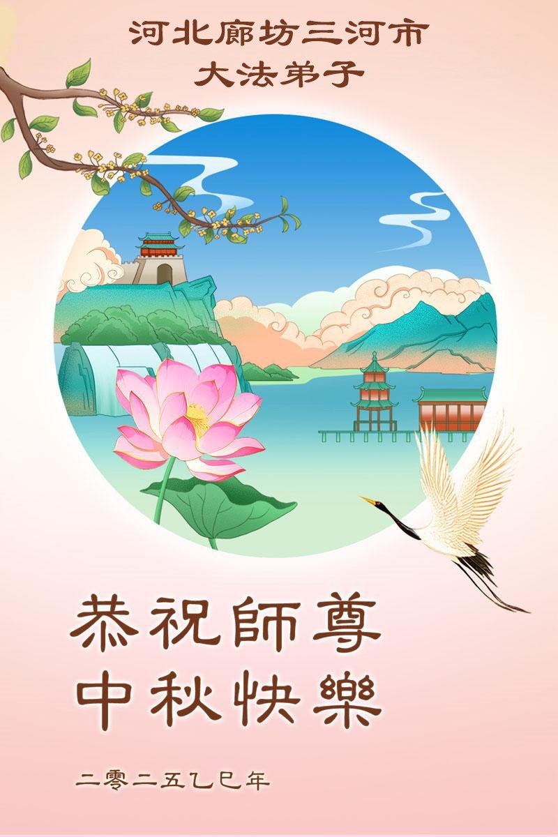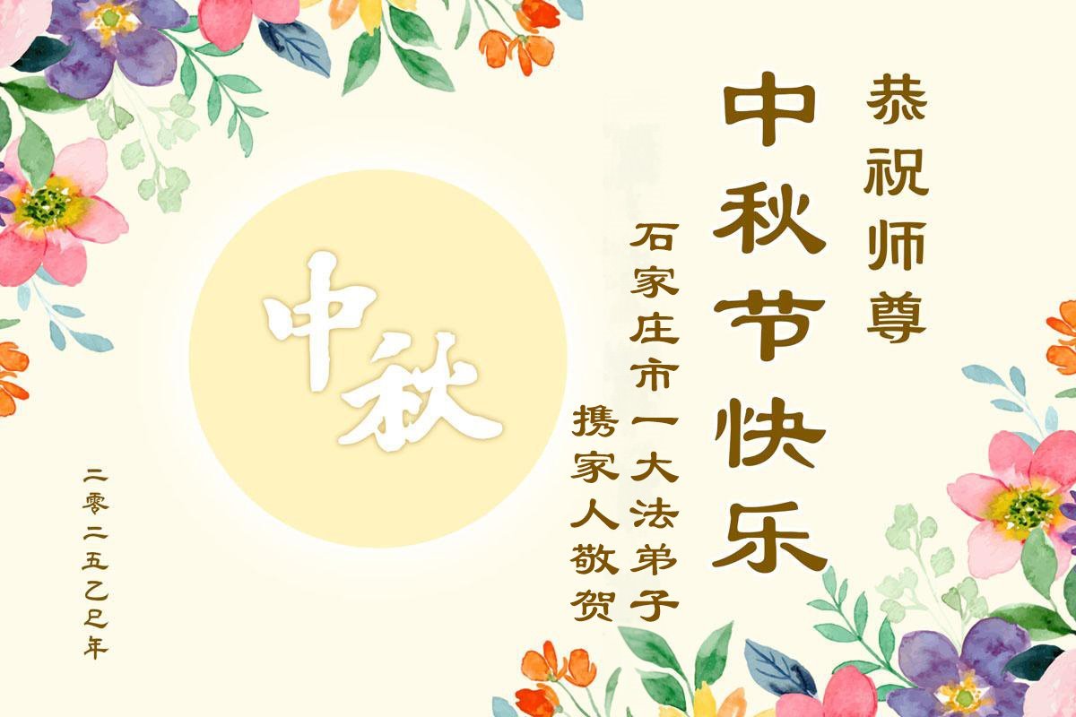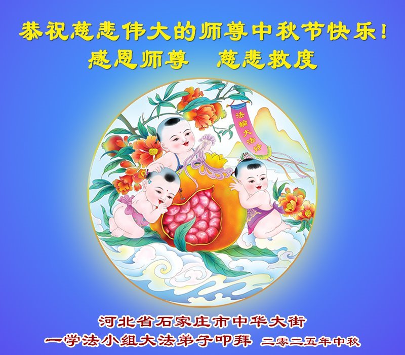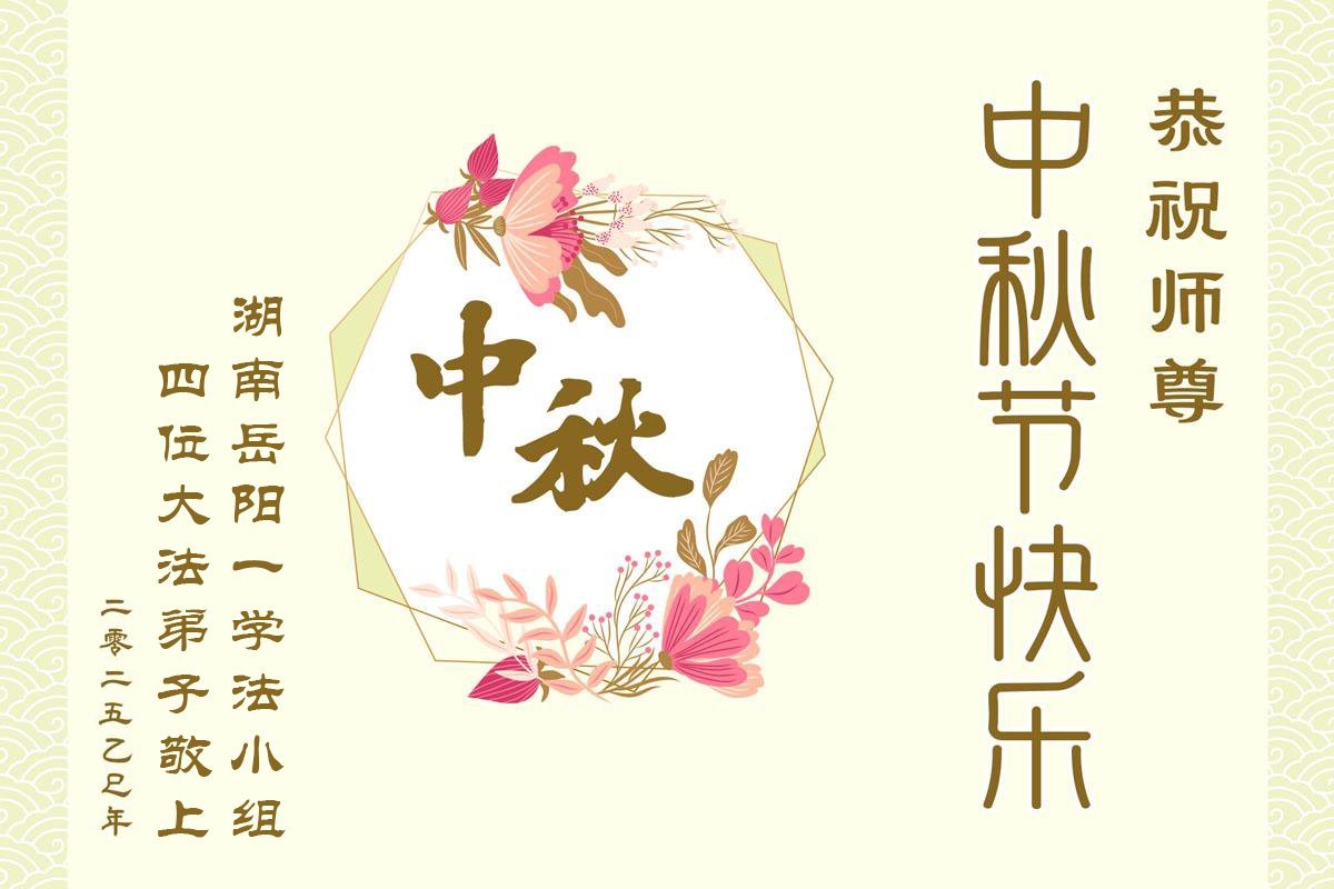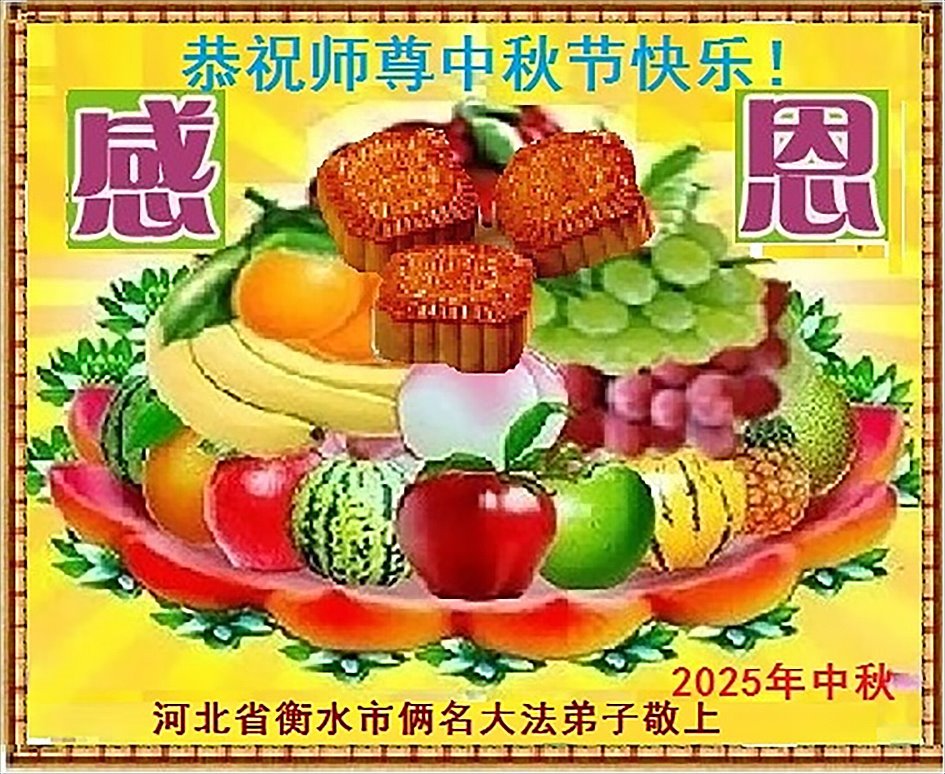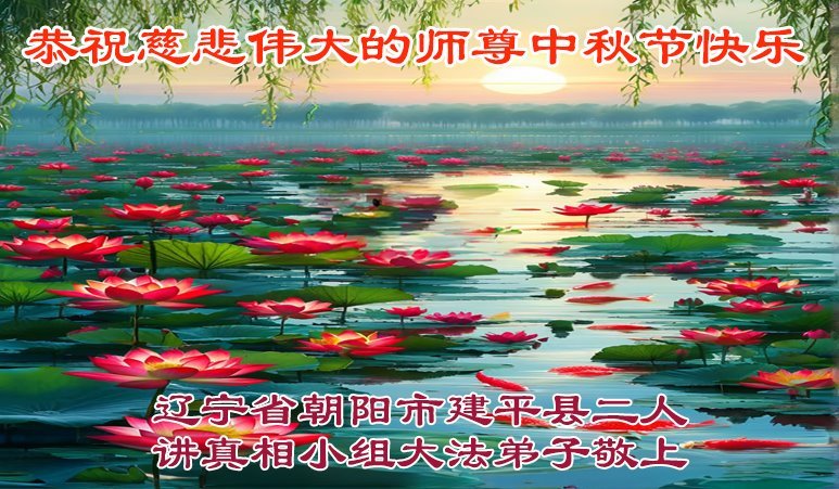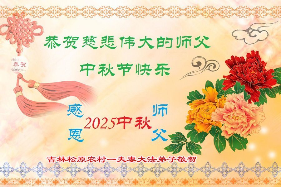 【明慧網二零二五年十月一日】(明慧網通訊員中國大陸報導)中秋佳節倍思恩,中國各省市民眾恭祝李洪志大師中秋節快樂!支持大法、得到大法佑護的中國大陸各界民眾表示:現在天災人禍,民不聊生,貪官污吏橫行霸道,老百姓都盼望中共垮台。如果人人都按真善忍做好人,社會就安定。他們在賀詞中寫道:「願中國人儘早拋棄邪黨」,「堂堂正正做一個正直的中國人」。