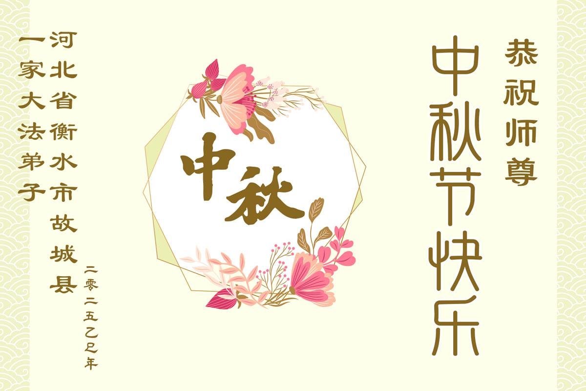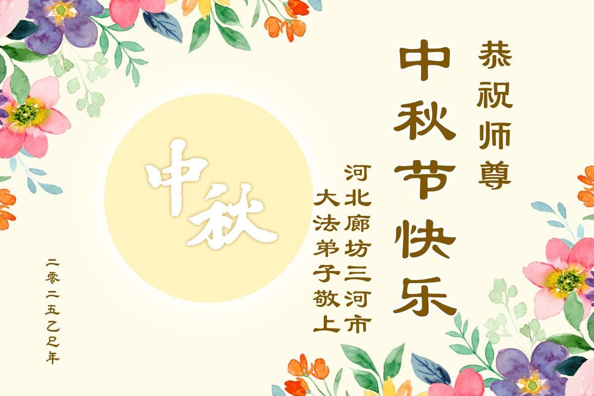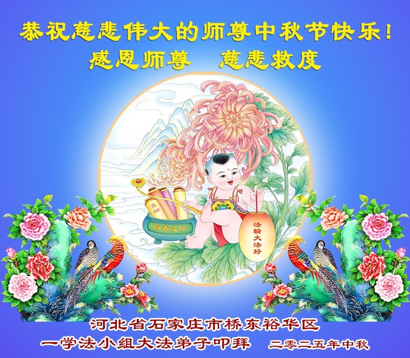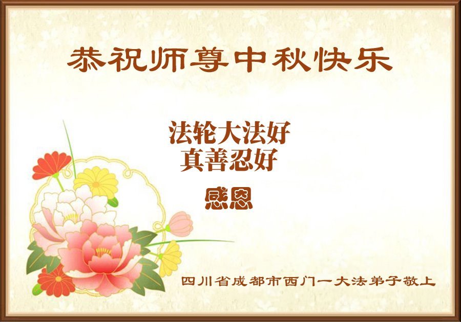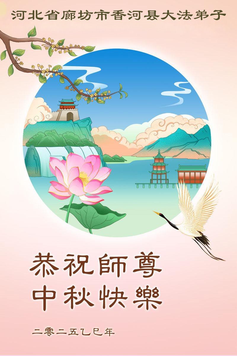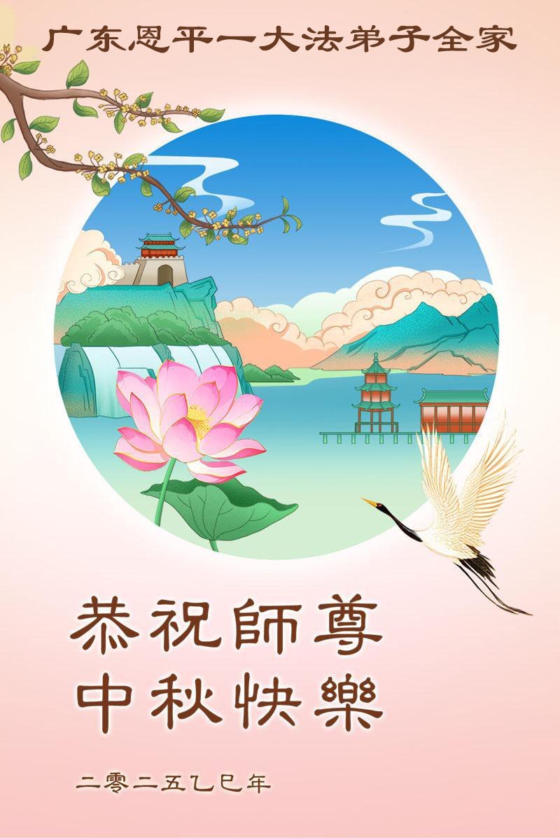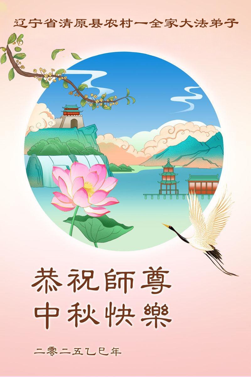 【明慧網二零二五年十月一日】(明慧網通訊員中國大陸報導)中秋佳節倍思恩,中國各省市民眾恭祝李洪志大師中秋節快樂!支持大法、得到大法佑護的中國大陸各界民眾表示:現在天災人禍,民不聊生,貪官污吏橫行霸道,老百姓都盼望中共垮台。如果人人都按真善忍做好人,社會就安定。他們在賀詞中寫道:「願中國人儘早拋棄邪黨」,「堂堂正正做一個正直的中國人」。