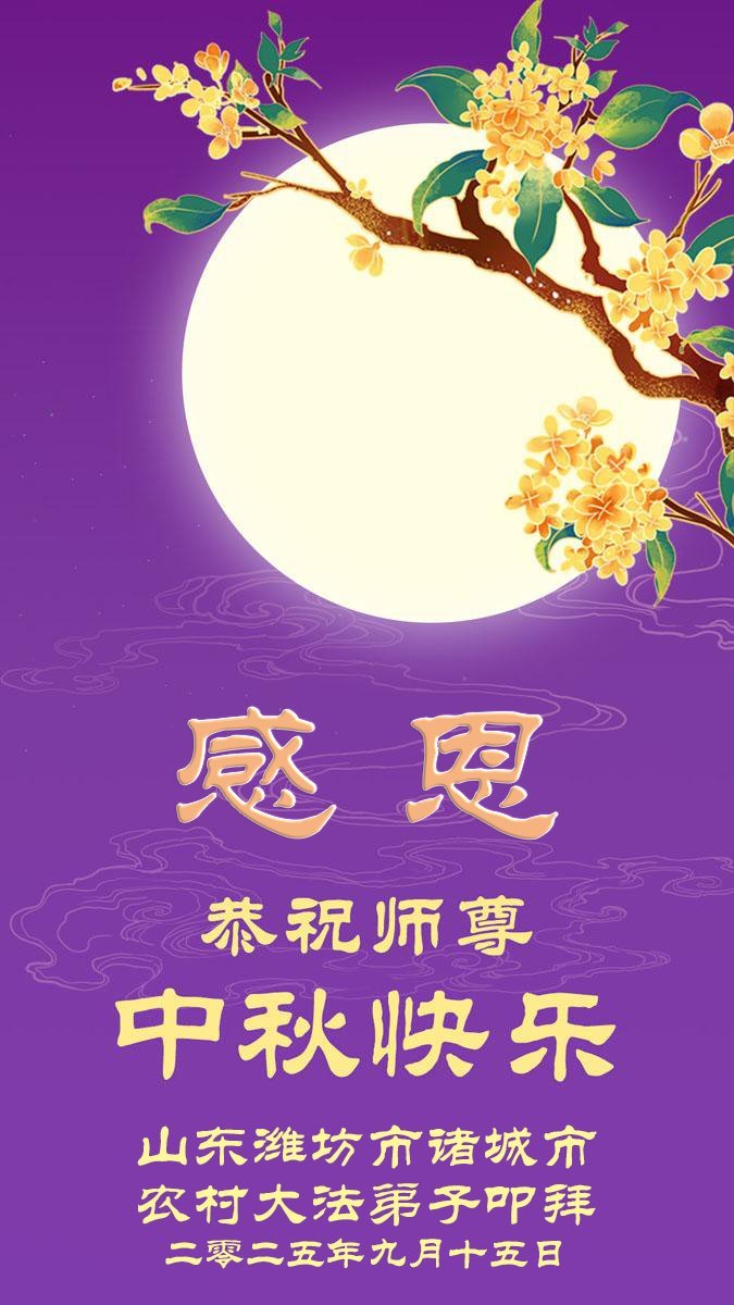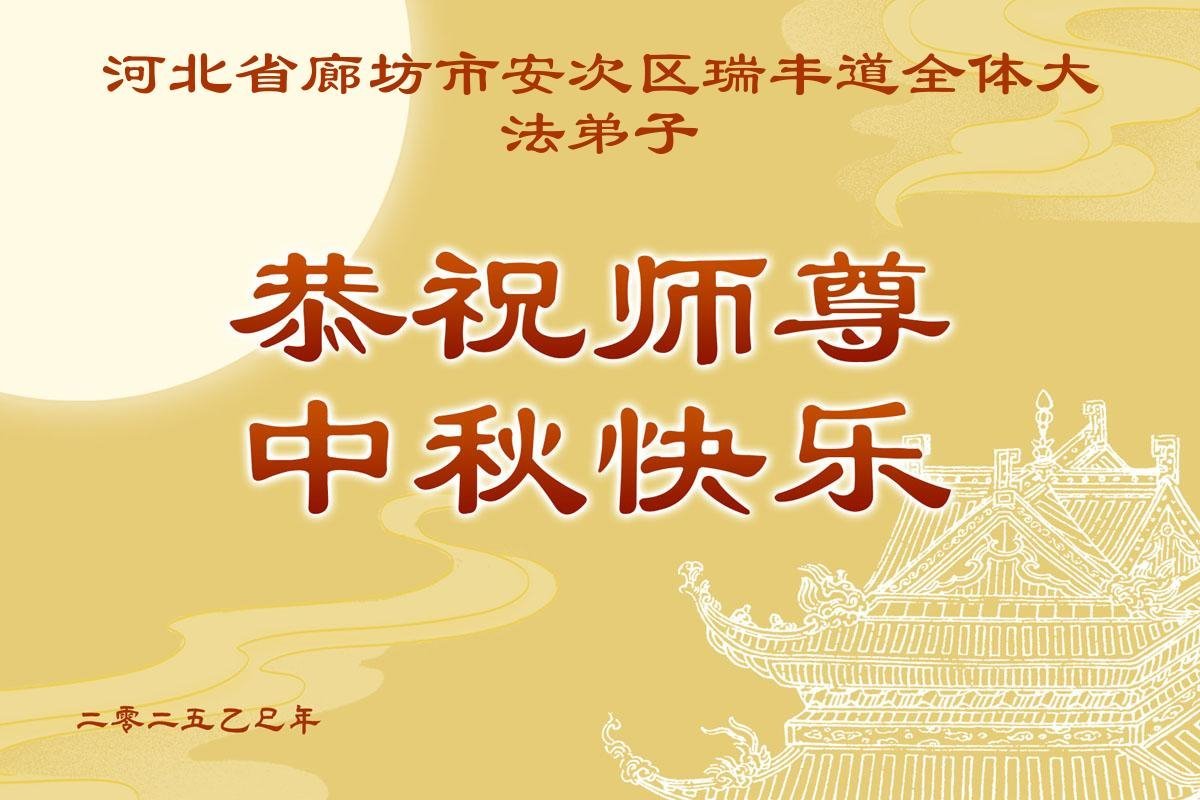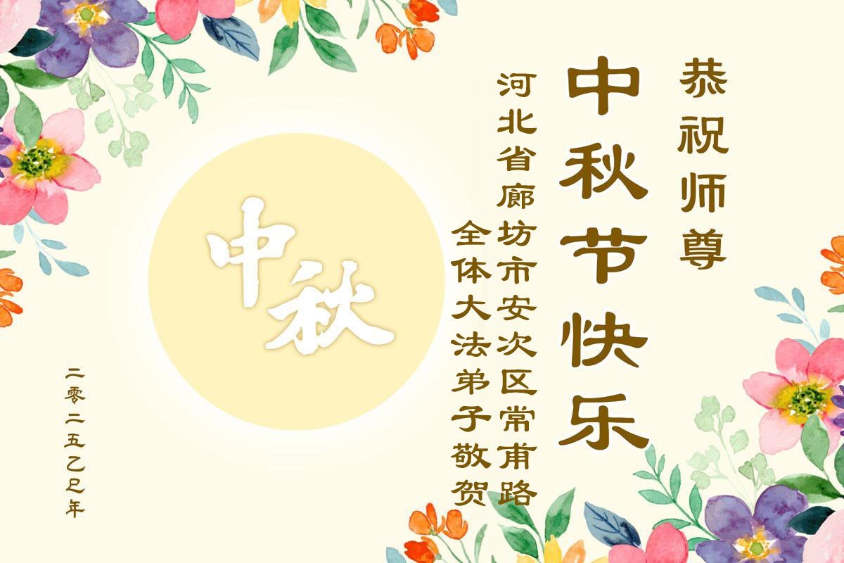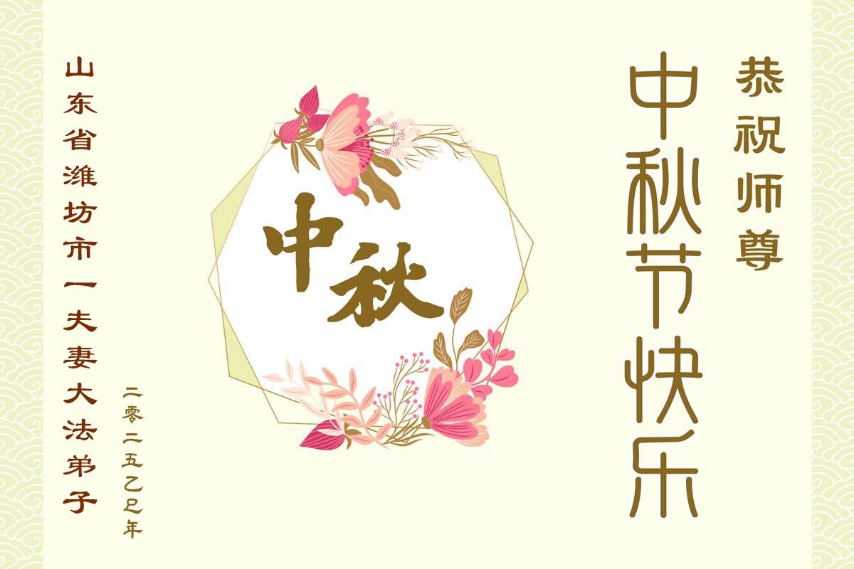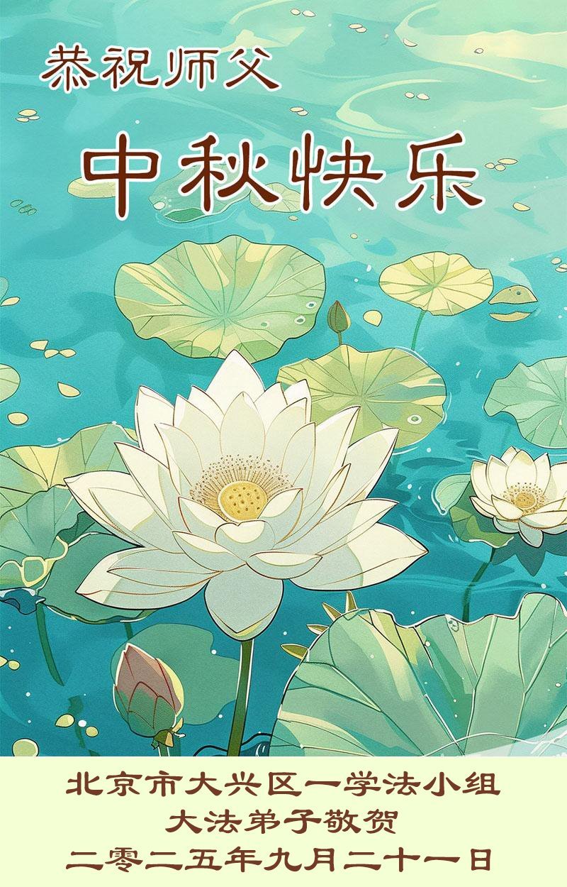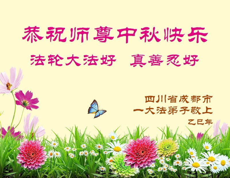 【明慧網二零二五年十月一日】(明慧網通訊員中國大陸報導)中秋佳節倍思恩,中國各省市民眾恭祝李洪志大師中秋節快樂!支持大法、得到大法佑護的中國大陸各界民眾表示:現在天災人禍,民不聊生,貪官污吏橫行霸道,老百姓都盼望中共垮台。如果人人都按真善忍做好人,社會就安定。他們在賀詞中寫道:「願中國人儘早拋棄邪黨」,「堂堂正正做一個正直的中國人」。
