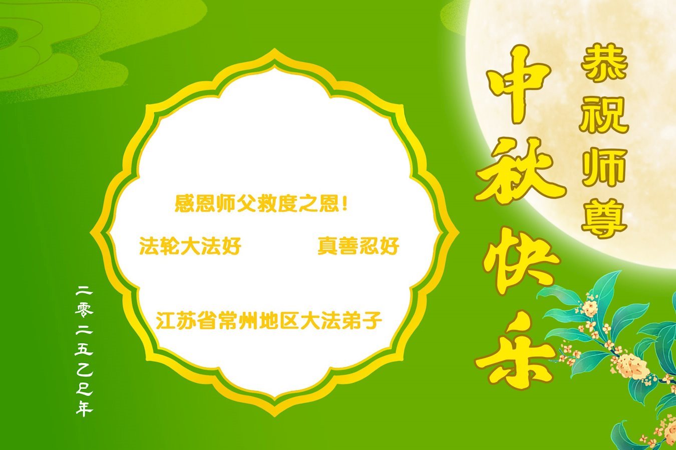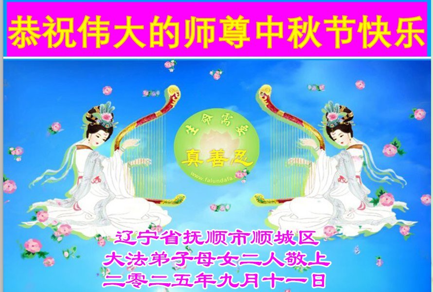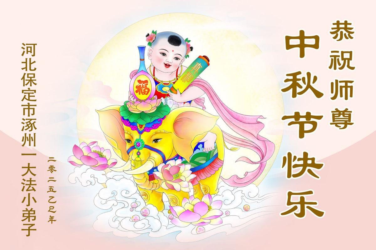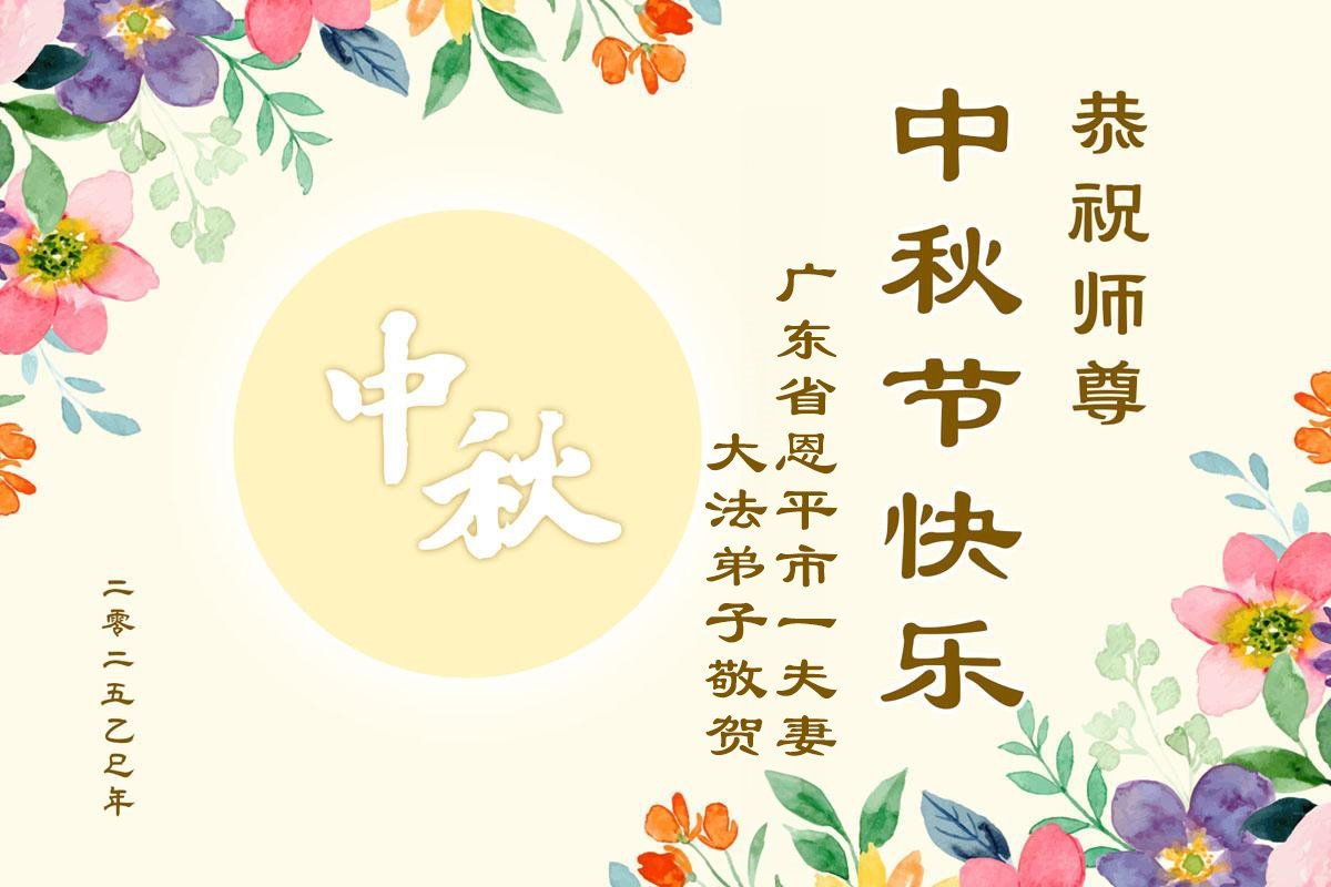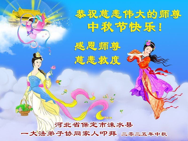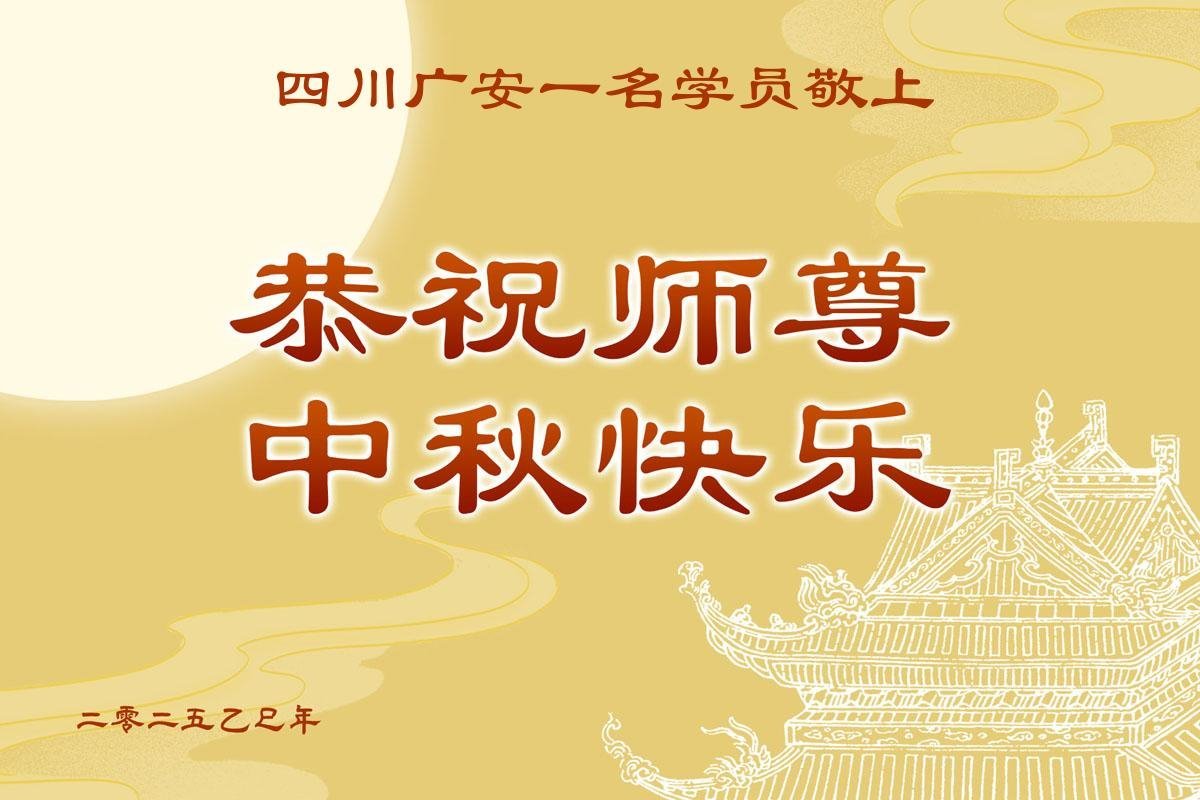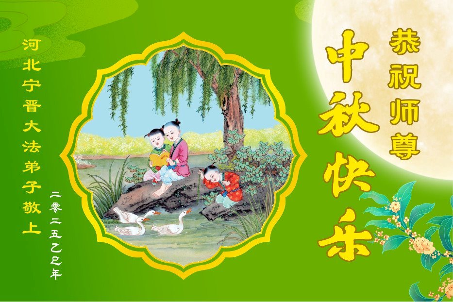 【明慧網二零二五年十月一日】(明慧網通訊員中國大陸報導)中秋佳節倍思恩,中國各省市民眾恭祝李洪志大師中秋節快樂!支持大法、得到大法佑護的中國大陸各界民眾表示:現在天災人禍,民不聊生,貪官污吏橫行霸道,老百姓都盼望中共垮台。如果人人都按真善忍做好人,社會就安定。他們在賀詞中寫道:「願中國人儘早拋棄邪黨」,「堂堂正正做一個正直的中國人」。