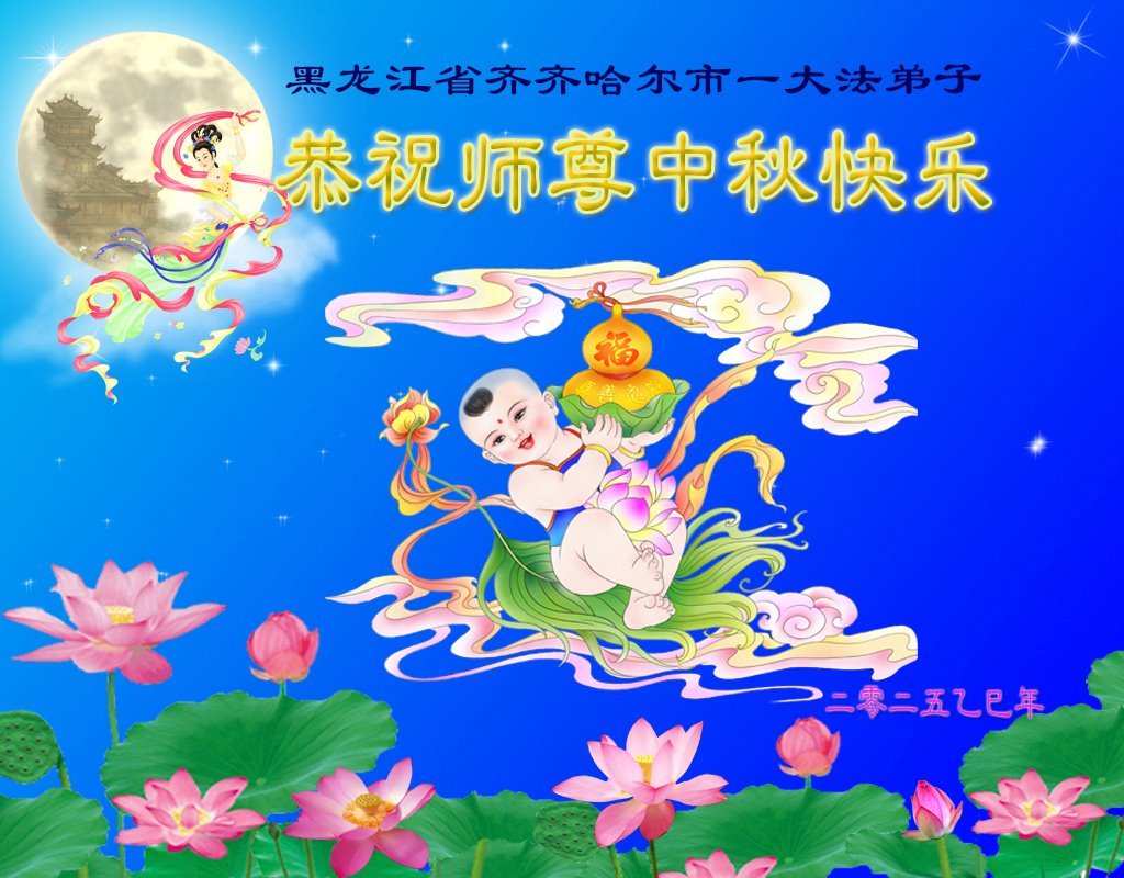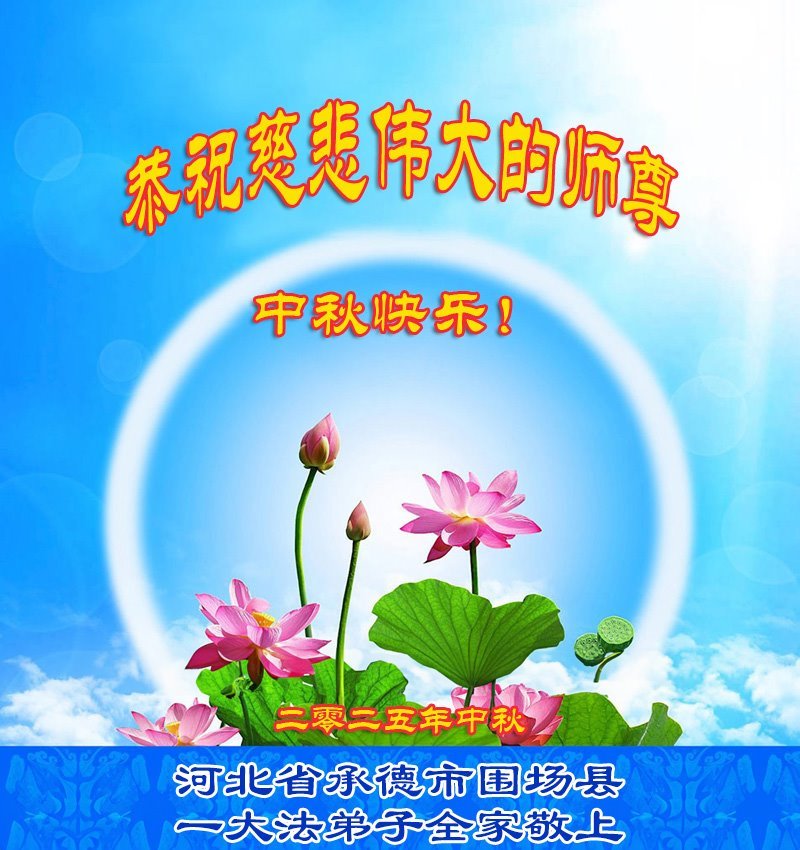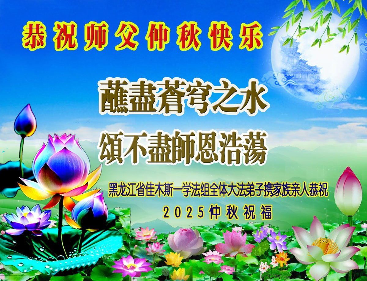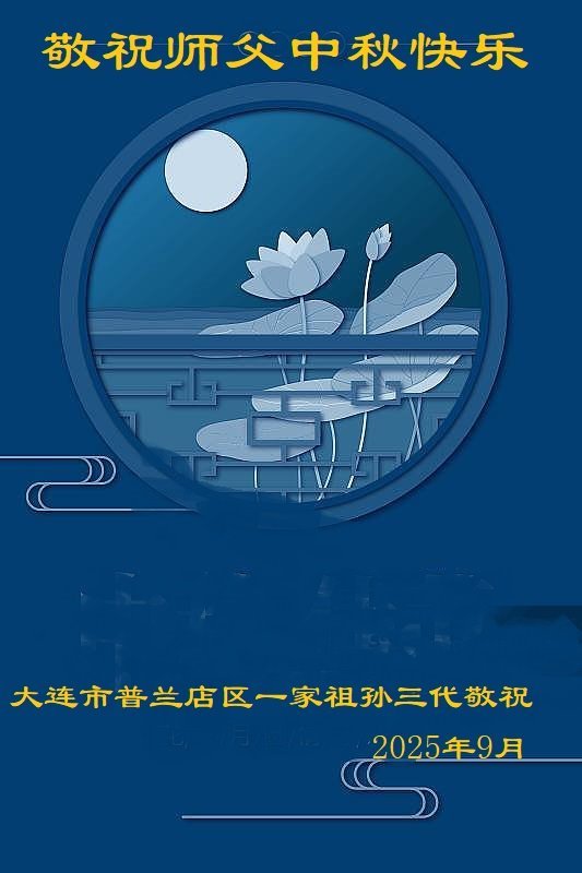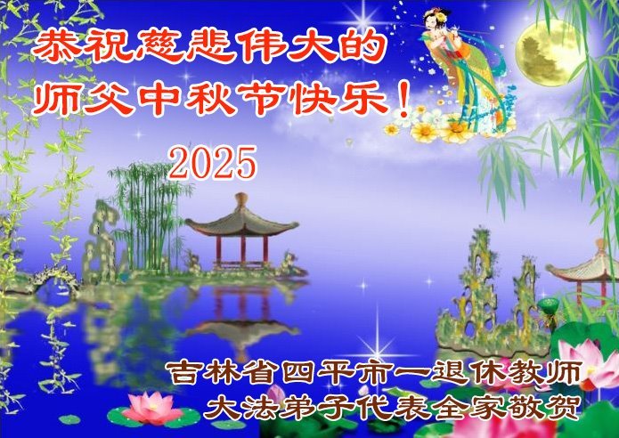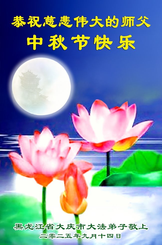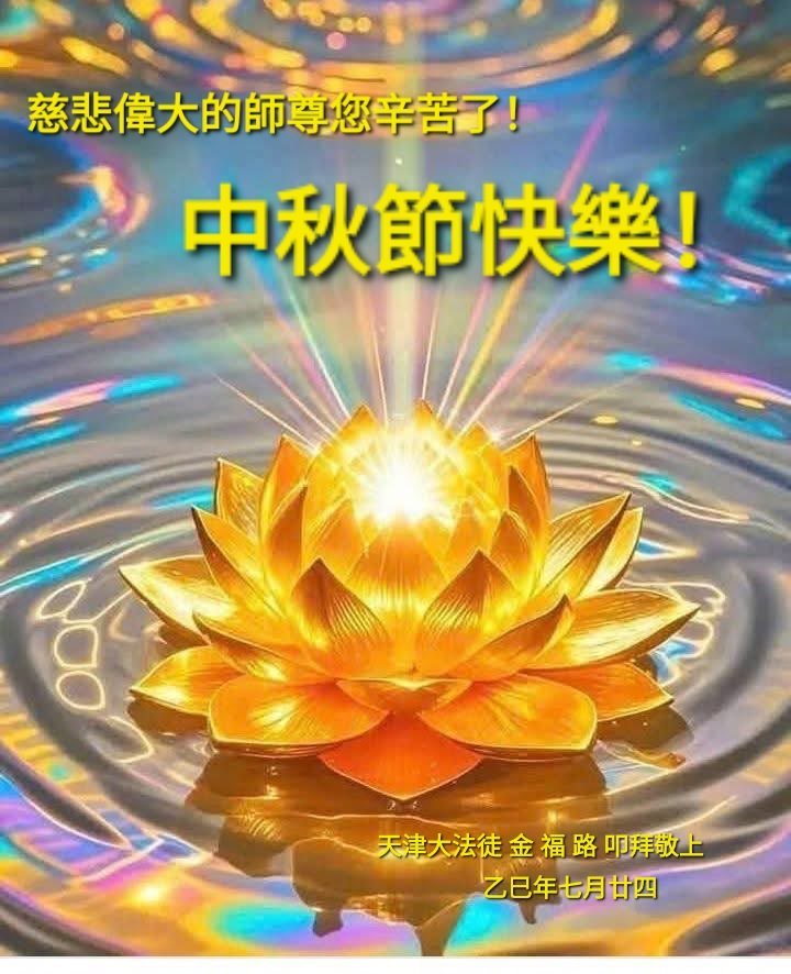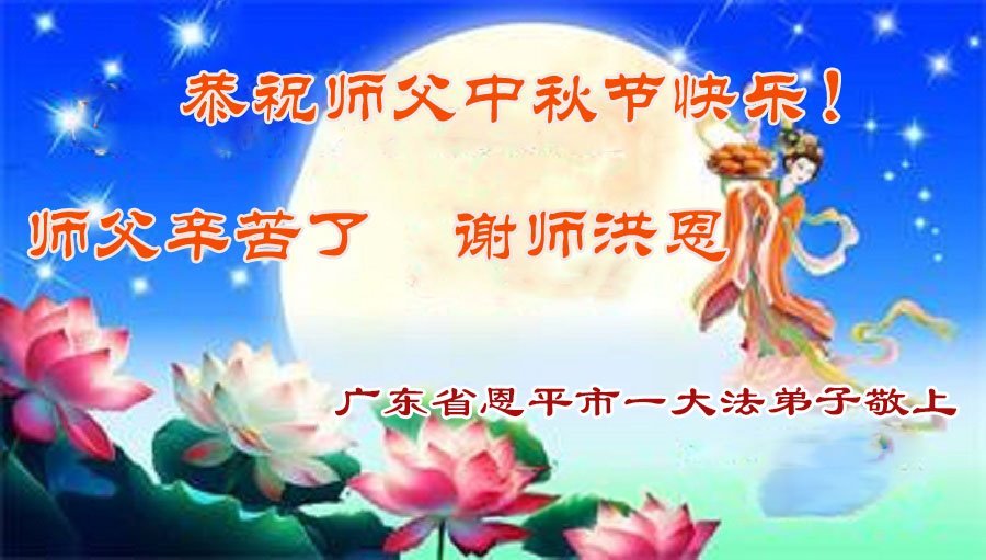 敬祝地球上最最尊敬的大法師父中秋節快樂!盼望大法師父早日回中國和您的弟子們團聚,願您的弟子們早日脫離苦海!也祝福大師的弟子們中秋快樂!