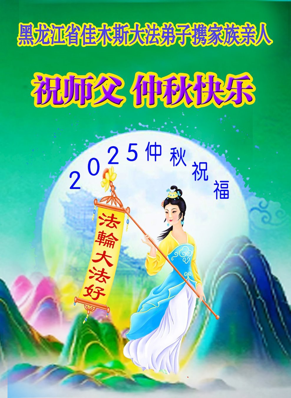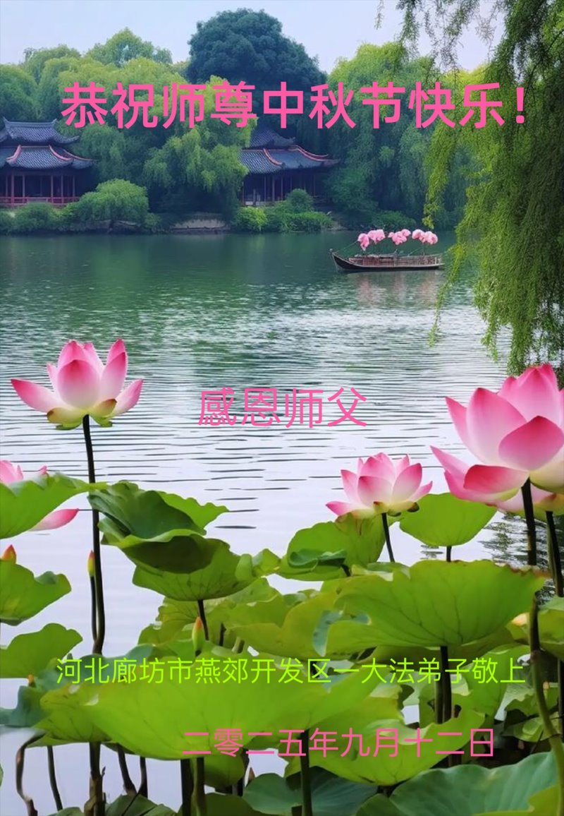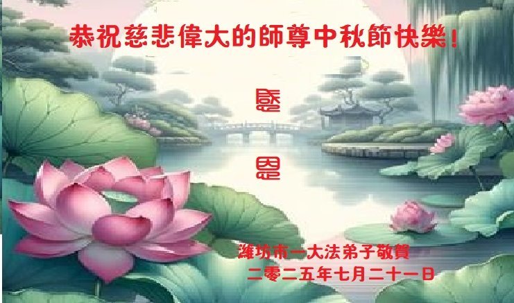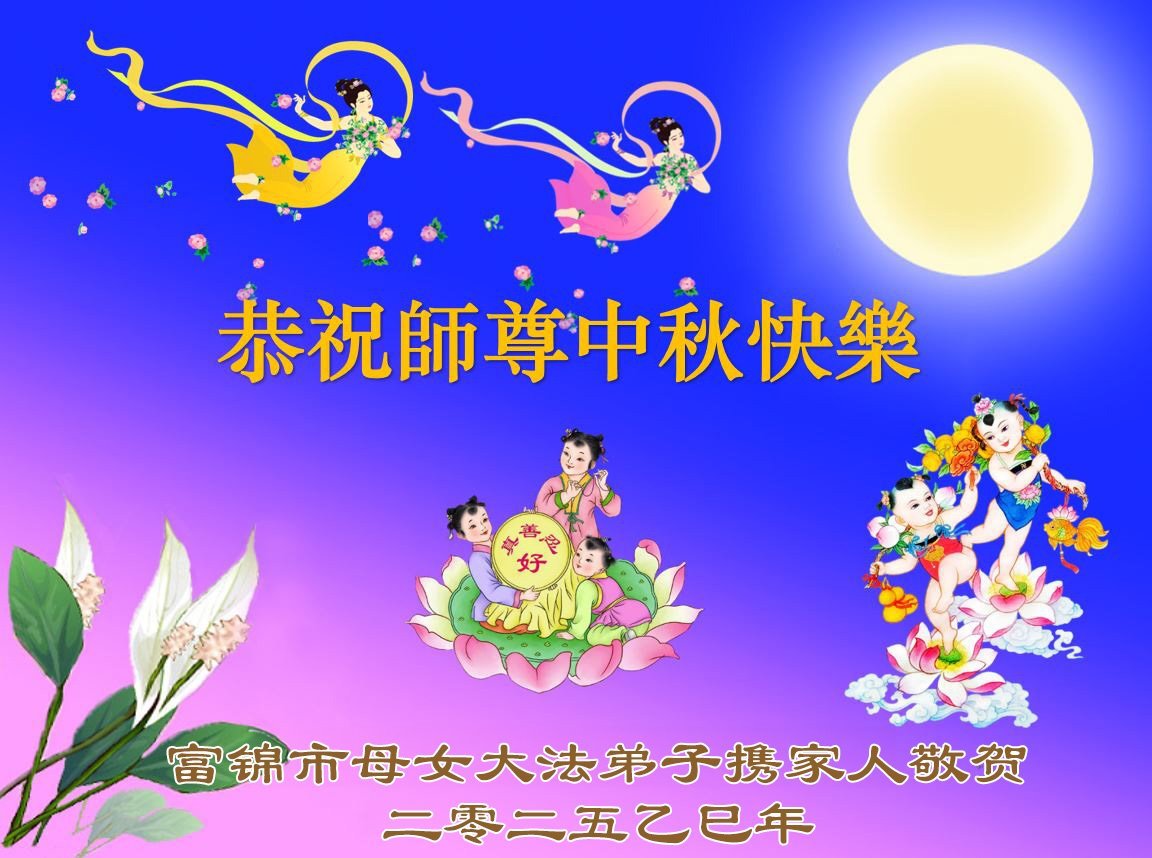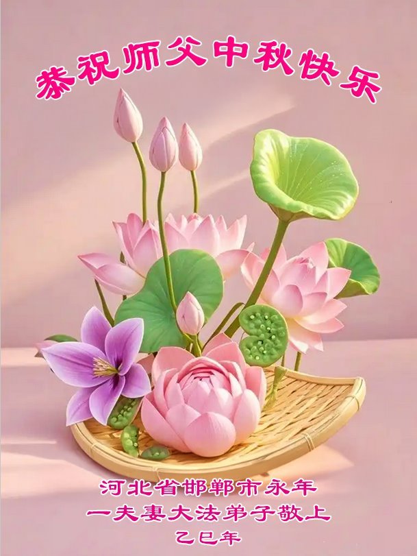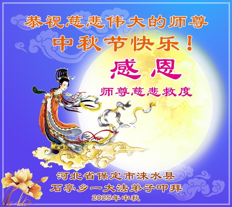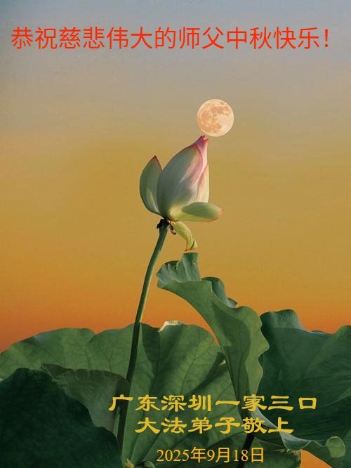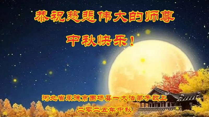 敬祝地球上最最尊敬的大法師父中秋節快樂!盼望大法師父早日回中國和您的弟子們團聚,願您的弟子們早日脫離苦海!也祝福大師的弟子們中秋快樂!