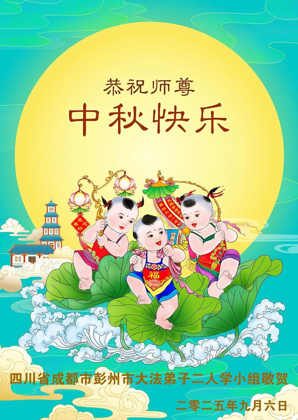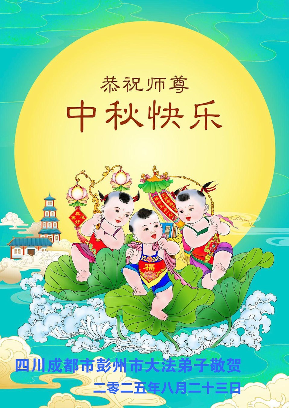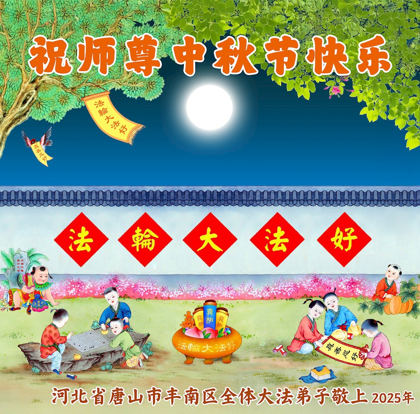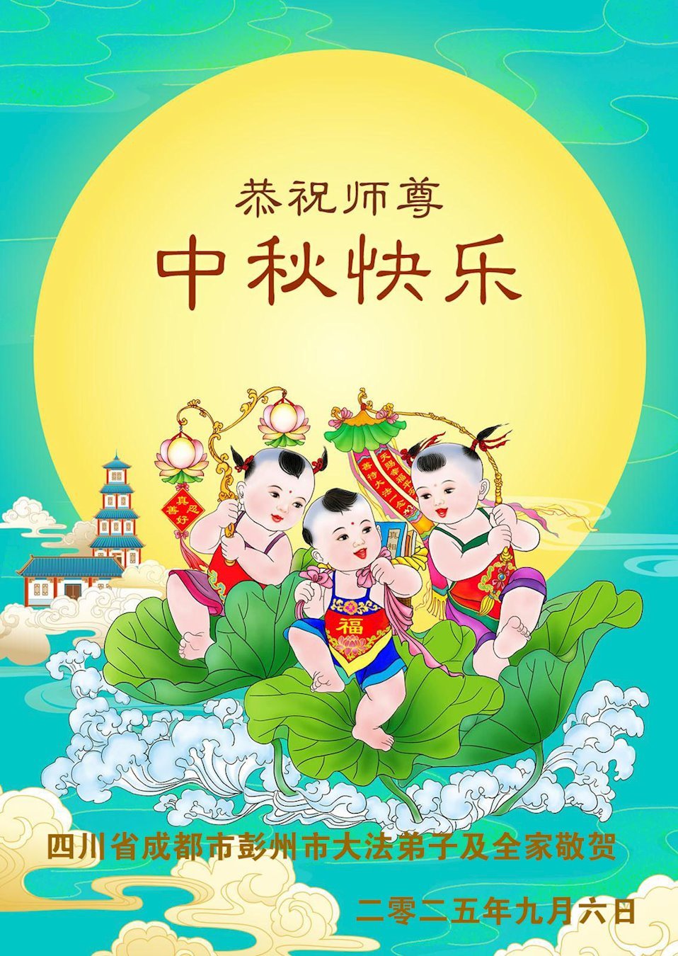 敬祝地球上最最尊敬的大法師父中秋節快樂!盼望大法師父早日回中國和您的弟子們團聚,願您的弟子們早日脫離苦海!也祝福大師的弟子們中秋快樂!