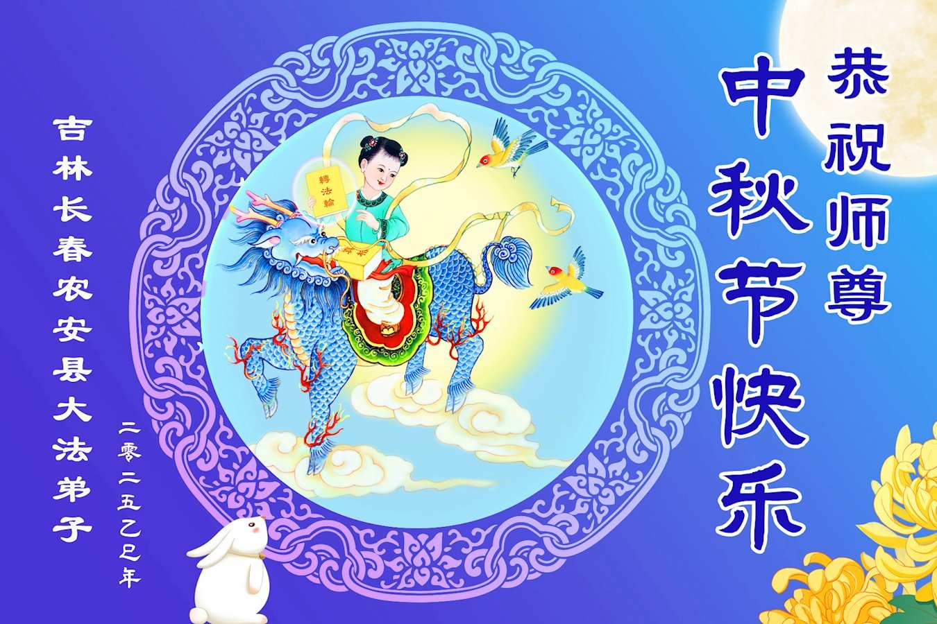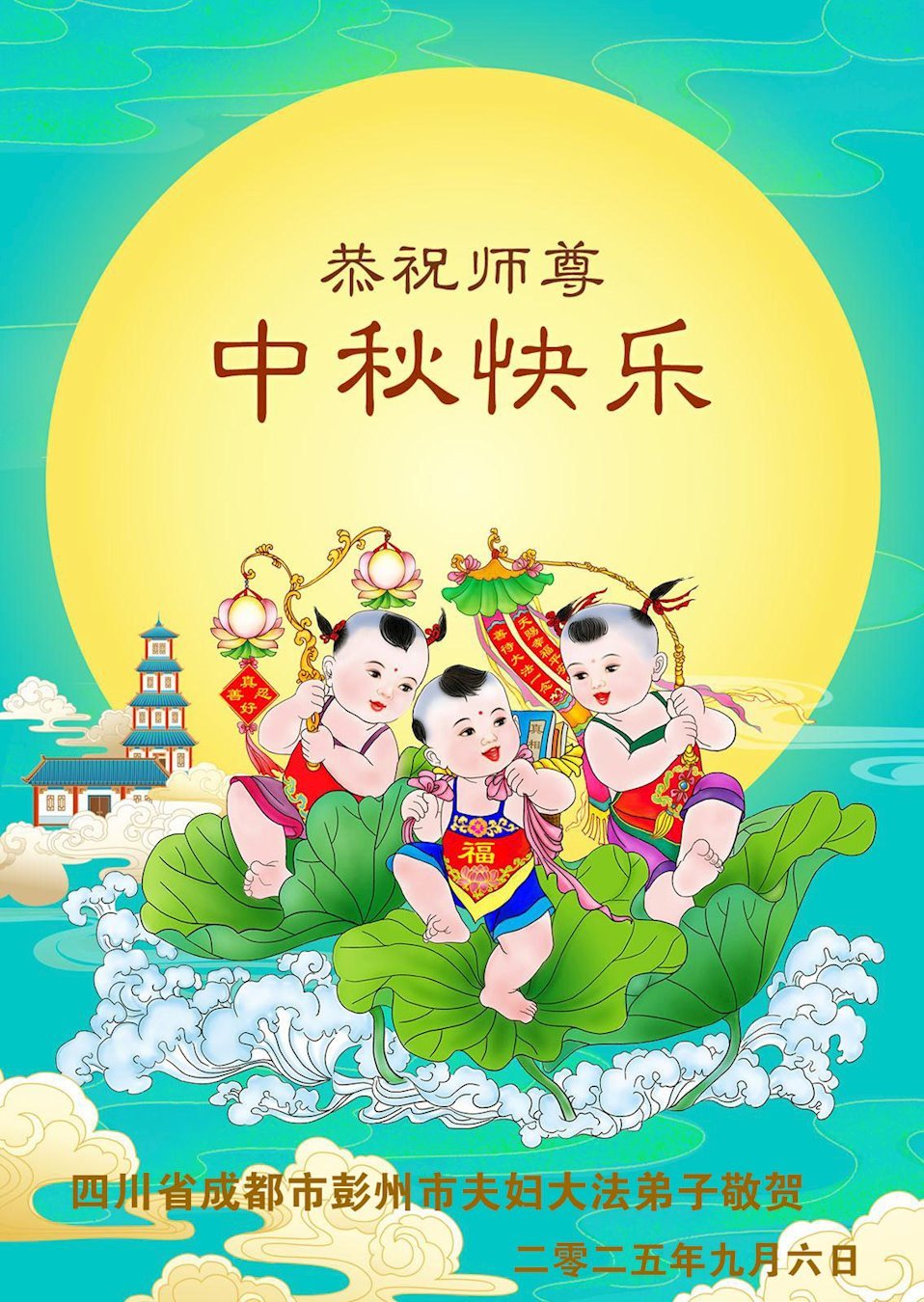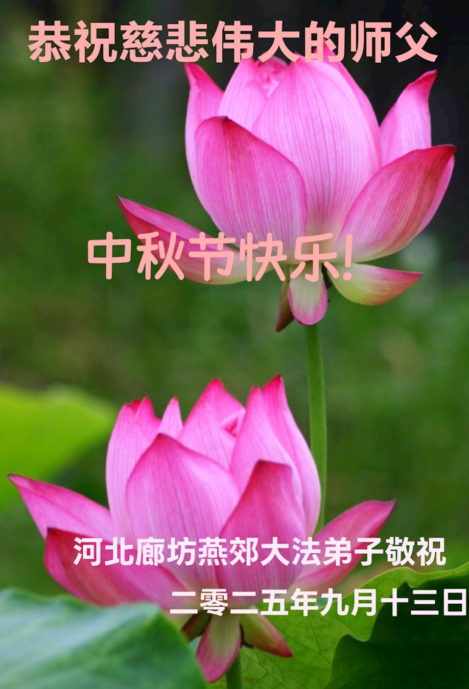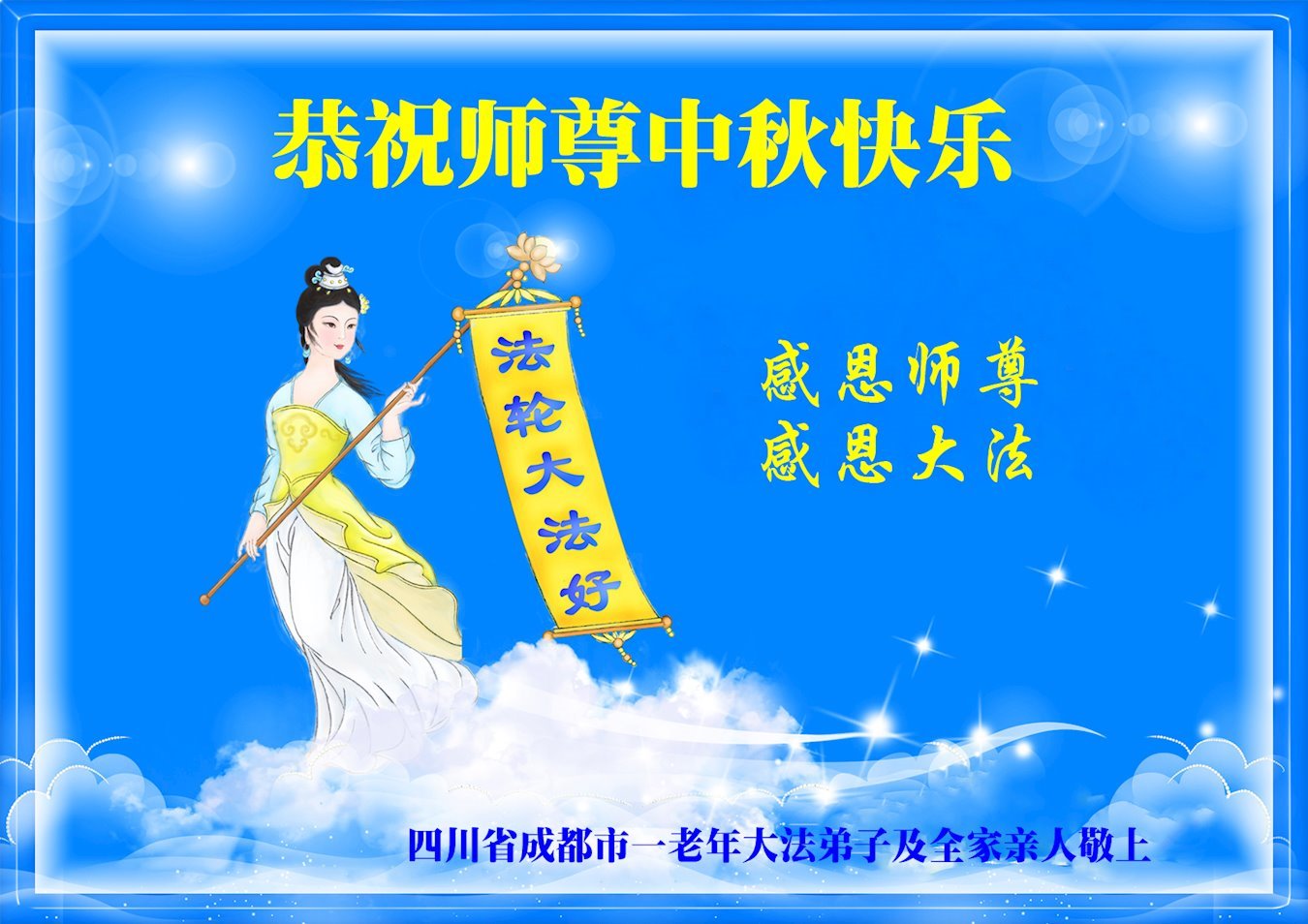 敬祝地球上最最尊敬的大法師父中秋節快樂!盼望大法師父早日回中國和您的弟子們團聚,願您的弟子們早日脫離苦海!也祝福大師的弟子們中秋快樂!
