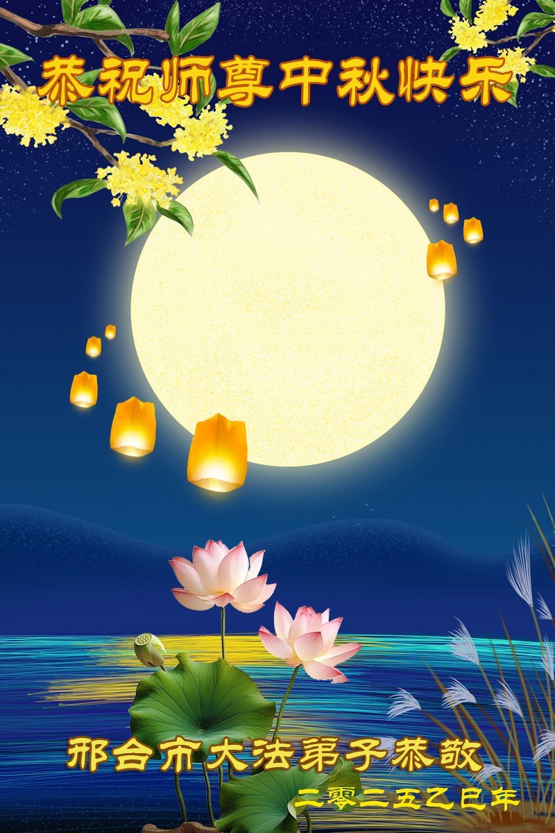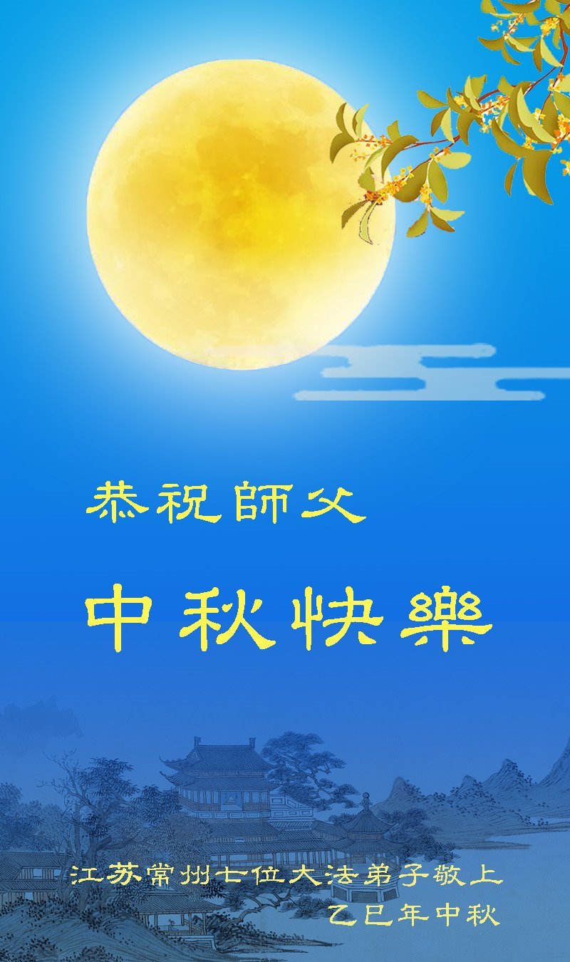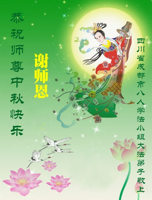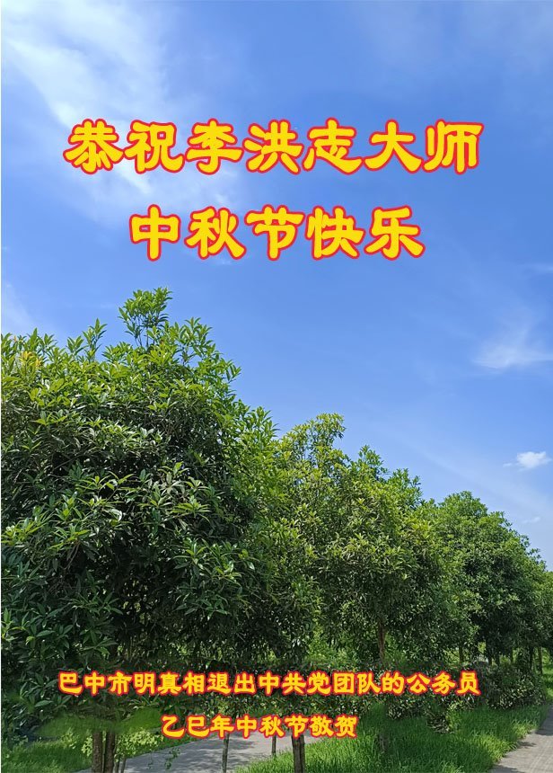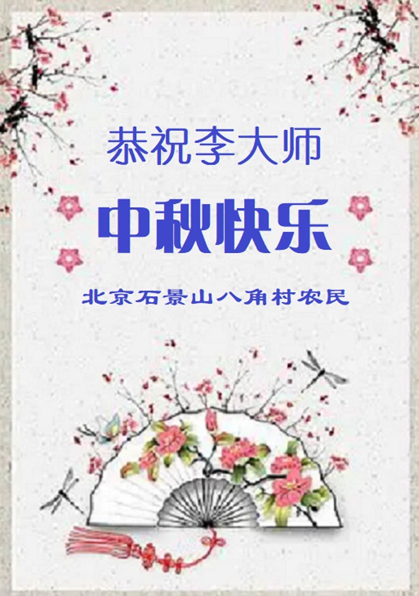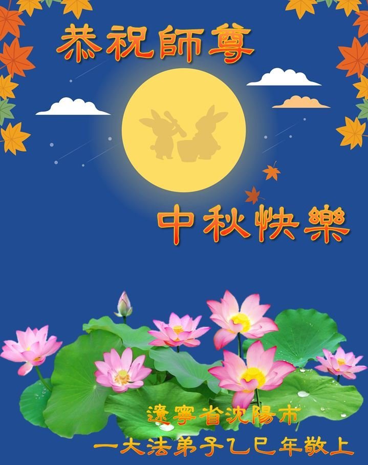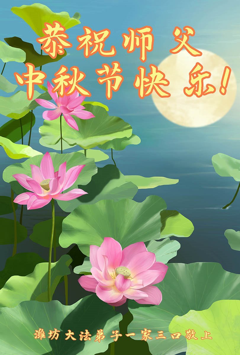中秋佳節即將到來,在此祝願李大師中秋快樂!願中國人儘早拋棄邪黨,過上真正屬於人類的正常生活。願大法弟子遭受的迫害儘快結束,能夠正常的修煉,從而更好的福益於全社會、全人類。