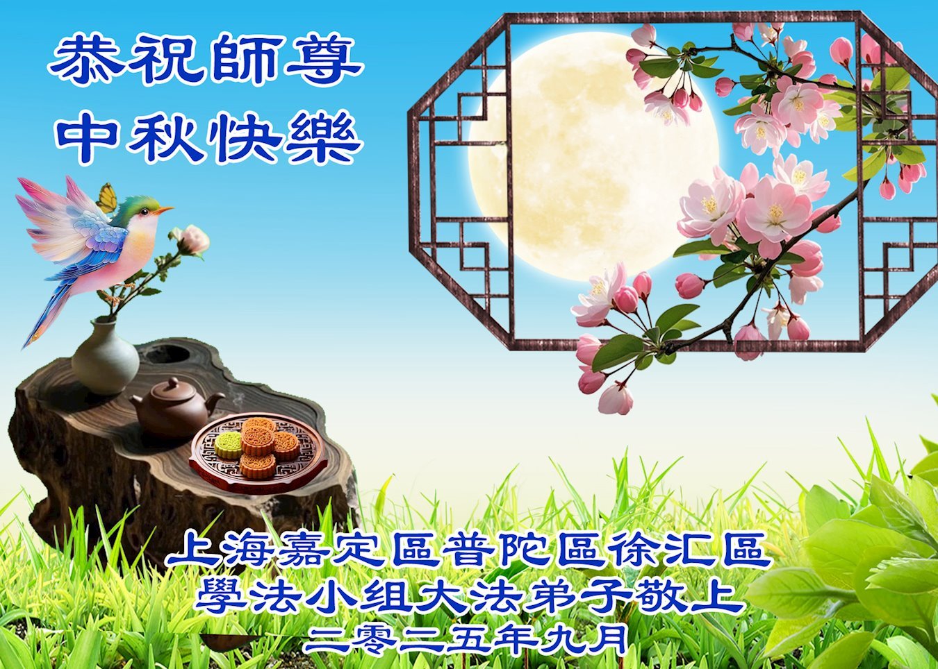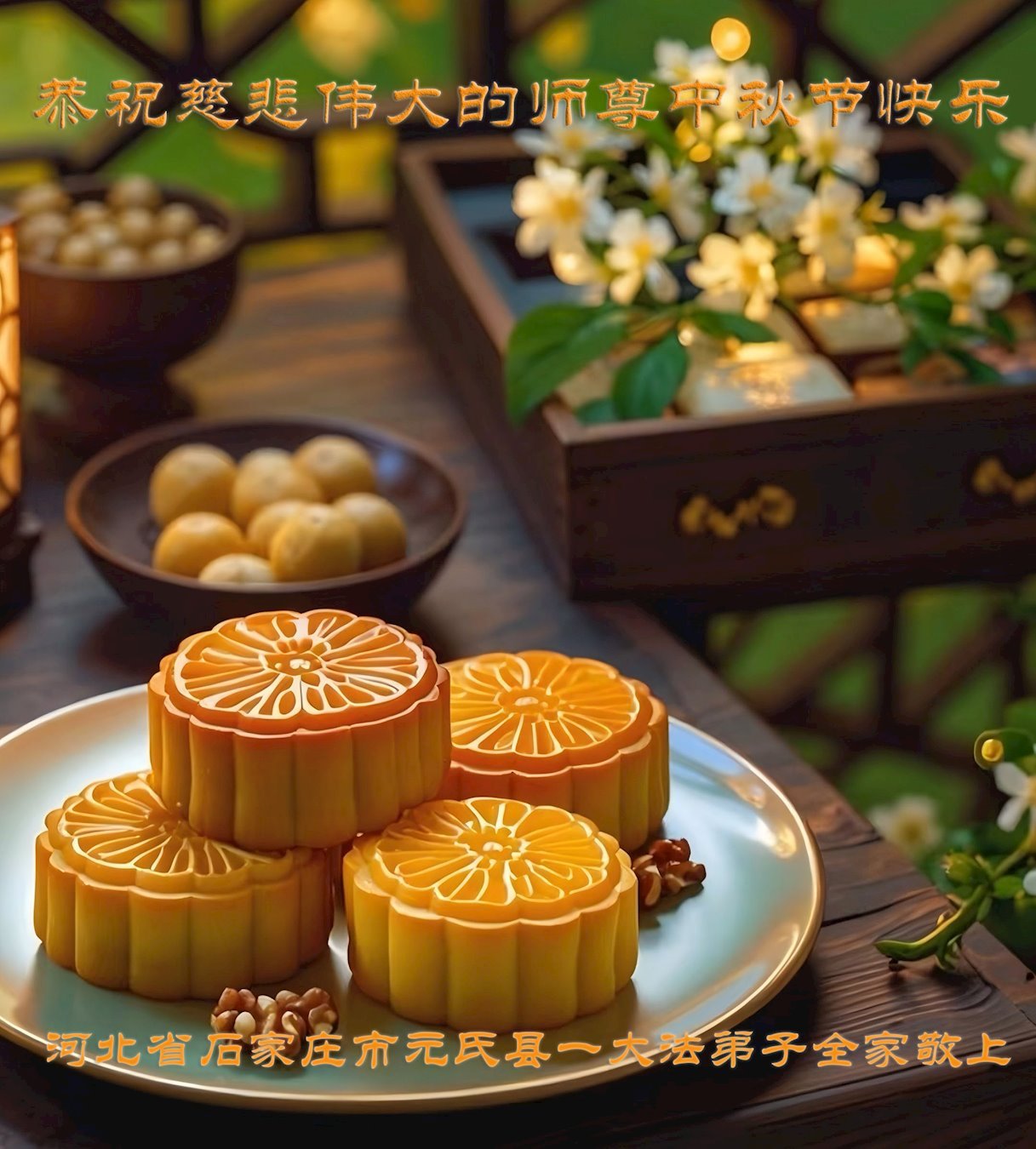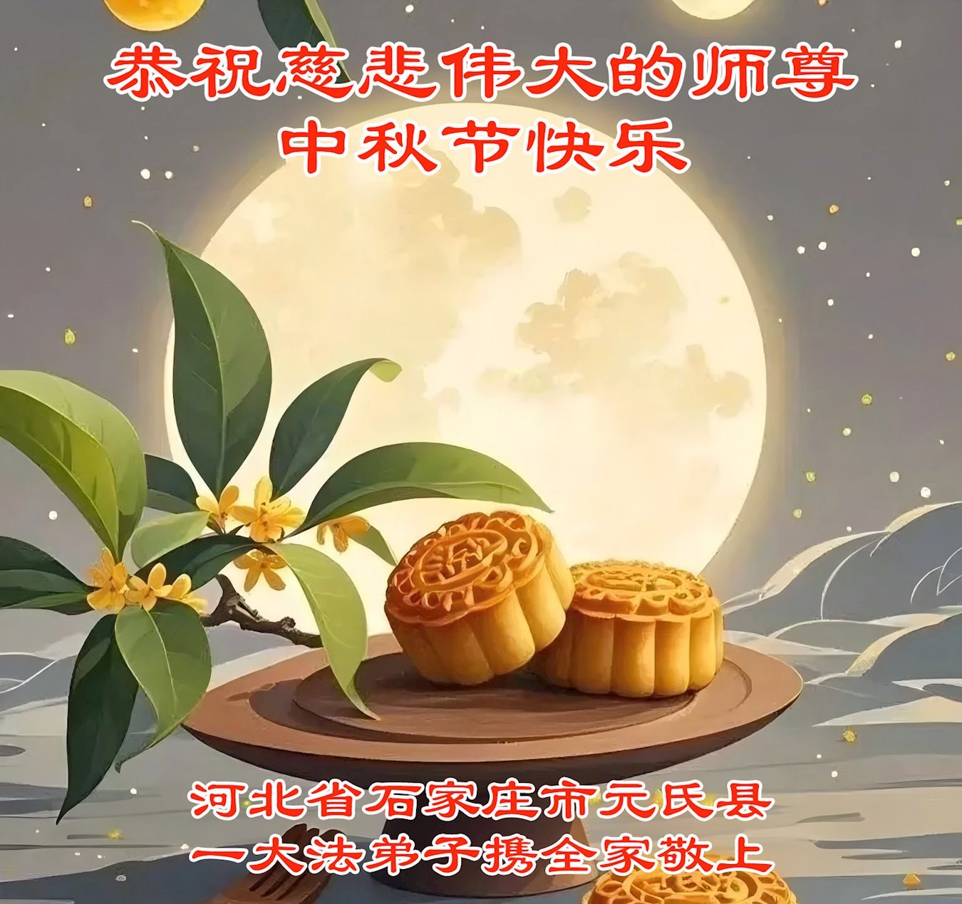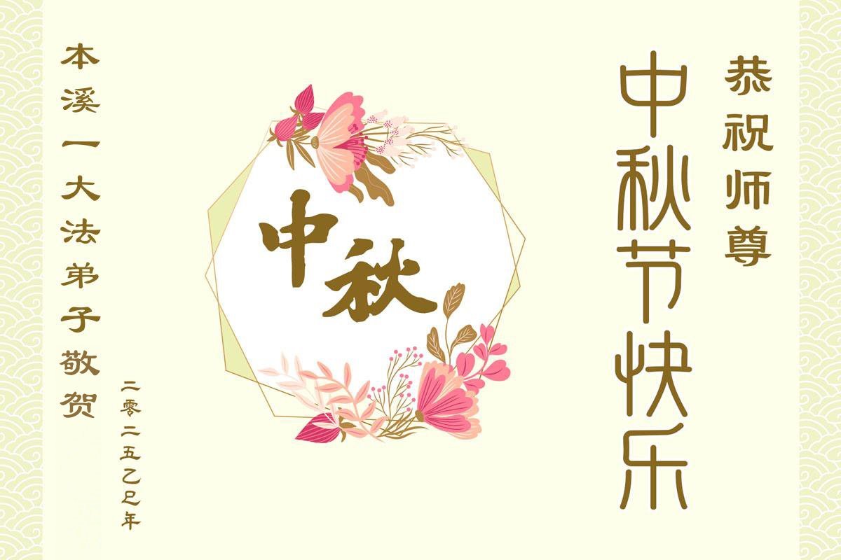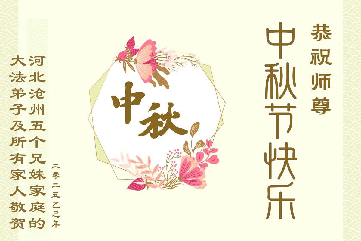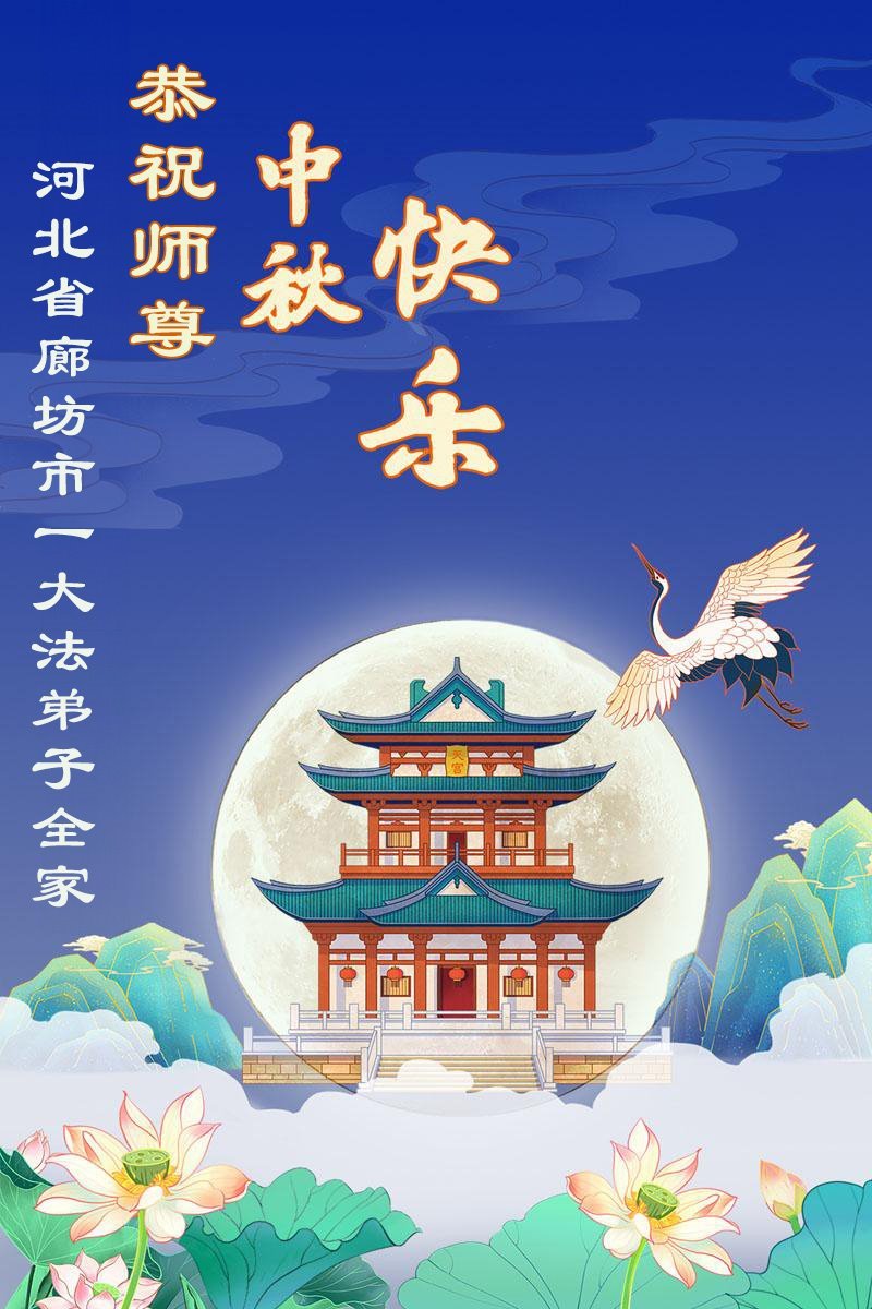 中秋佳節即將到來,在此祝願李大師中秋快樂!願中國人儘早拋棄邪黨,過上真正屬於人類的正常生活。願大法弟子遭受的迫害儘快結束,能夠正常的修煉,從而更好的福益於全社會、全人類。