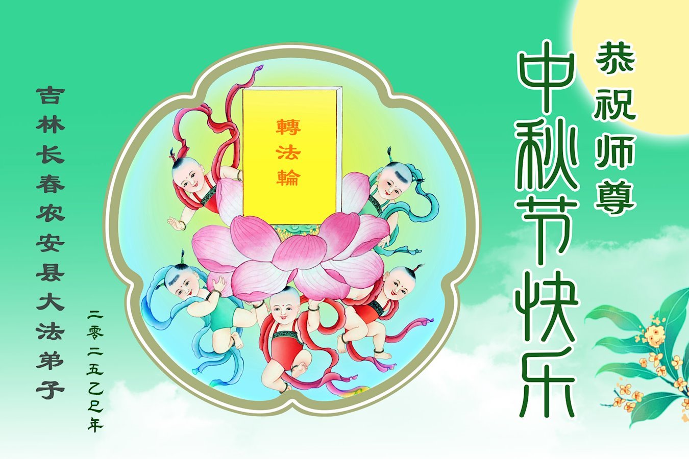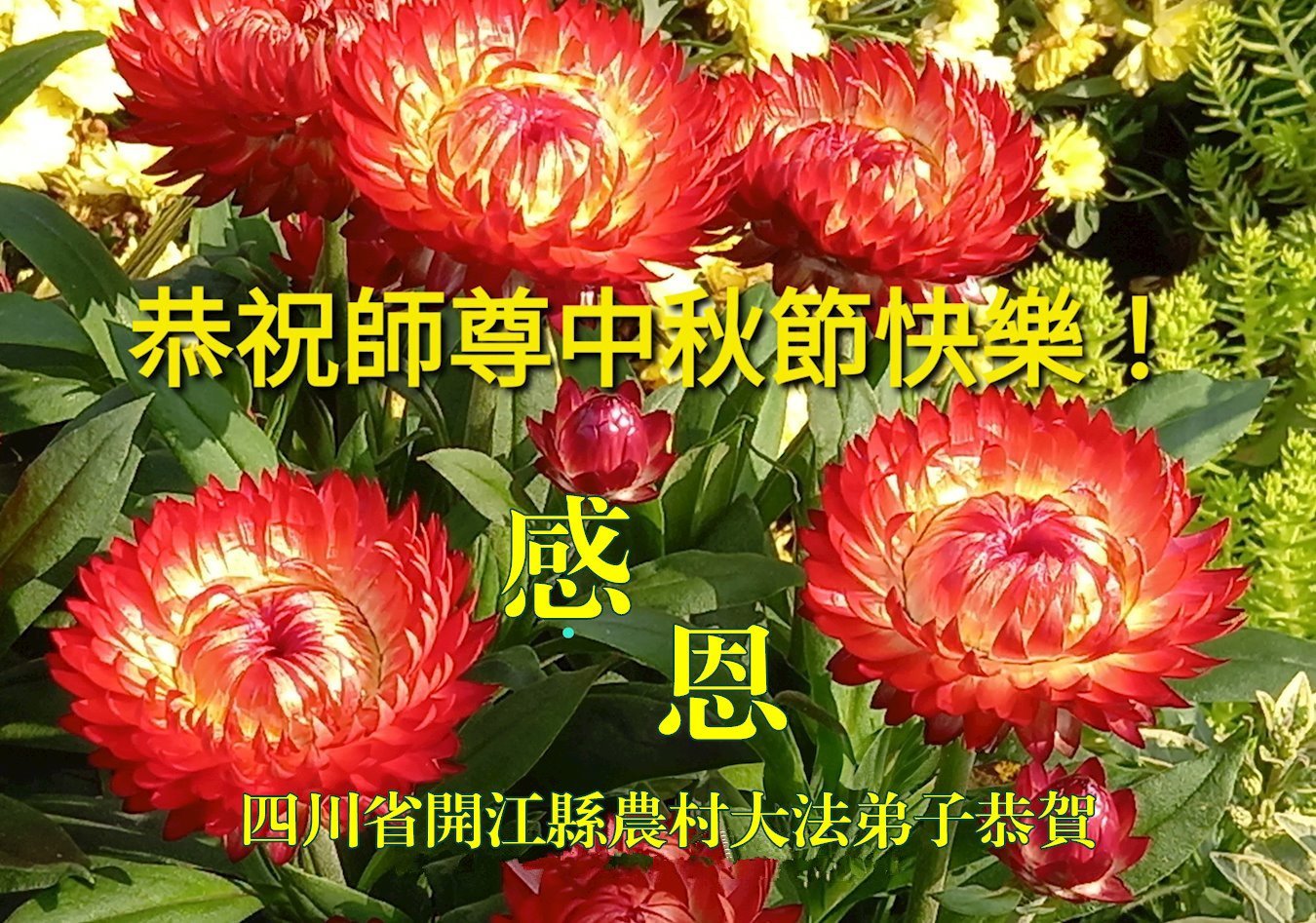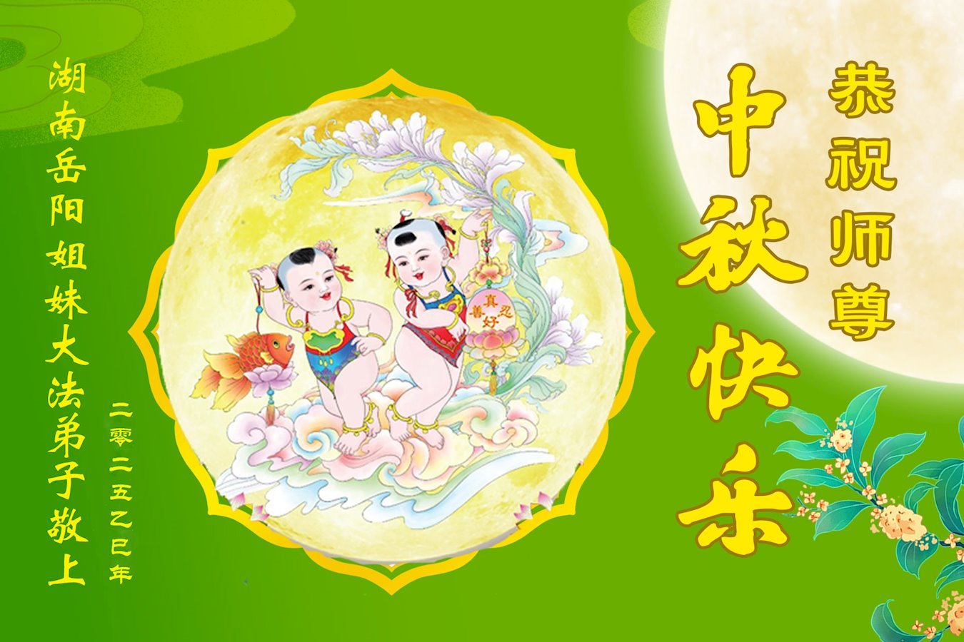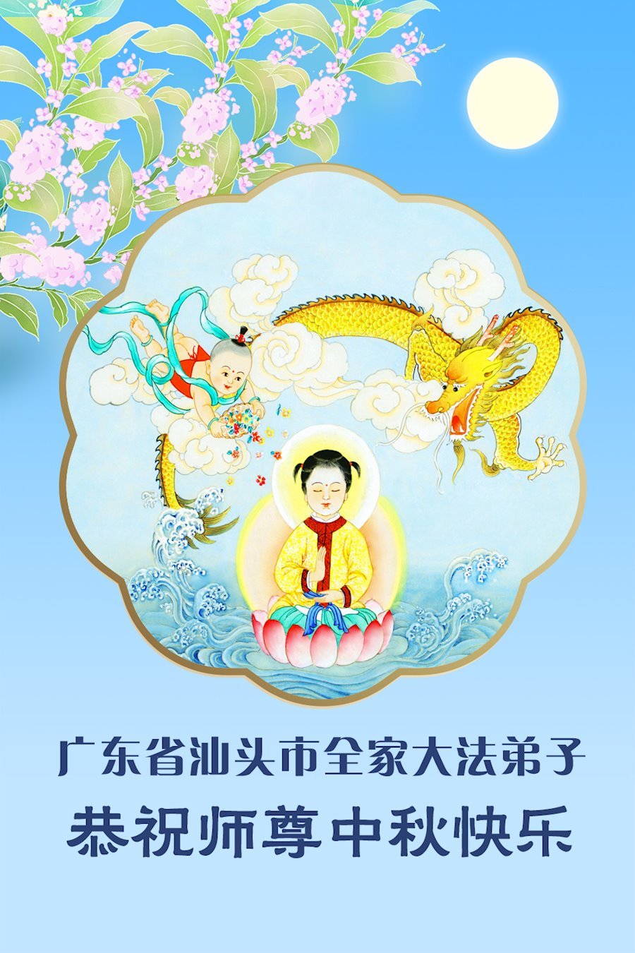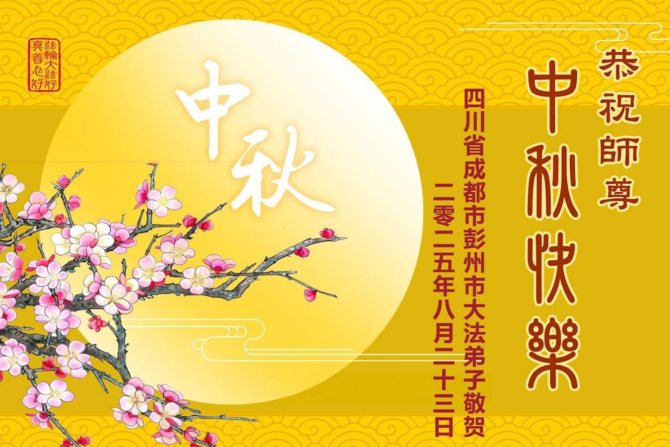 中秋佳節即將到來,在此祝願李大師中秋快樂!願中國人儘早拋棄邪黨,過上真正屬於人類的正常生活。願大法弟子遭受的迫害儘快結束,能夠正常的修煉,從而更好的福益於全社會、全人類。