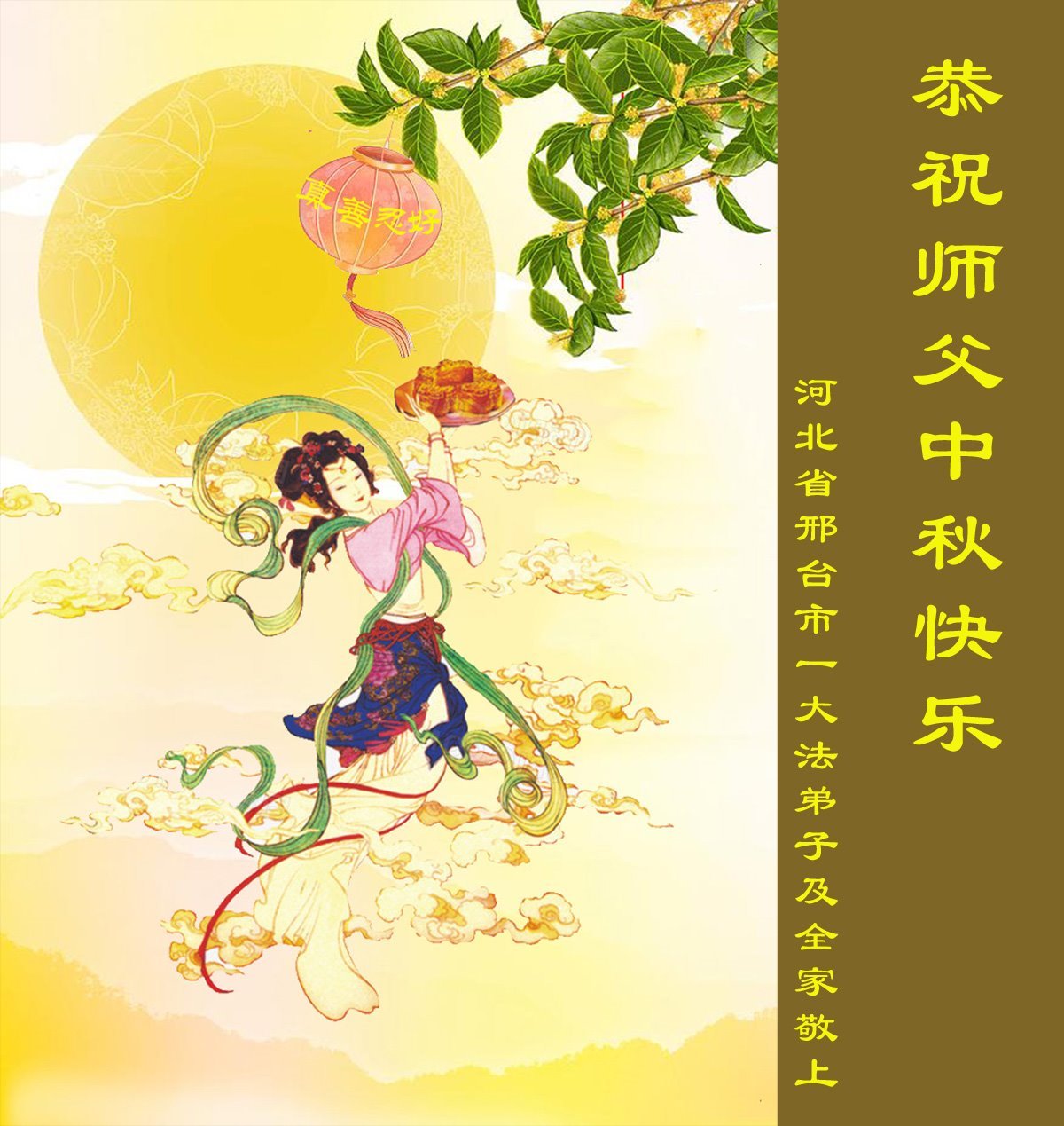 尊敬的師尊您好!弟子們無比想念師尊,在此恭祝師尊中秋節快樂!