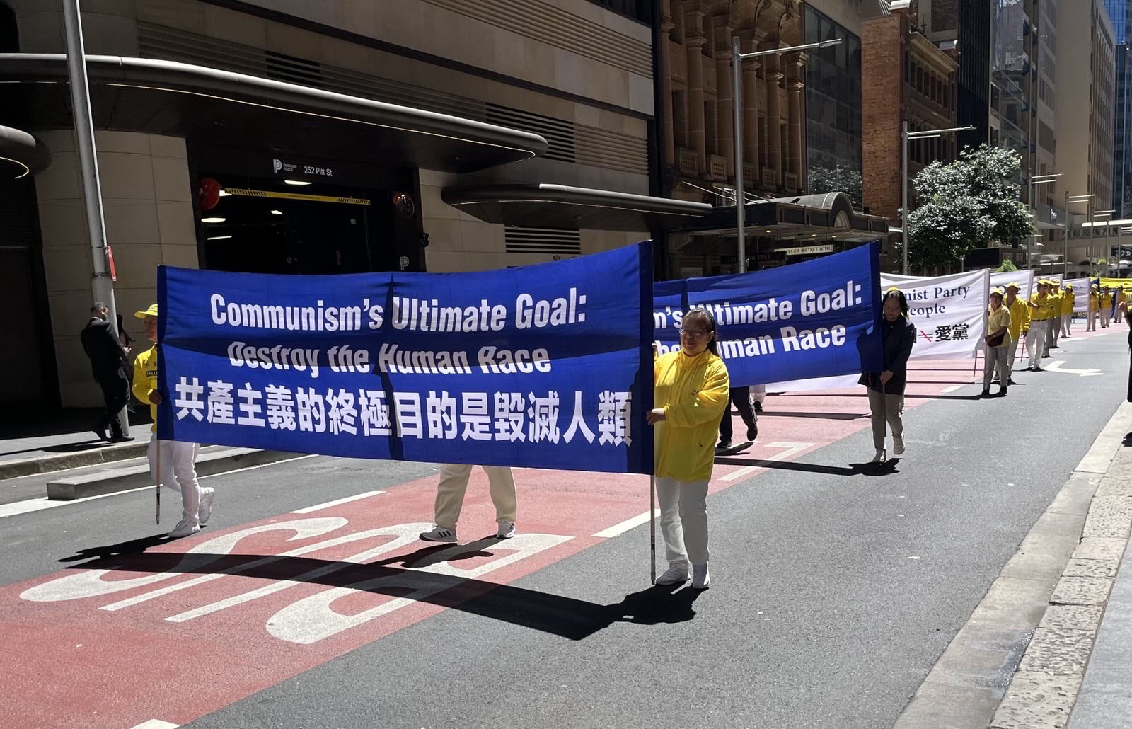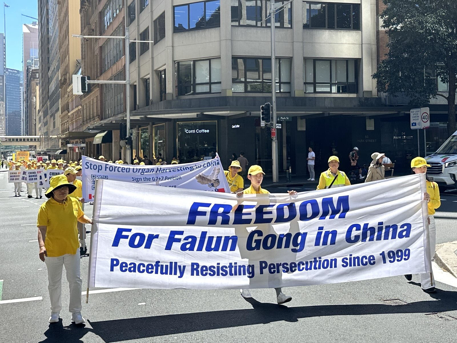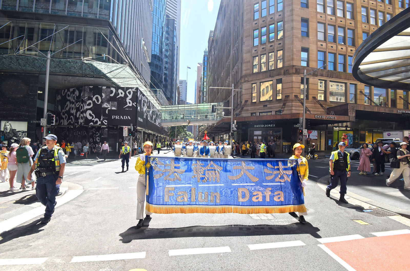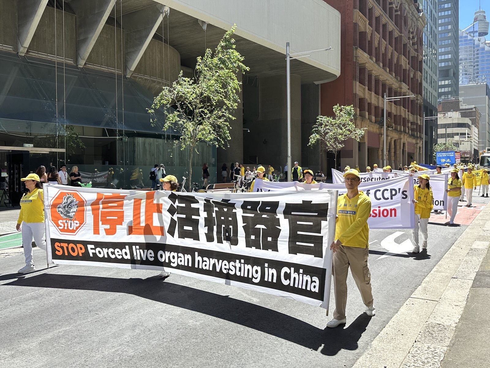 這是為期三天的二零二五年澳洲法輪大法修煉心得交流會的系列活動之一。大遊行的起點是悉尼市中心馬丁廣場(Martin Place),來自各行各業的各族裔法輪功學員通過真相橫幅和彩旗、功法展示以及色彩繽紛的表演,展現了法輪大法修煉人的善良和堅韌。