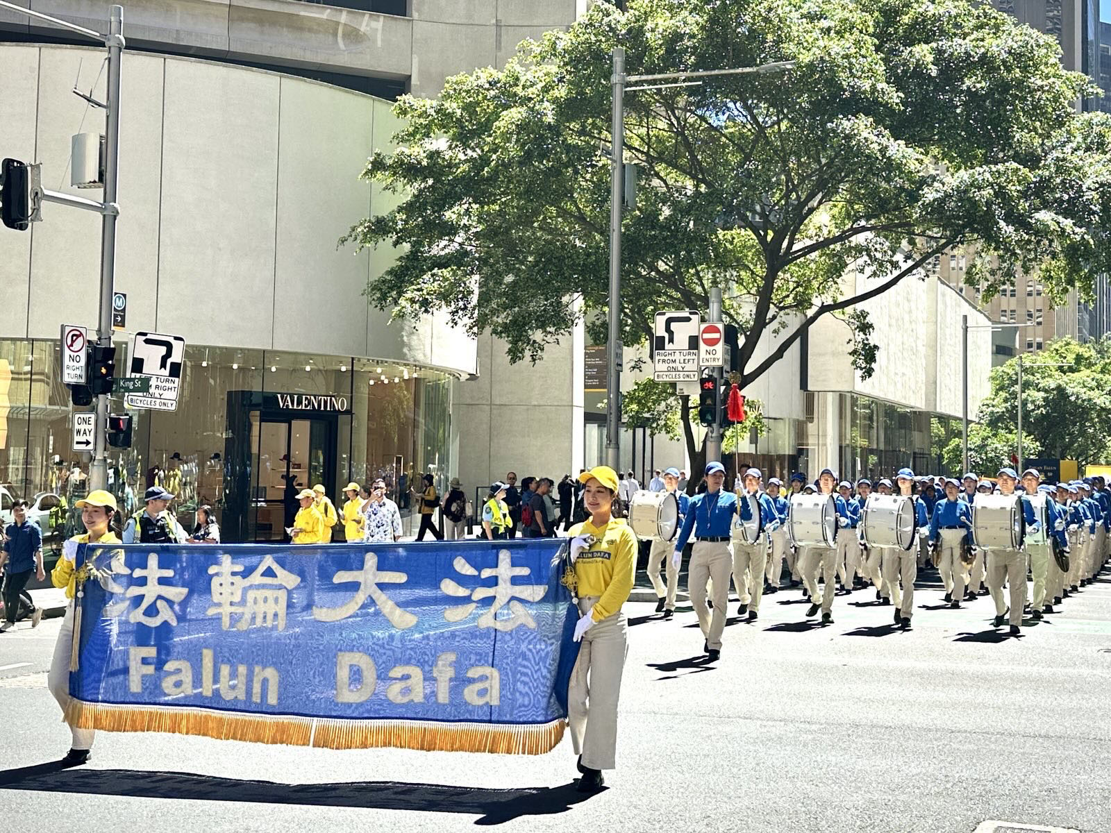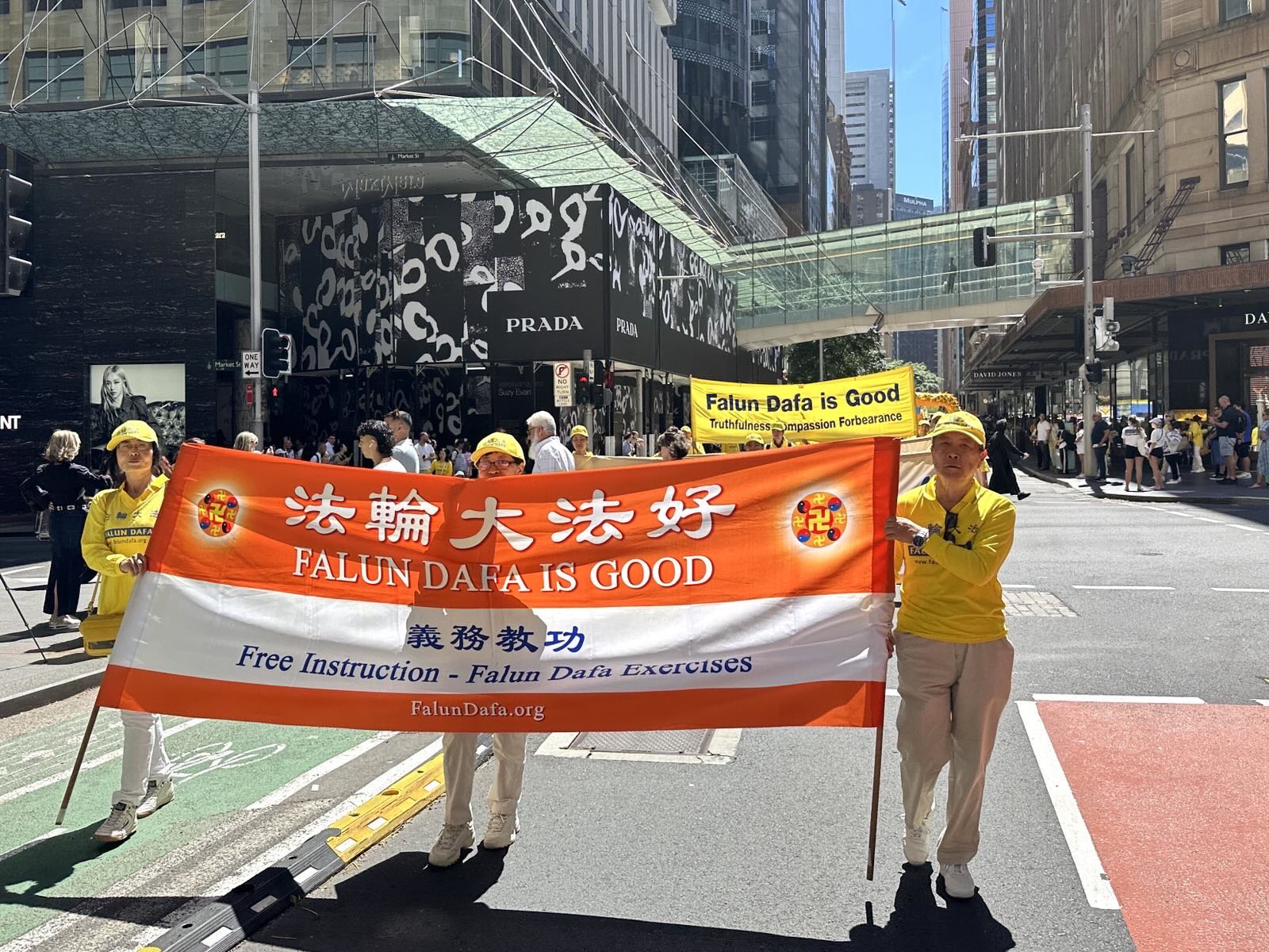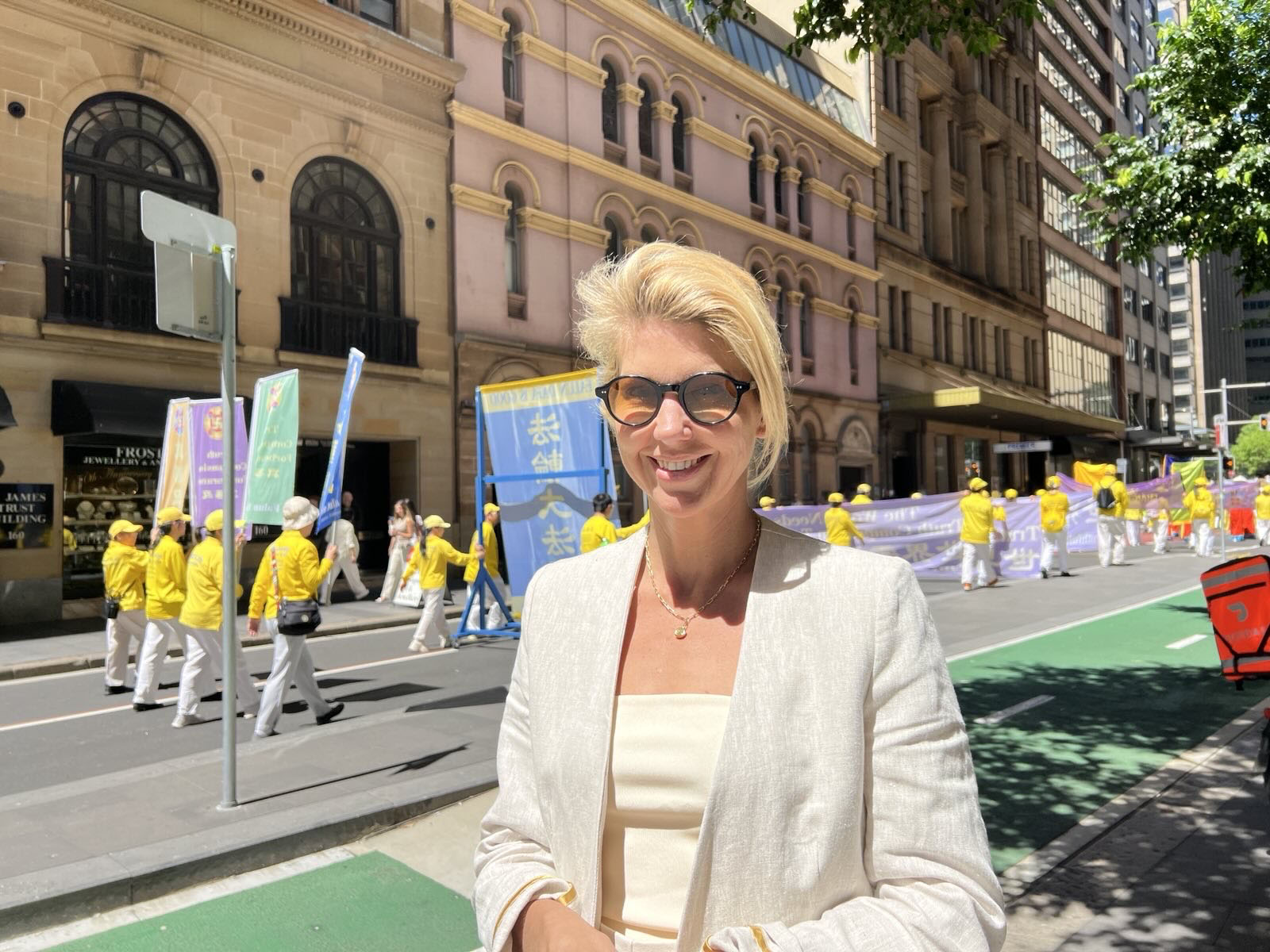 悉尼律師達西・拉金(Darcy Larkin)也讚歎不已:「(法輪功學員的)遊行隊伍太美了!我喜歡他們的音樂,非常平和。明亮的黃色也令人驚豔。」
