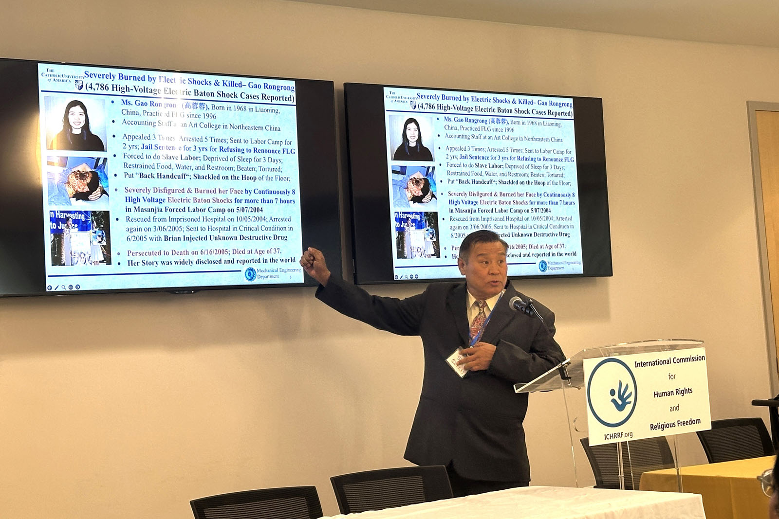 ![]() 圖1:二零二五年十月十日和十一日,國際人權與宗教自由委員會在美國弗吉尼亞州洛頓舉辦了為期兩天的年會。美國天主教大學工程學榮譽退休教授聶森博士在會上講述了在中國持續發生的中共對法輪功學員的迫害。 |