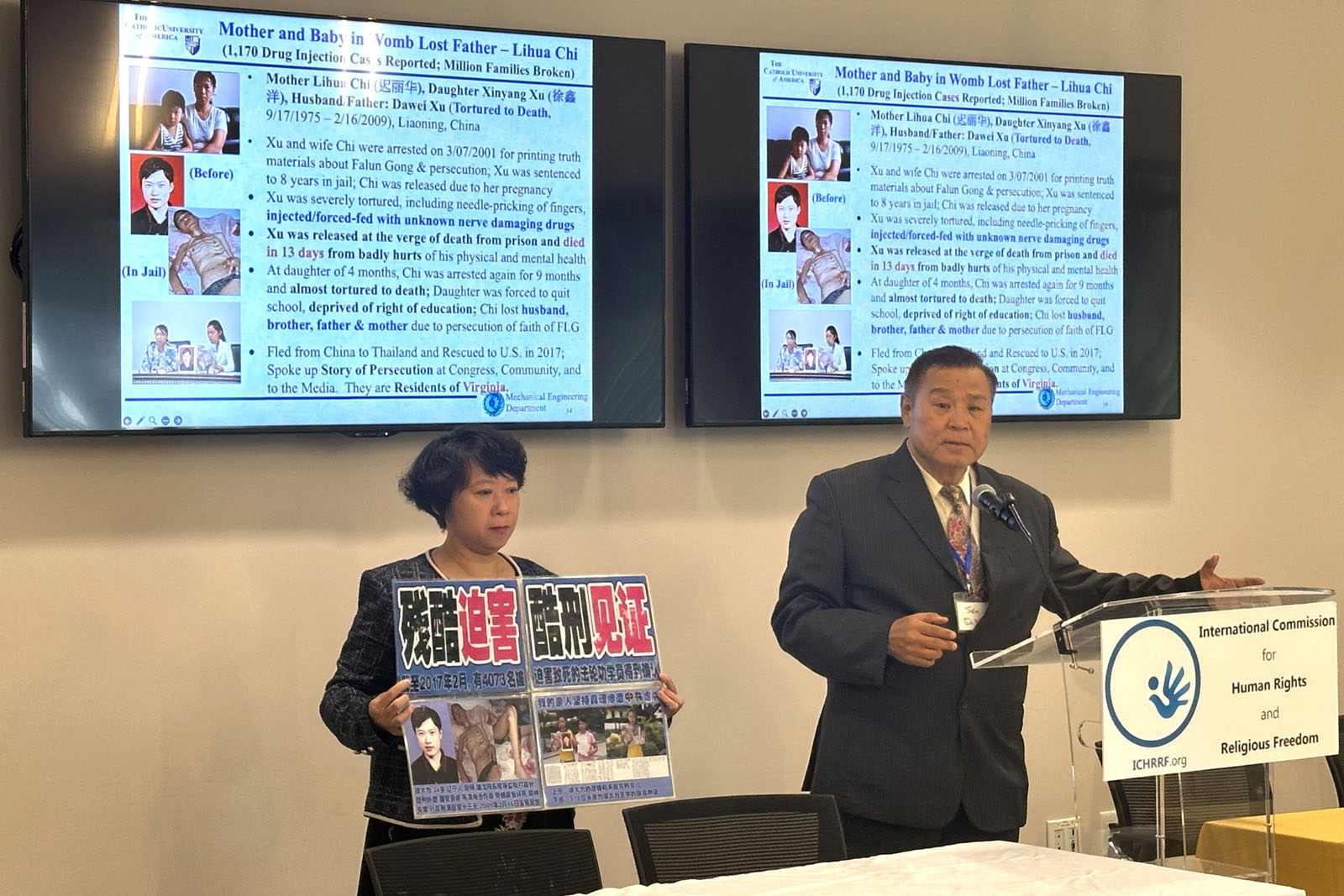 遲麗華來到了研討會現場,她向與會者展示了丈夫徐大為被中共迫害得瘦骨嶙峋、滿身傷痕、奄奄一息的照片。