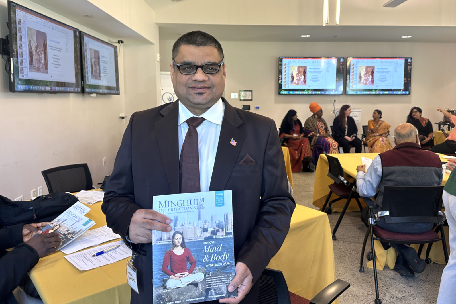安庫什﹒班達裏(Ankush Bhandari)任職於新澤西州的一家IT公司。班達裏說,這是他第一次聽說法輪功及其遭受中共的迫害。他認為:「(真、善、忍)這個信息很好,提升人的精神境界。當你的精神境界提升時,身體也會隨之改善。」
