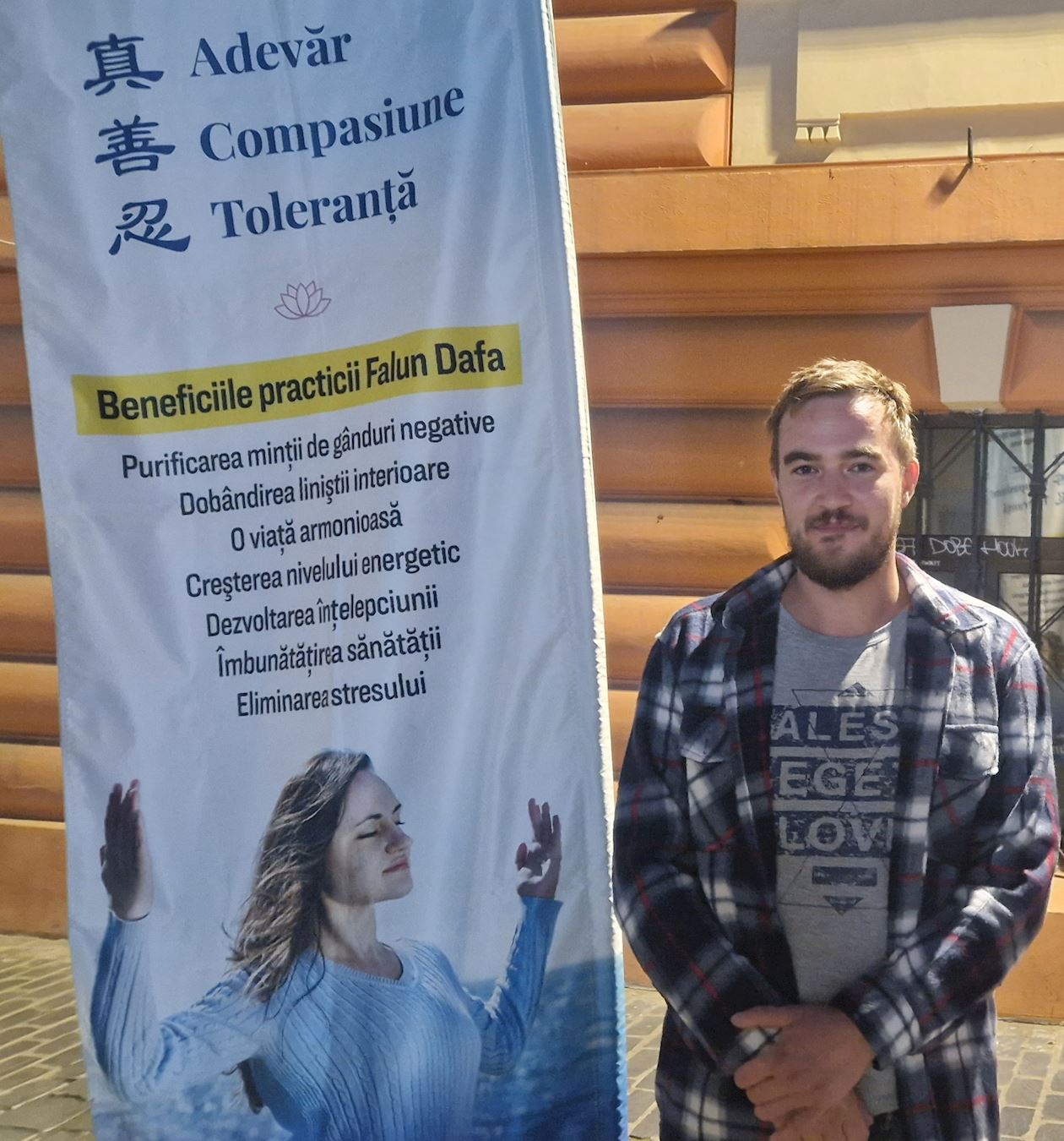一位女士在特爾古穆列什藥科大學(UMFST)路過法輪功展位時,收到了法輪功真相資料。她被法輪大法的道德原則深深打動,並表示這些原則正是人們所需要的。