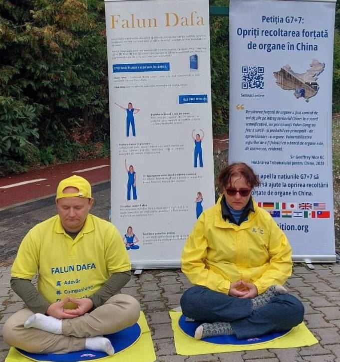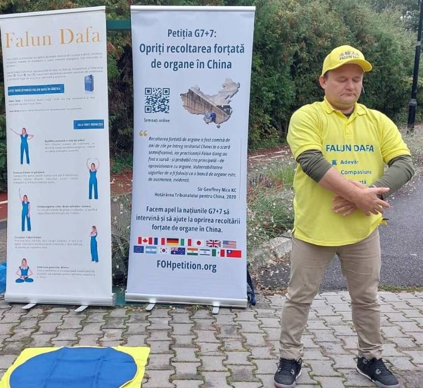特爾古穆列什(Târgu Mureș)醫學院的學生來自全國各地及歐洲,也有許多來自亞洲、阿拉伯國家和非洲的學生。一次,一位外國學生拿了一份包含G7+7請願書的傳單,立刻閱讀了內容。傳單有羅馬尼亞語、英語和匈牙利語版本。她認真看著展板、面帶笑容的法輪功學員們,以及正在煉功的學員。然後她走向一位學員,鼓勵說:「別擔心!一切都會好起來的!」