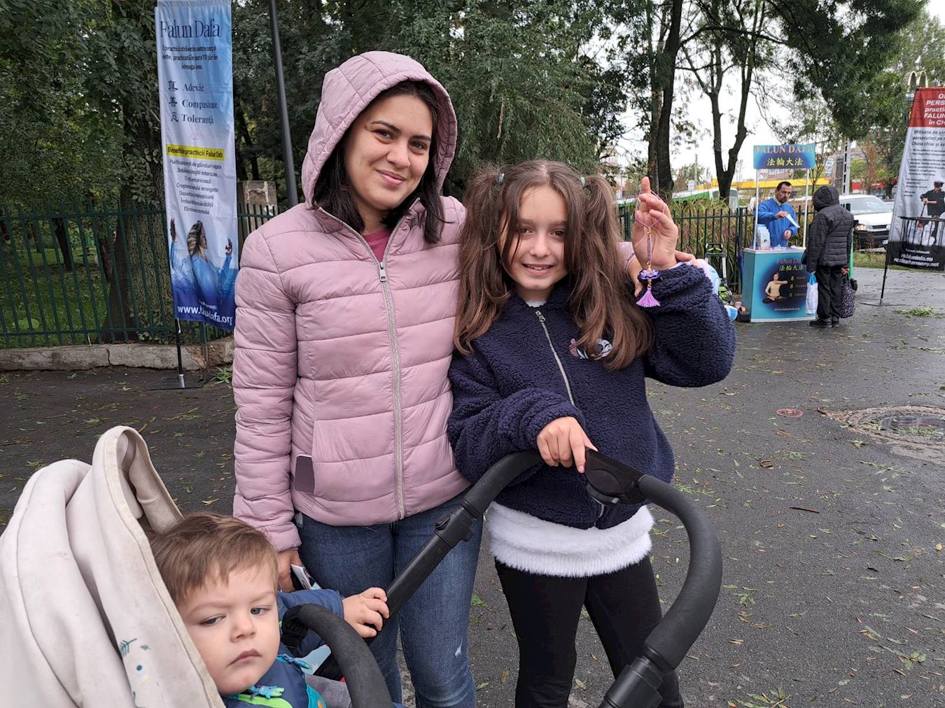 三十五歲的克拉裏西婭(Clarisia)說,我們在做任何事時都需要這些原則。「我們需要善良。現在的人太缺乏耐心了,尤其是對孩子。」當時,克拉裏西婭正帶著兩個孩子散步。她的小女兒索菲亞(Sofia)收到一朵蓮花時非常開心,當一位法輪功學員向她講解真、善、忍的原則時,她也能聽懂並接受。