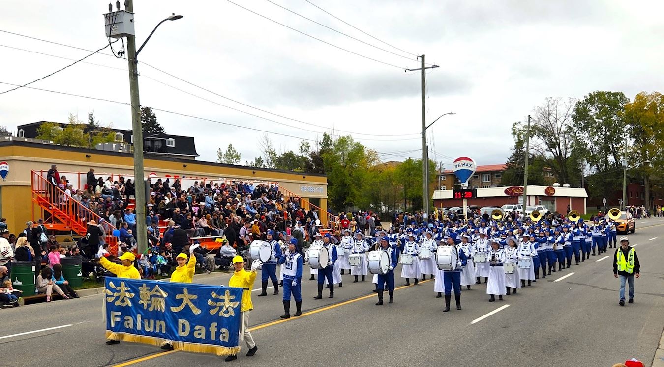 由法輪功學員組成的天國樂團再一次作為壓軸節目出場,十月的陽光,秋風伴著法鼓法號聲。樂團在排練時,已有路人為他們拍照、錄像;還有華人表示很喜歡樂團成員的傳統服飾,並為他們拍照,學員還向他介紹了這是法輪功學員組成的樂團。