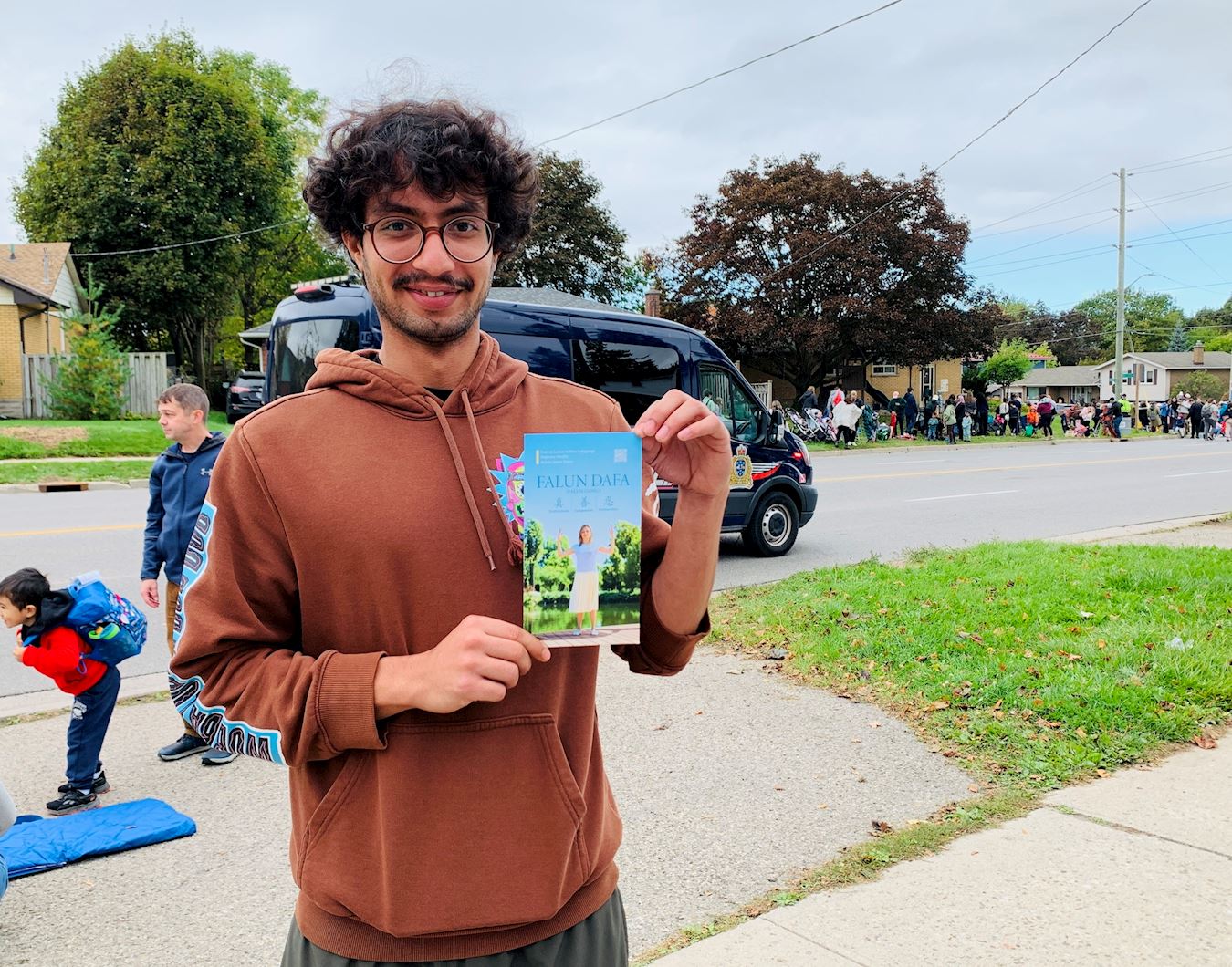 托尼(Tony)是當地的居民,他和家人一起來觀看感恩節遊行,當天國樂團的隊伍經過時,他們一家人都為其鼓掌。托尼表示:「這個樂團太棒了!毫無疑問,排名第一,是這次遊行中排名第一的樂隊。」隨後,學員向他介紹了這個樂團的成員都是法輪功修煉者,他便詢問學員法輪功是在哪裏,學員告訴他現在已洪傳全世界,並向他介紹了法輪功是按「真、善、忍」修煉,還向他推薦了網上教功網站。托尼表示贊同,接過傳單後,表示感謝。