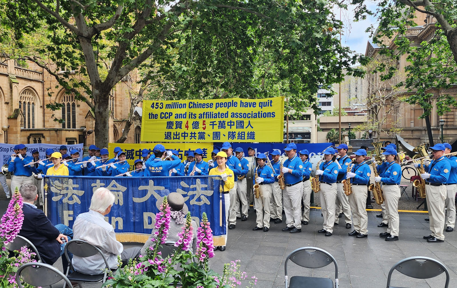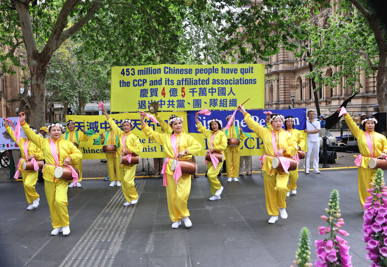 ![]() 圖1:二零二五年九月二十八日,悉尼各界在市政廳集會,歡慶華人「三退」突破4.5億,嘹亮而震撼人心的天國樂團鼓樂聲為集會拉開帷幕。 |