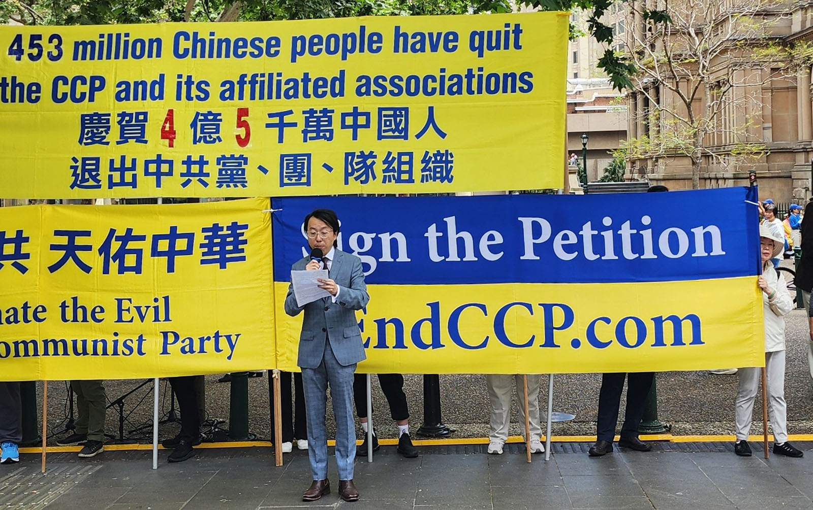 前帕拉瑪塔(Parramatta)選區聯邦選舉候選人和企業家加內什‧洛克(Ganesh Loke)在集會表示:「4.5億人退出中共的浪潮正在加速,顯示民心覺醒的勢不可擋。洛克呼籲澳洲總理公開譴責中共,認可法輪功學員的貢獻,並正視中共正在公開扼殺言論自由與殺戮人民的罪行。」