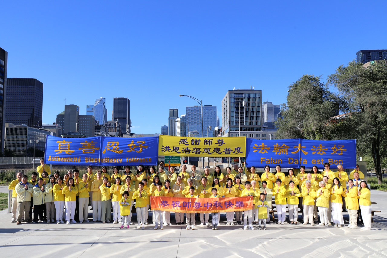 ![]() 圖1:加拿大蒙特利爾法輪功學員恭祝李洪志大師中秋節快樂。 |