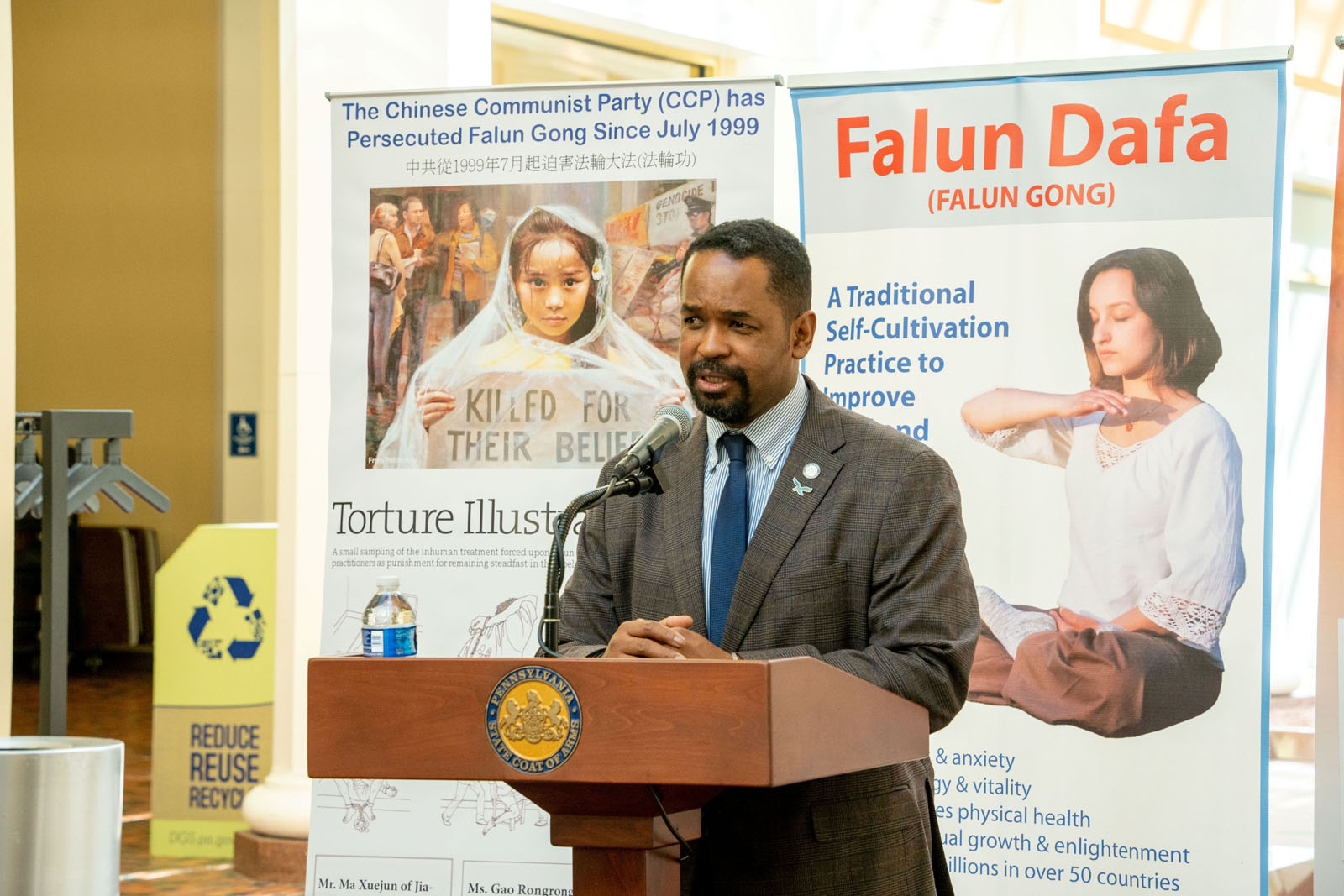 ![]() 圖3:在賓州議會大廈舉行的法輪大法真相日新聞發布會上,賓州參議員斯特裏特譴責中共迫害法輪功。 |