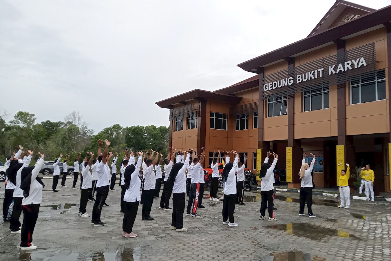 ![]() 圖5~6:印尼卡裏蒙縣公共秩序局官員參加集體煉功 。 |
