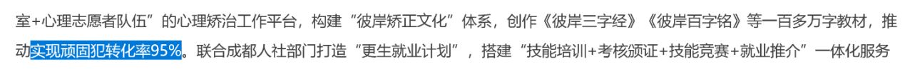 (網頁截屏:中共司法部網站記載四川省成都女子監獄所謂「實現頑固犯轉化率」的文字)