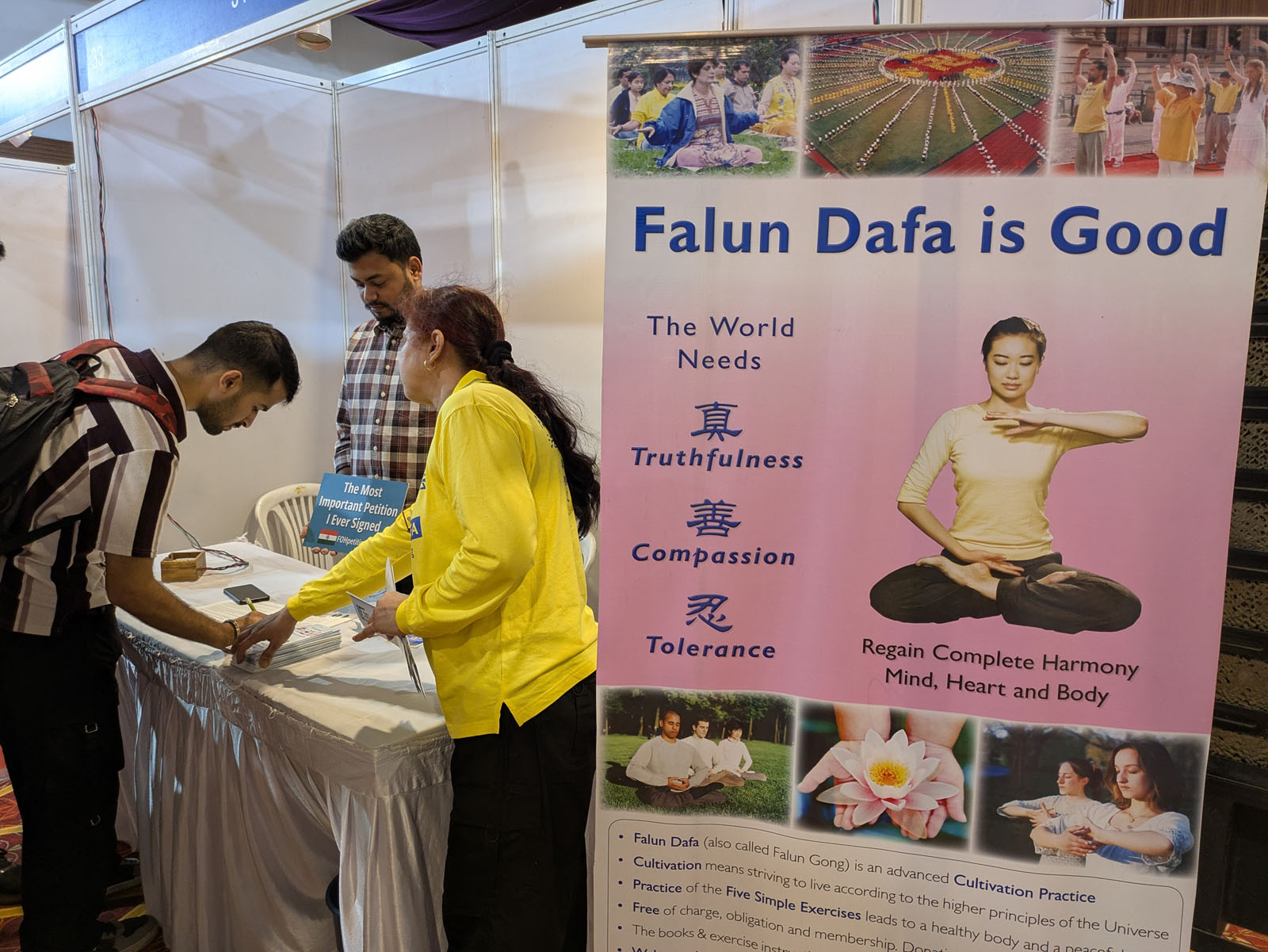 十位來自浦那的法輪功學員參加了書展,並在書展上設立了專門展位,介紹法輪大法。同時,學員們也向參觀者徵集 「反強摘器官醫生組織」的請願書簽名,許多參觀者在了解到中共強摘器官的真相後都非常震驚,並積極支持這一請願行動。