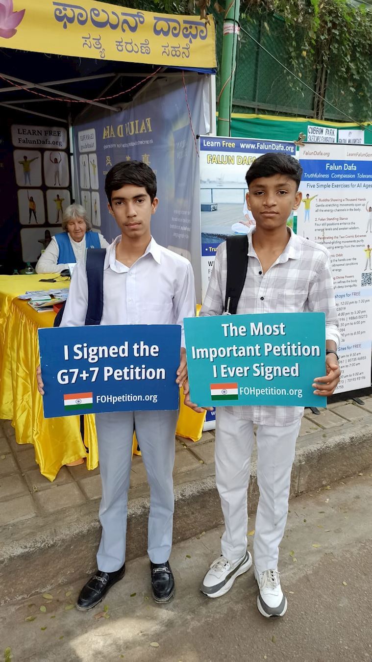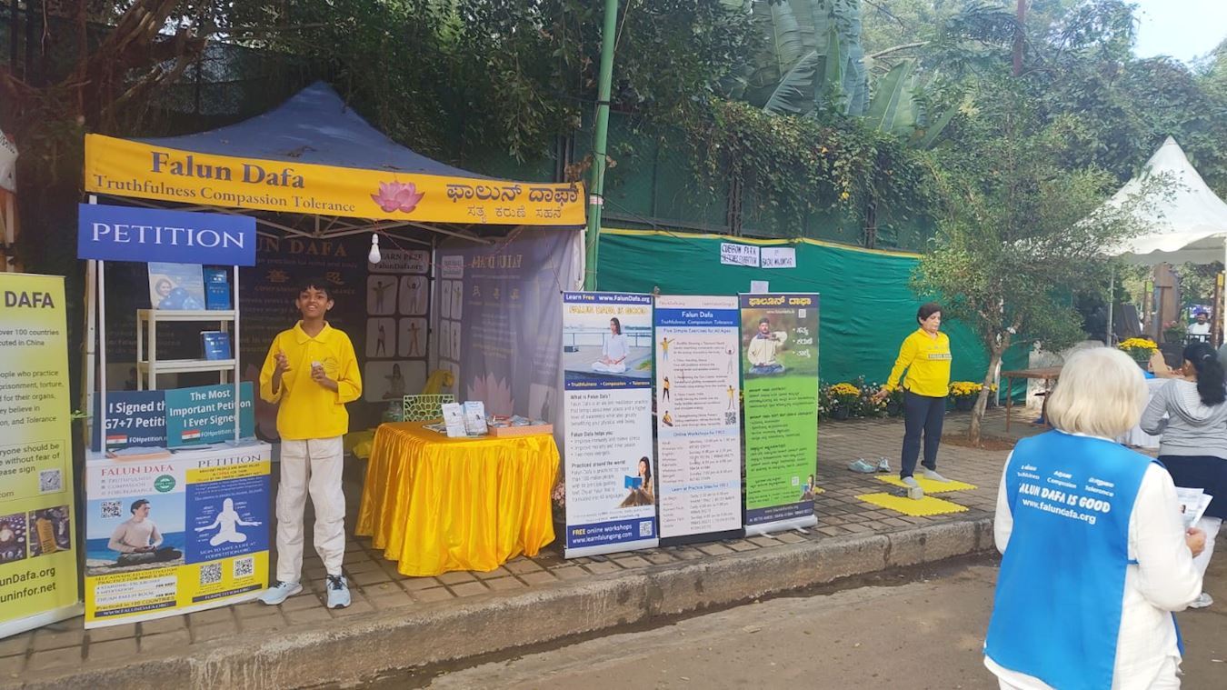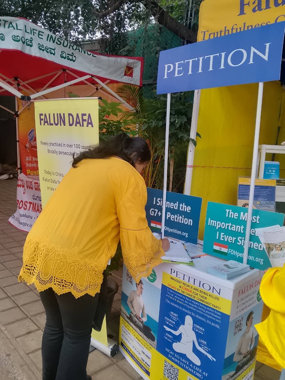 桑托什(Santhosh)在法輪功學員的展位前停下了腳步,他肯定了學員們的做法,認為很有意義。他說:「你們所做的是偉大的善舉。」他對學員們所秉持的高尚的道德標準表示敬佩。
