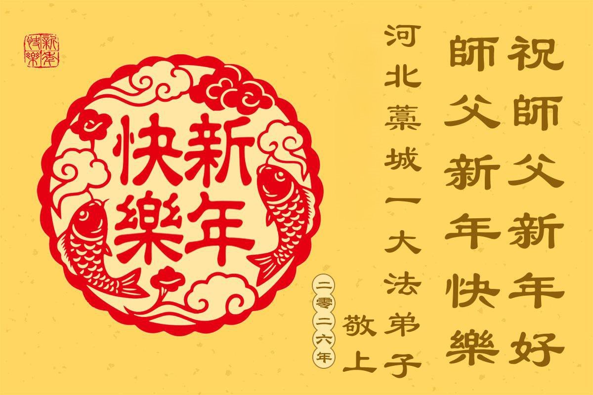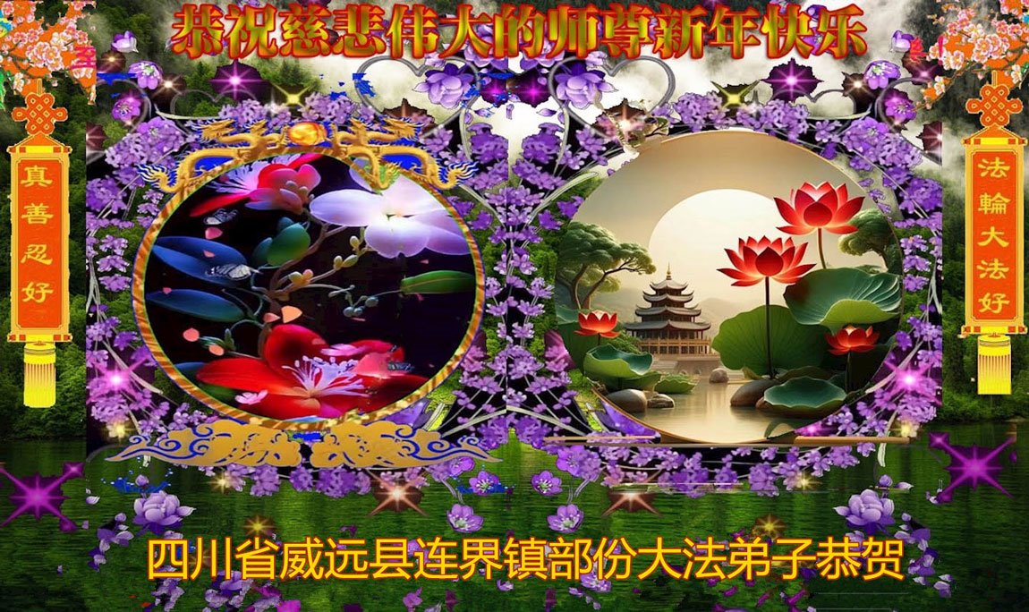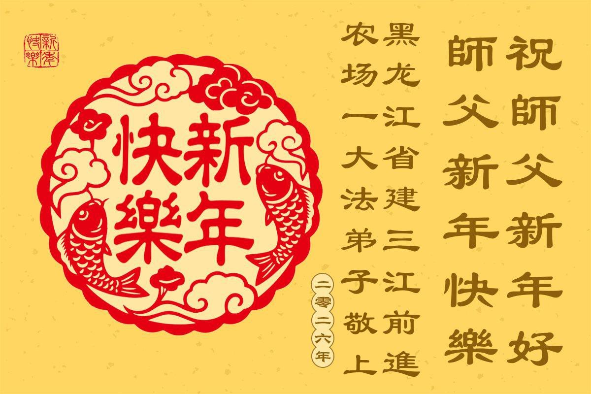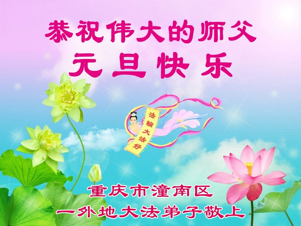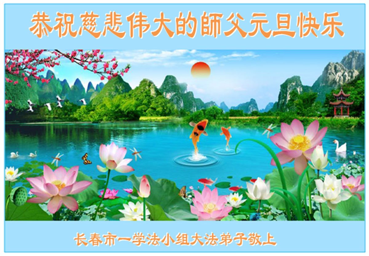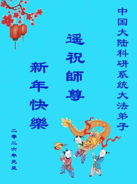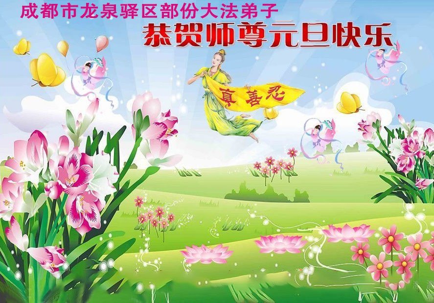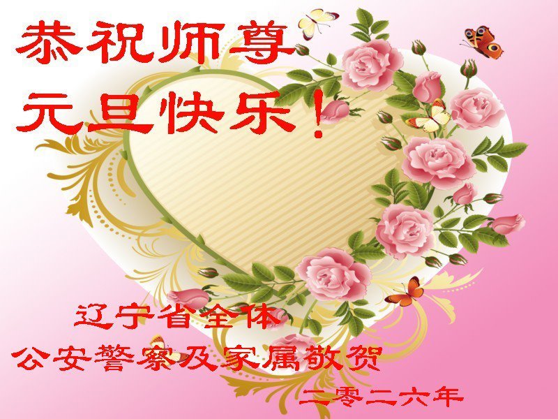 下面是部份來自建材、文藝界、教育、黃金、水利、橋樑、衛生、油田、石化、絲綢、維修、燃氣、船舶、音樂界、金融、鐵路、高校、外貿、商業、交通、醫藥、科研、銀行、會計師、林業、企業(管理)、農場、農墾、機車、供銷、人力資源、地勘、文教、建築、通訊、紡織、服務、環境藝術、軍工、電力、航天、電商、遊樂、電子技術研究、稅務、煤炭、郵政、航空、公用事業、財務、礦山、圖書館、工商界、出版、私營經營、房地產、招商、海關、自動化儀表、公安、檢察院、法院、司法、行政部門、軍隊等60餘行業大法弟子敬獻李洪志師父的新年問候。