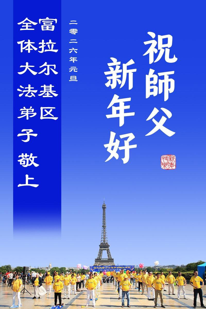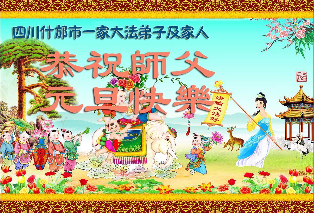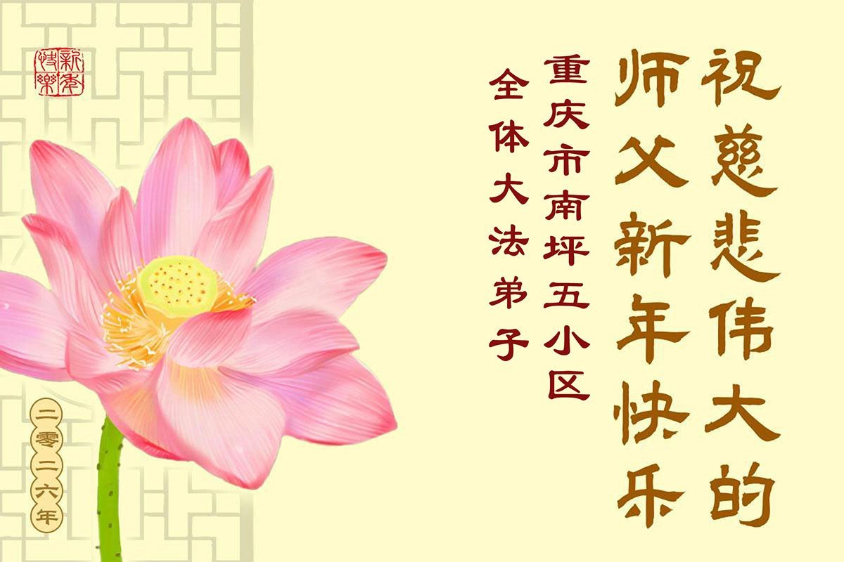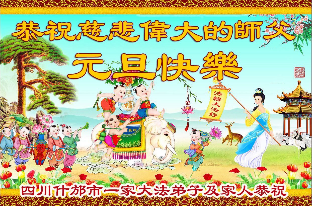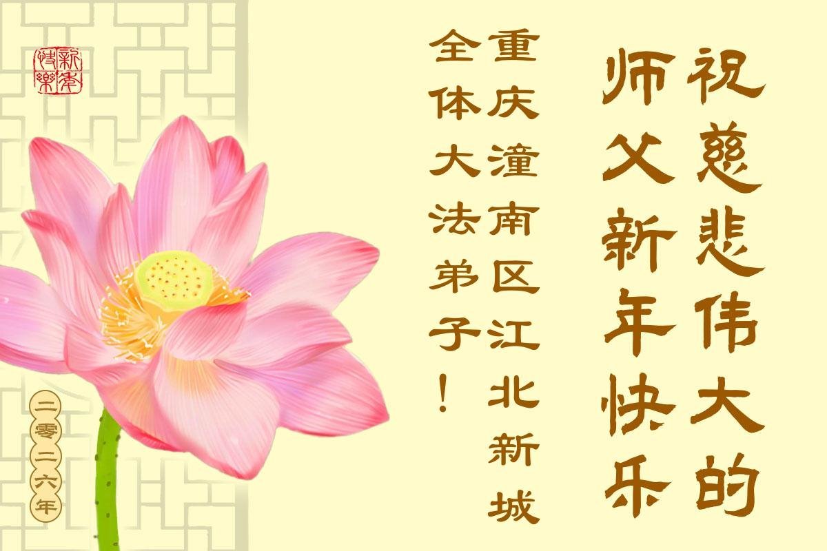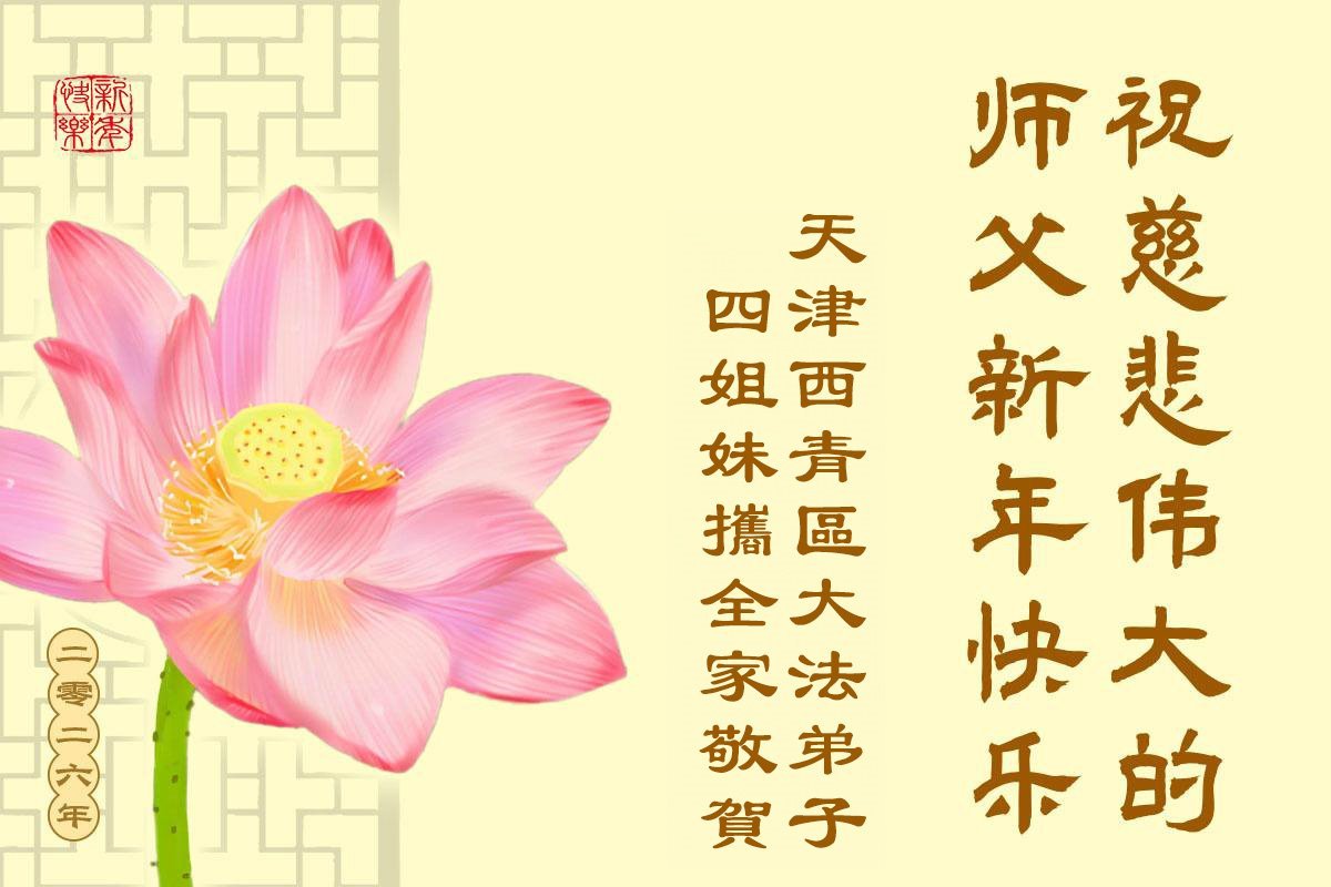 下面是部份來自建材、文藝界、教育、黃金、水利、橋樑、衛生、油田、石化、絲綢、維修、燃氣、船舶、音樂界、金融、鐵路、高校、外貿、商業、交通、醫藥、科研、銀行、會計師、林業、企業(管理)、農場、農墾、機車、供銷、人力資源、地勘、文教、建築、通訊、紡織、服務、環境藝術、軍工、電力、航天、電商、遊樂、電子技術研究、稅務、煤炭、郵政、航空、公用事業、財務、礦山、圖書館、工商界、出版、私營經營、房地產、招商、海關、自動化儀表、公安、檢察院、法院、司法、行政部門、軍隊等60餘行業大法弟子敬獻李洪志師父的新年問候。