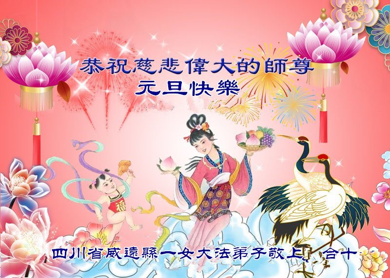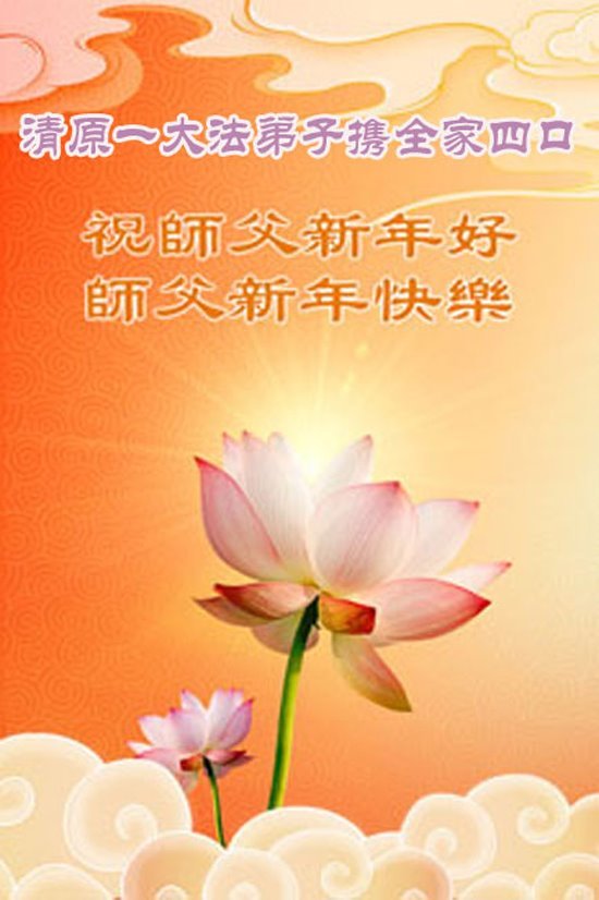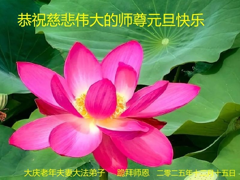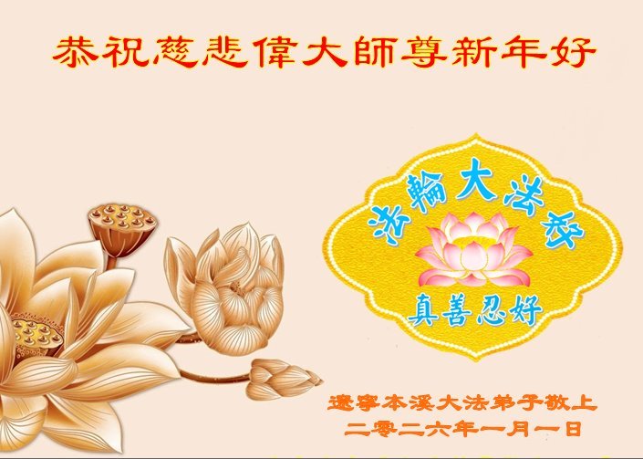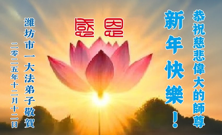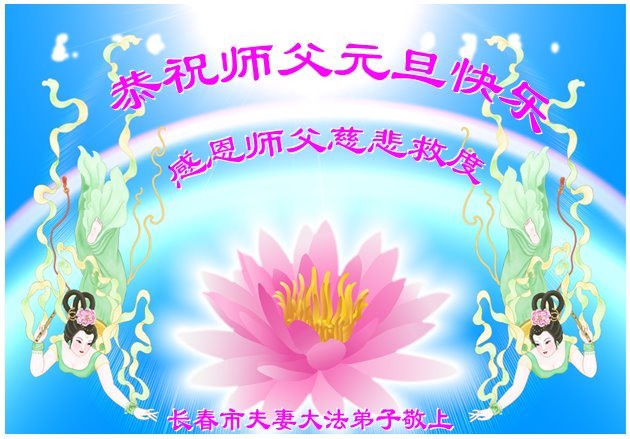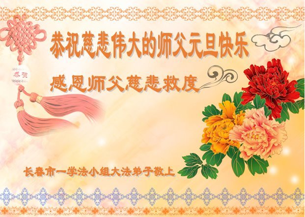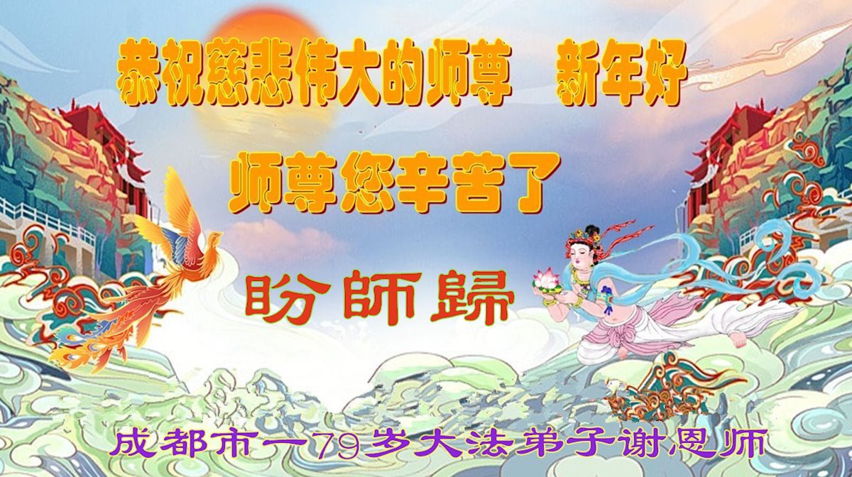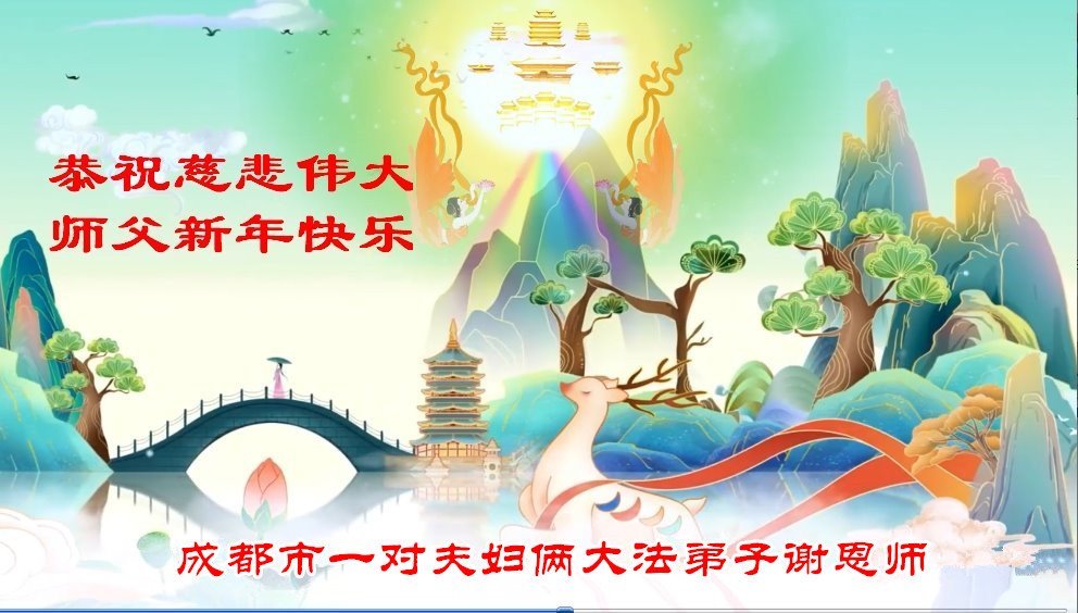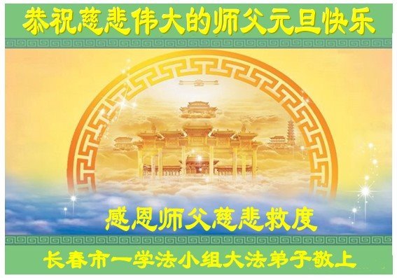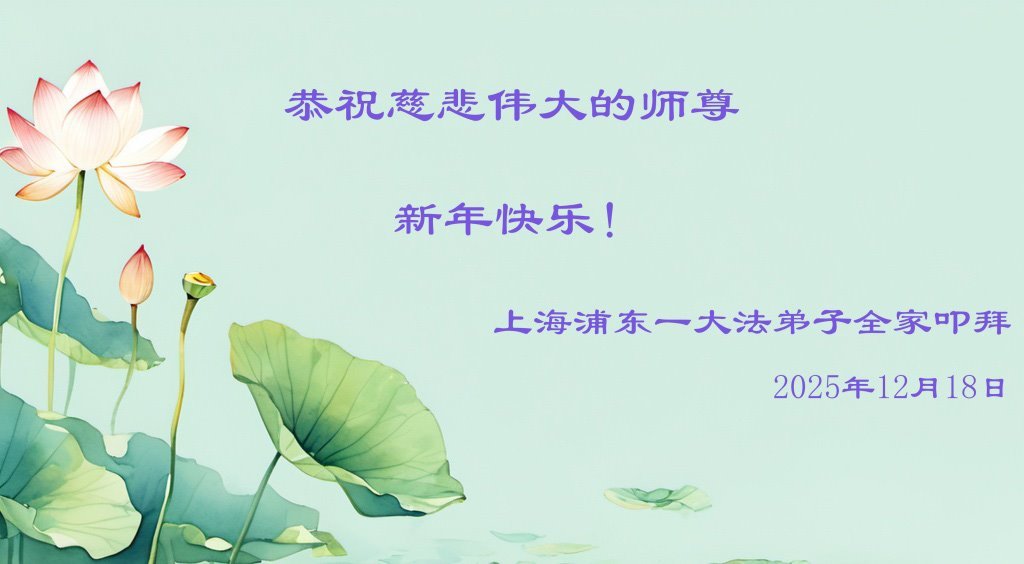 無量慈悲偉大的師尊您好,您辛苦啦!新的一年到來之際,弟子們感恩師尊的慈悲保護與救度,也替得救的世人轉達對師尊慈悲救度的無限感恩!在師尊用巨大的承受與付出所延續來的不多的時日裏,弟子們一定珍惜時間,多學法,同化法,互相配合好形成整體做好三件事,多救世人,不辜負師尊的慈悲苦度!