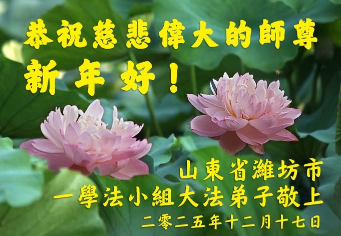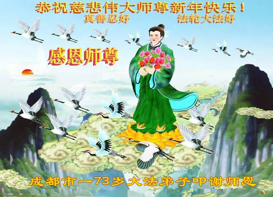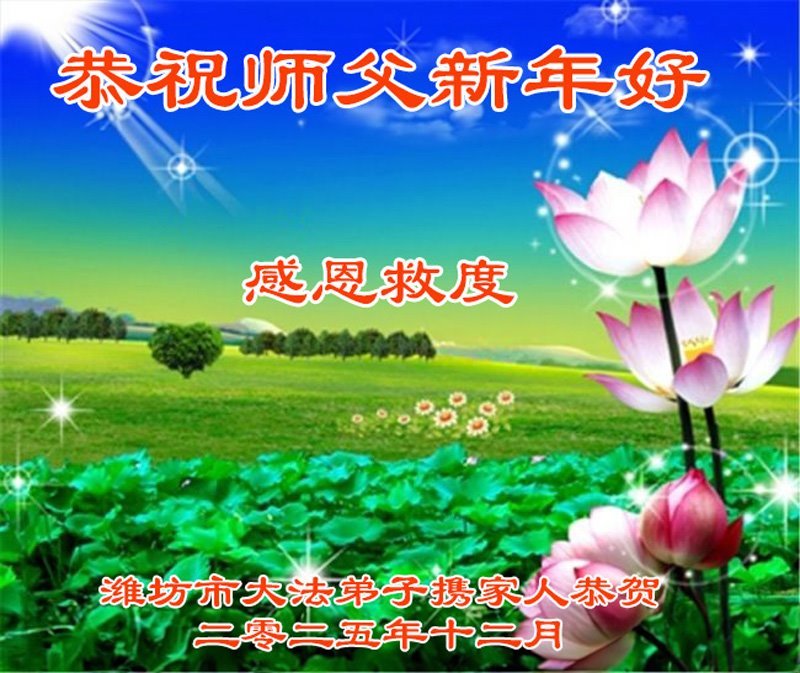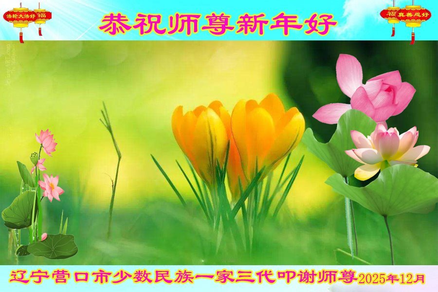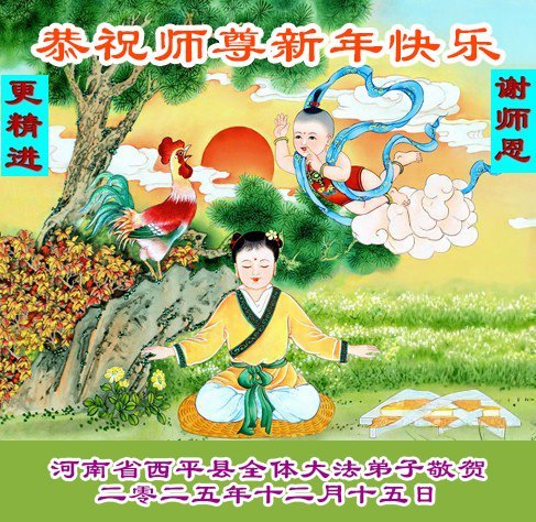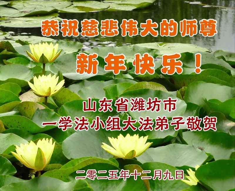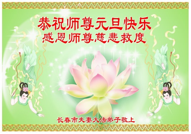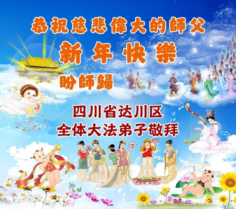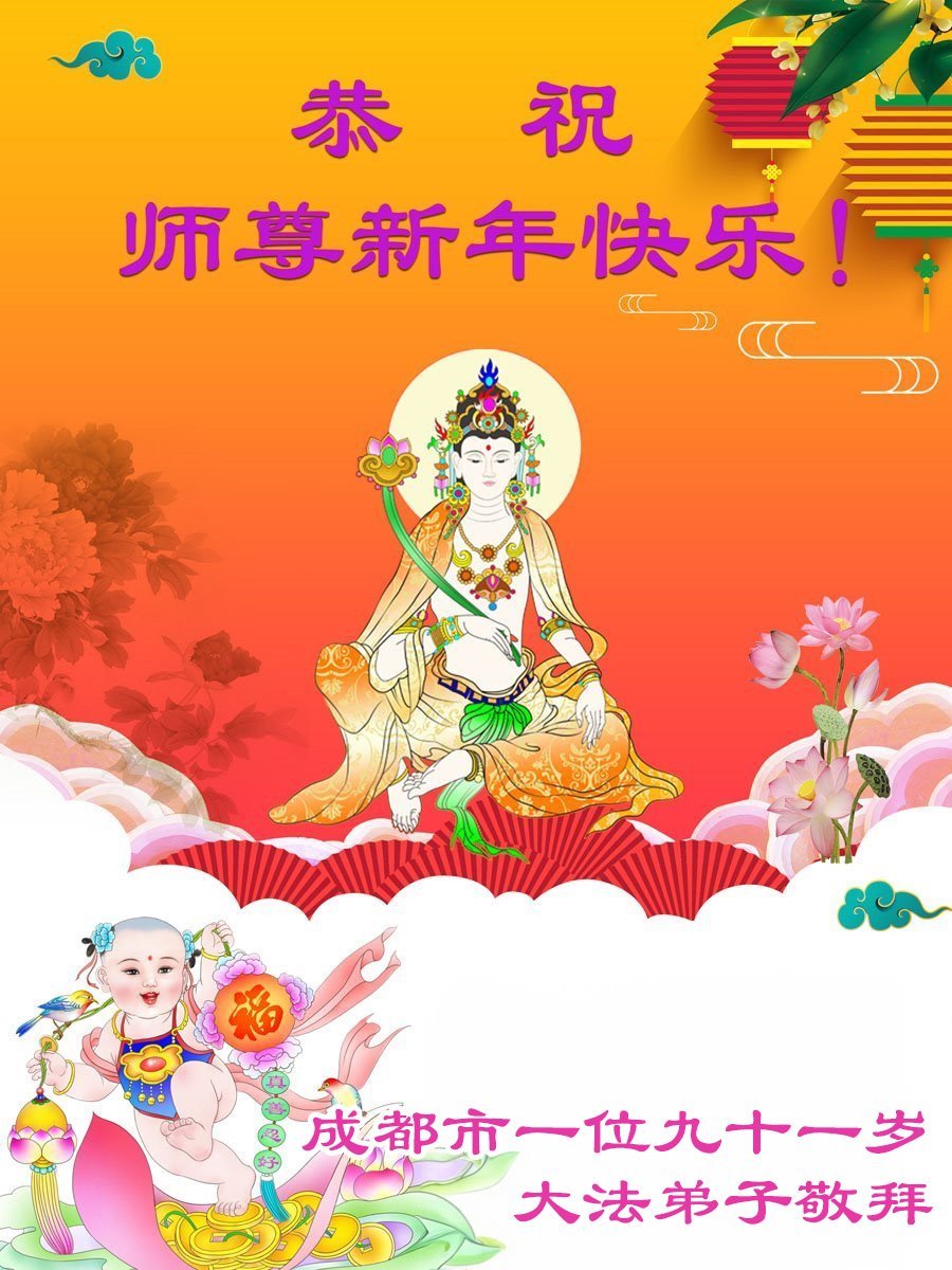 無量慈悲偉大的師尊您好,您辛苦啦!新的一年到來之際,弟子們感恩師尊的慈悲保護與救度,也替得救的世人轉達對師尊慈悲救度的無限感恩!在師尊用巨大的承受與付出所延續來的不多的時日裏,弟子們一定珍惜時間,多學法,同化法,互相配合好形成整體做好三件事,多救世人,不辜負師尊的慈悲苦度!