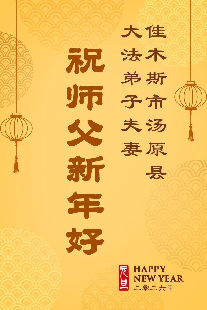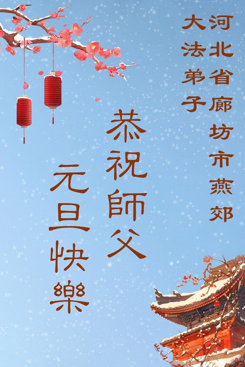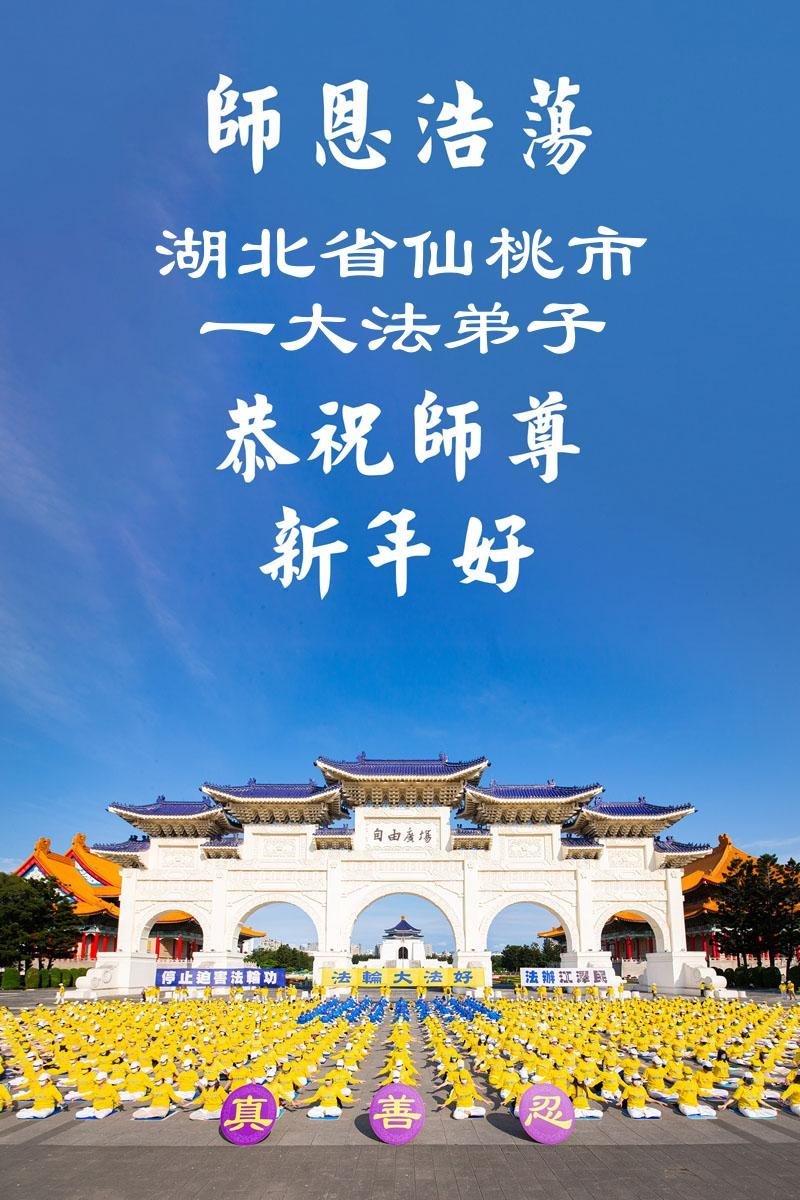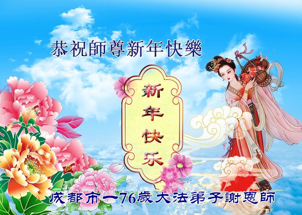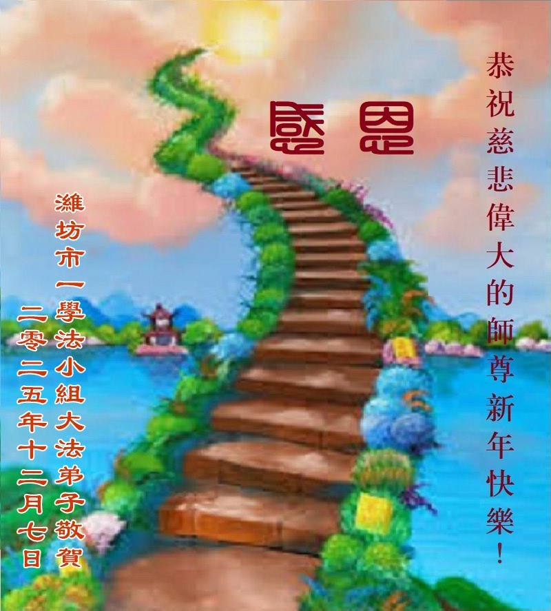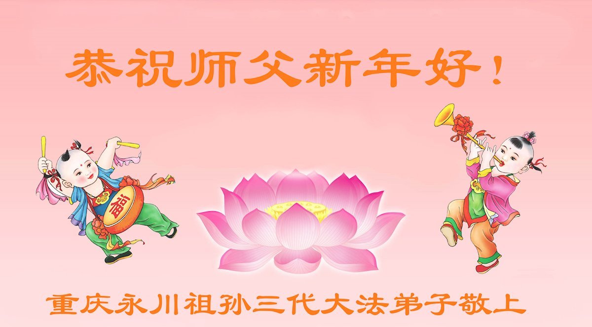 無量慈悲偉大的師尊您好,您辛苦啦!新的一年到來之際,弟子們感恩師尊的慈悲保護與救度,也替得救的世人轉達對師尊慈悲救度的無限感恩!在師尊用巨大的承受與付出所延續來的不多的時日裏,弟子們一定珍惜時間,多學法,同化法,互相配合好形成整體做好三件事,多救世人,不辜負師尊的慈悲苦度!