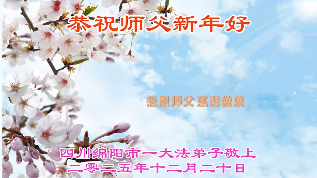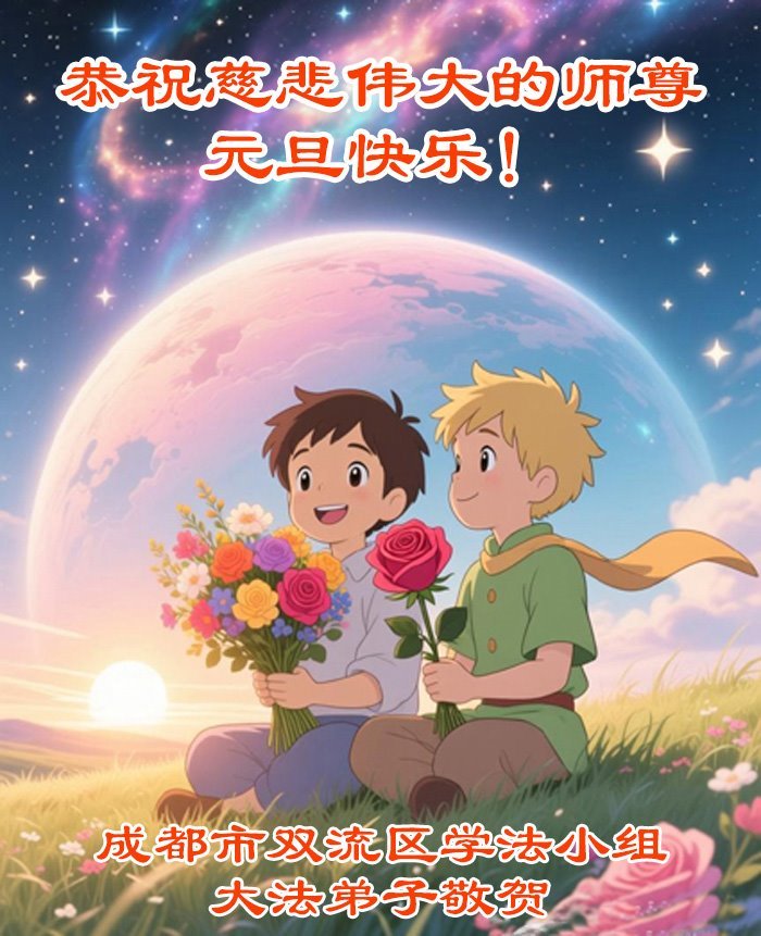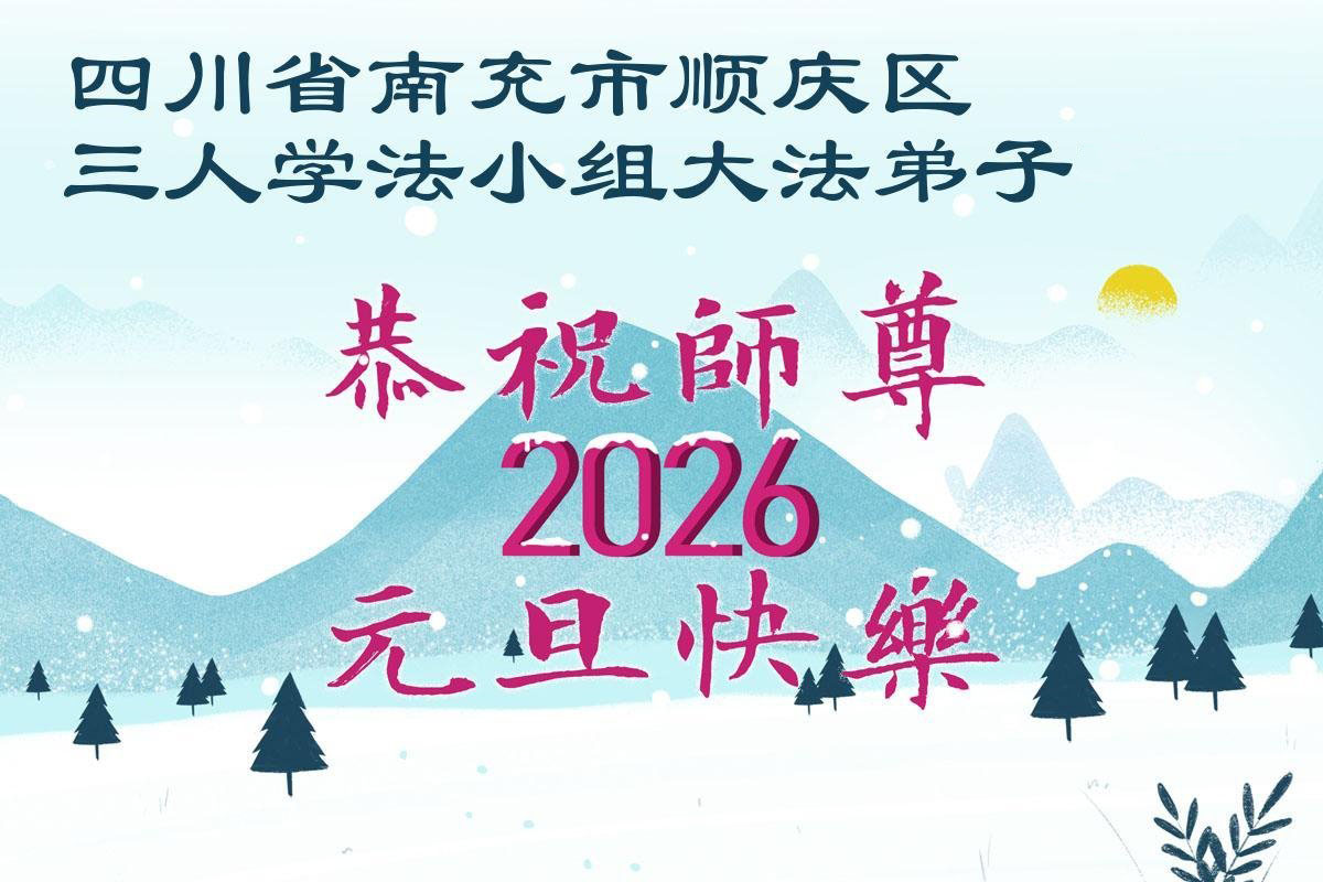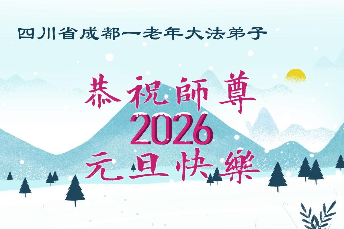尊敬的師父好,師父您辛苦了!成都工商界大法弟子向師父問好,恭祝師父2026年元旦快樂!每學法深入一點,就更加能體會到師父為救眾生的巨大付出。世間一切皆為法而來,一切幻相皆為人心而設。願我們不為人心所動,走好最後的路,不負師父期望。弟子叩謝師父!