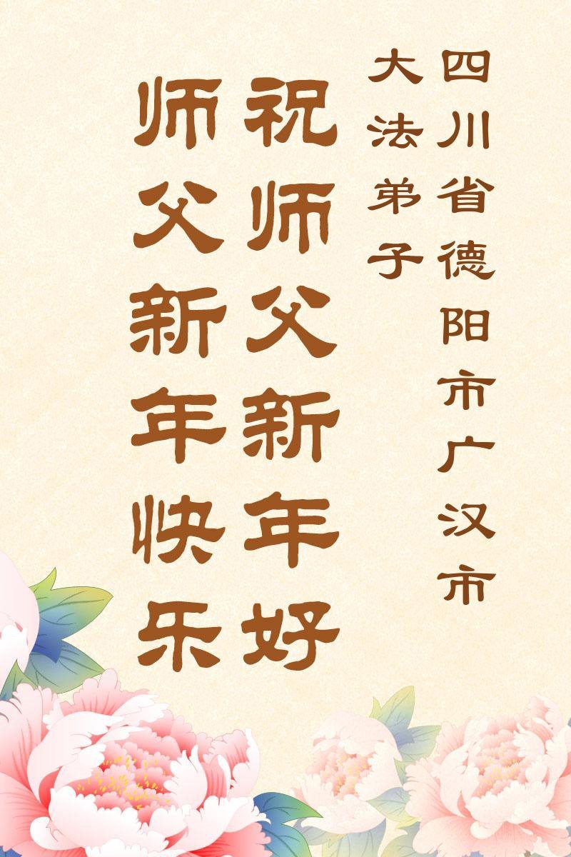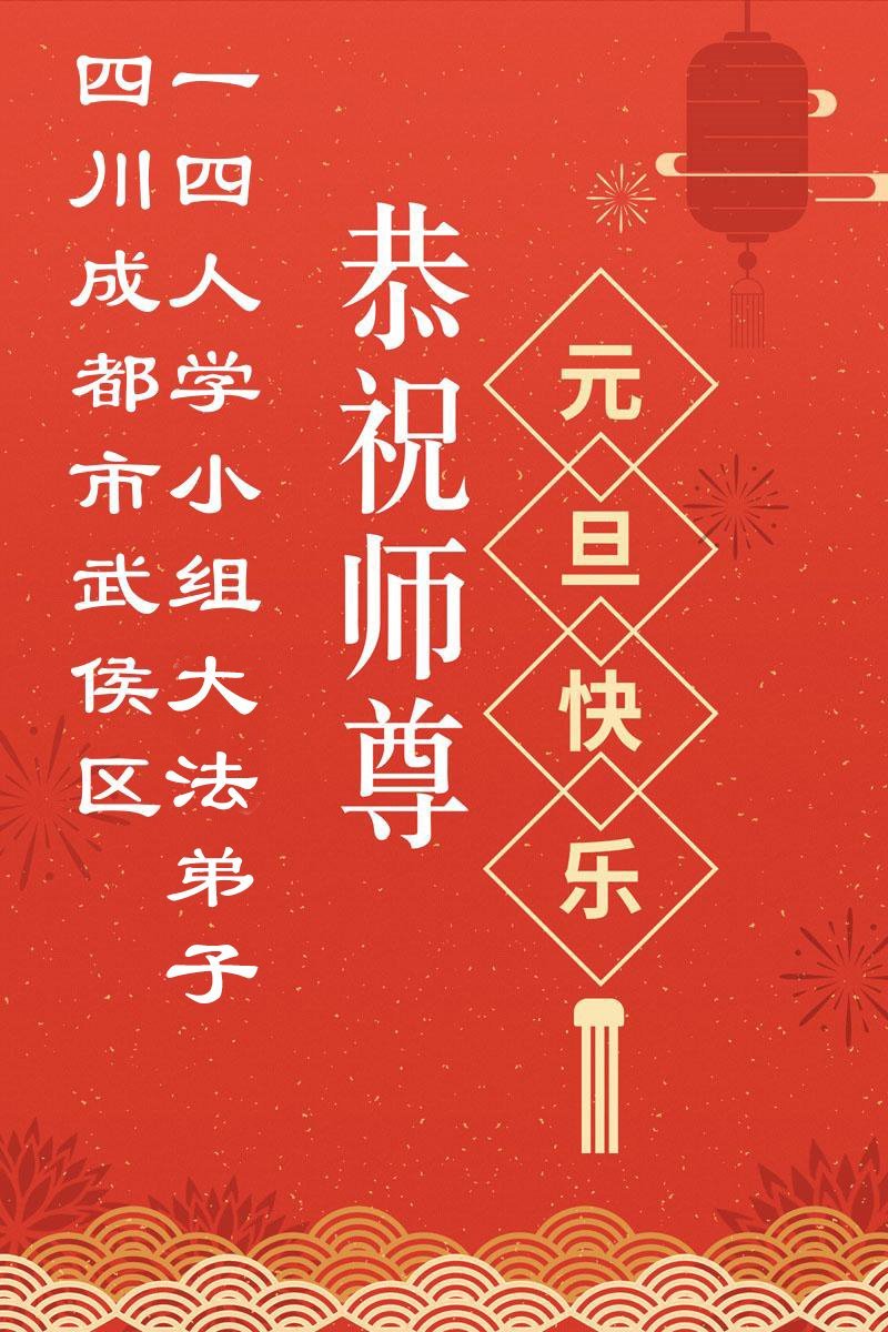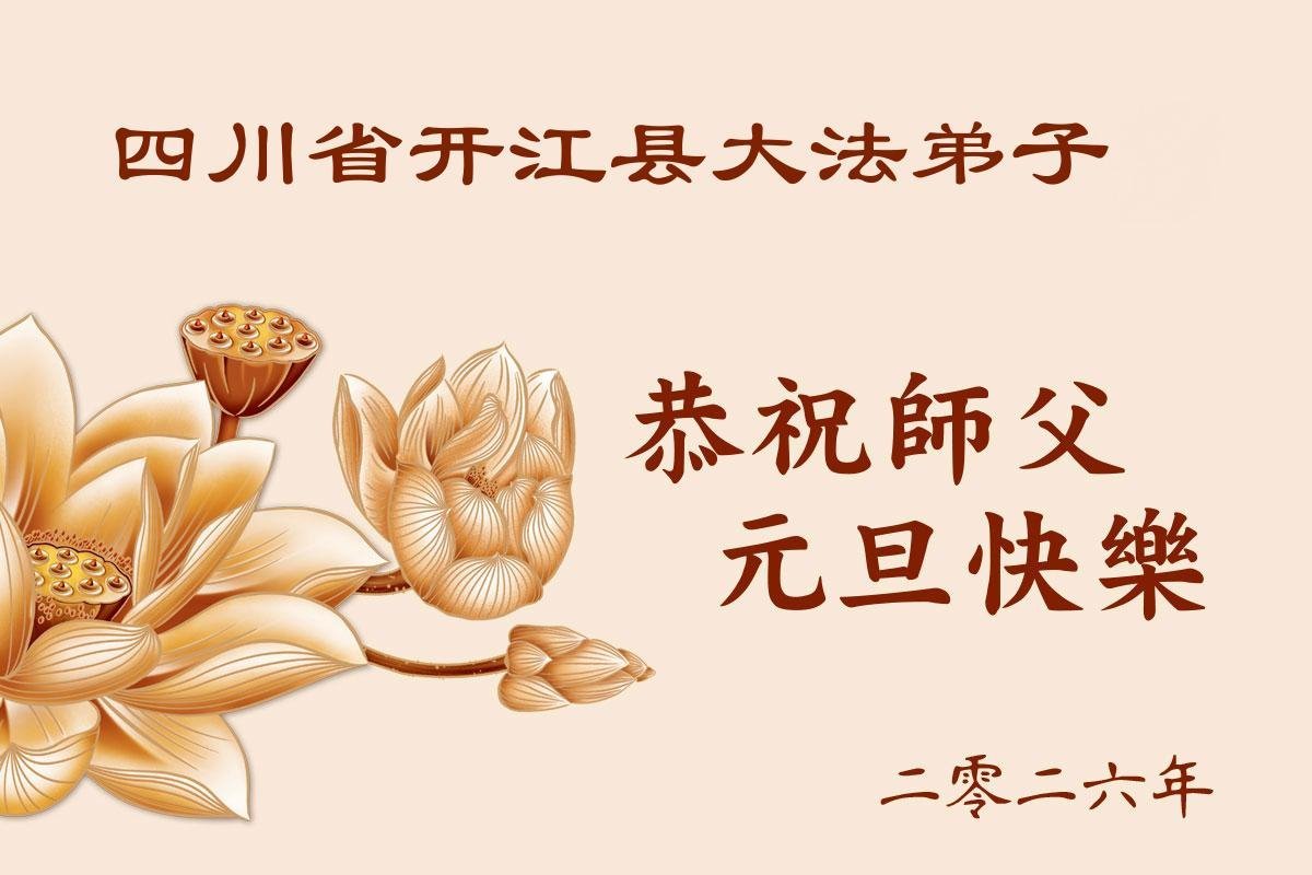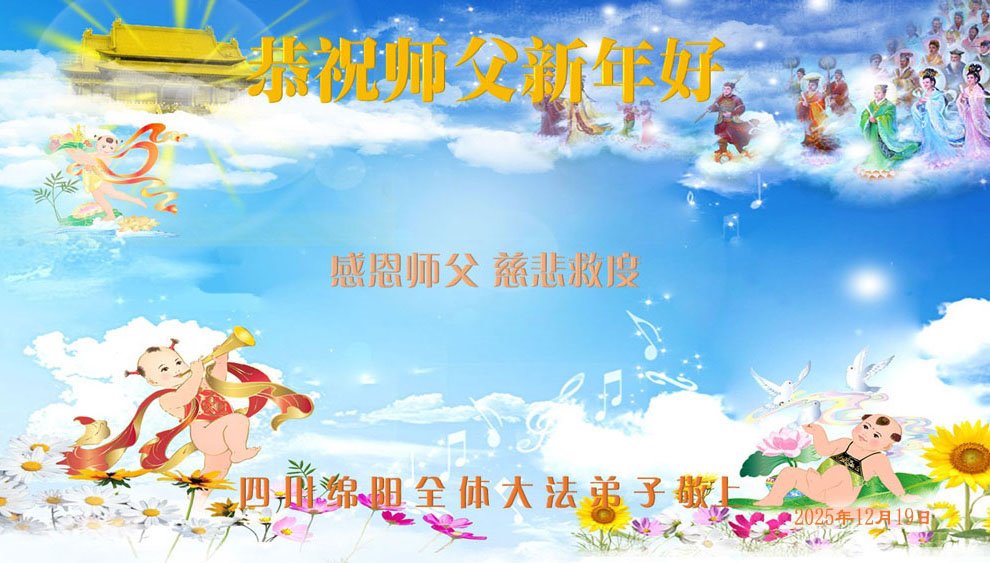 尊敬的師父好,師父您辛苦了!成都工商界大法弟子向師父問好,恭祝師父2026年元旦快樂!每學法深入一點,就更加能體會到師父為救眾生的巨大付出。世間一切皆為法而來,一切幻相皆為人心而設。願我們不為人心所動,走好最後的路,不負師父期望。弟子叩謝師父!