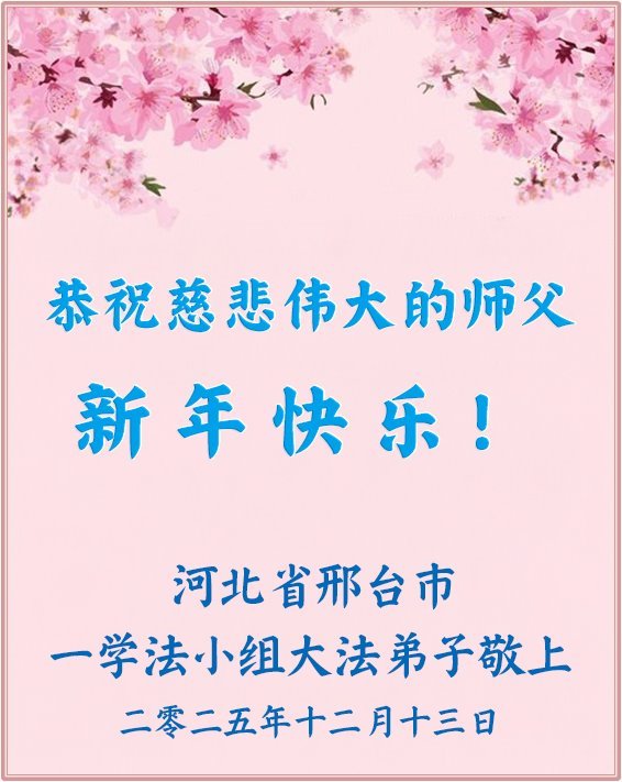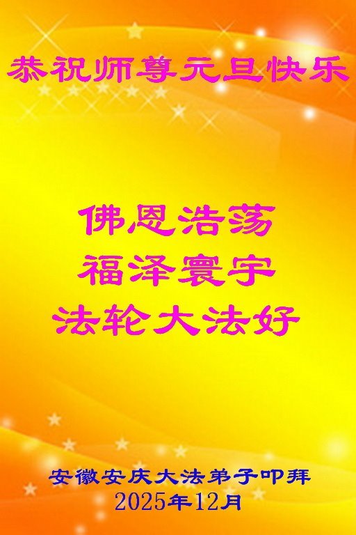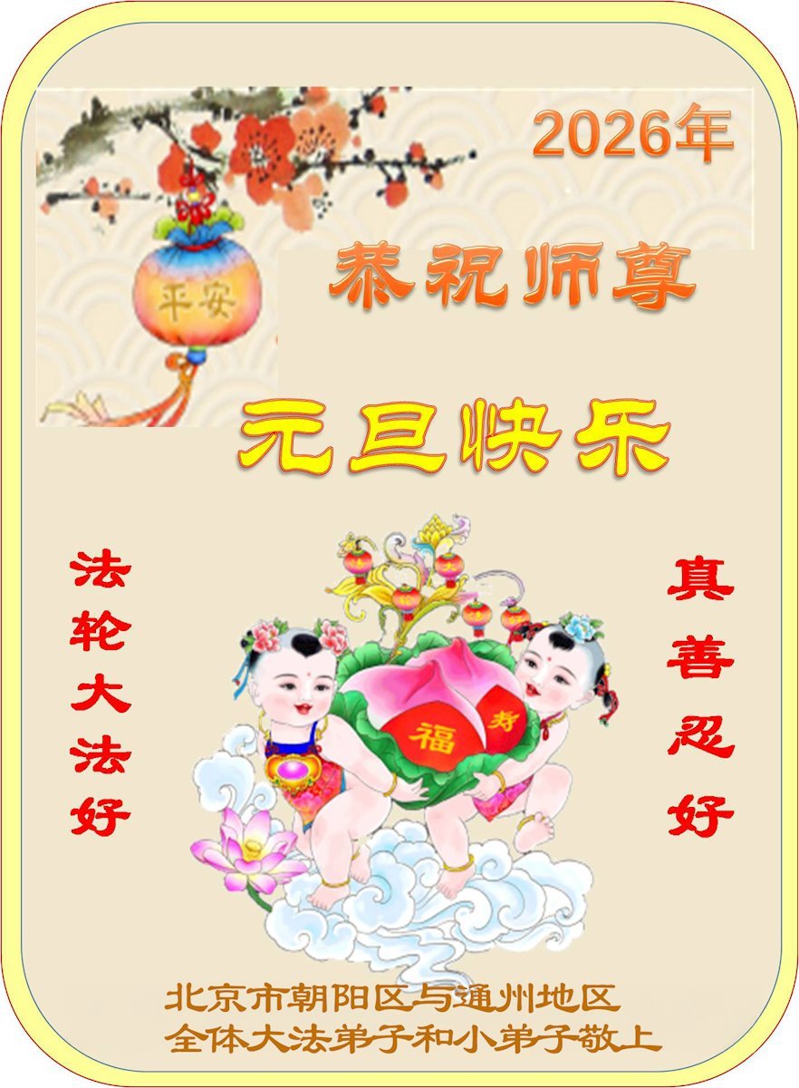 【明慧網二零二五年十二月二十九日】(明慧網通訊員綜合報導)二零二六年新年的鐘聲即將敲響,在中國大陸從事各行業工作的大法弟子們敬祝慈悲偉大的師尊新年好!在師尊的看護下,大法弟子們又走過了在工作和生活中隨時隨處講真相、證實法的一年。在輝煌的新紀元正在開啟的歷史時刻,弟子們會珍惜每一天、每一時刻,謹遵師命,修好自己,多救眾生!